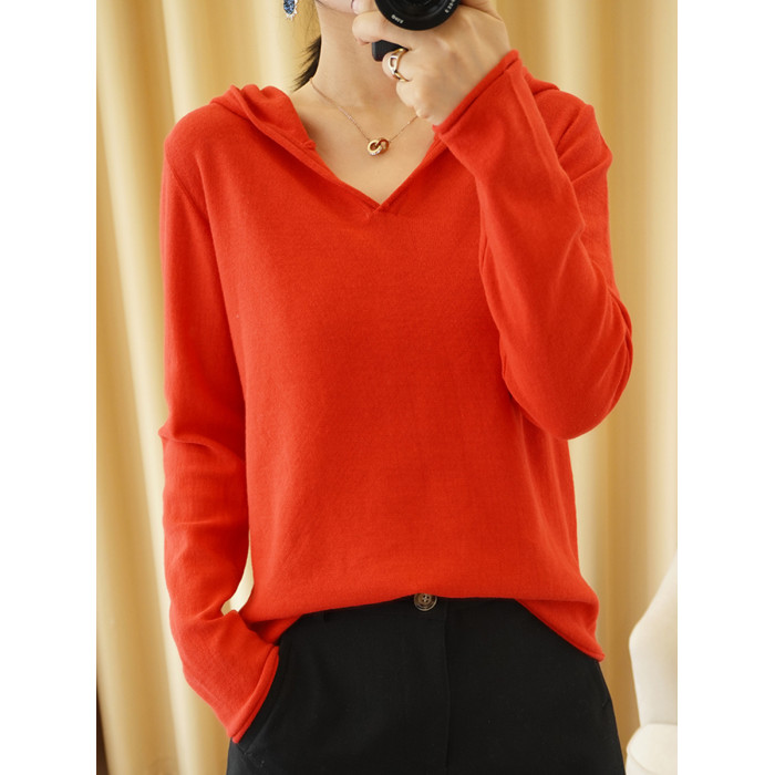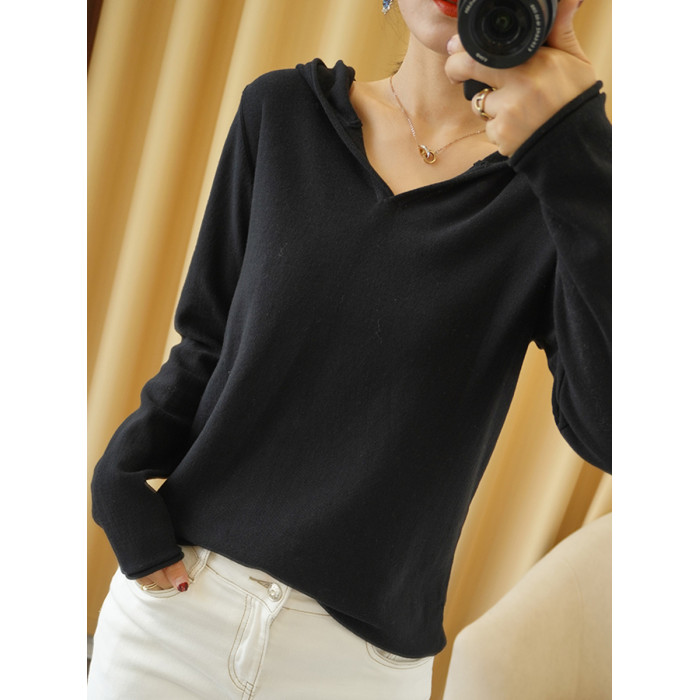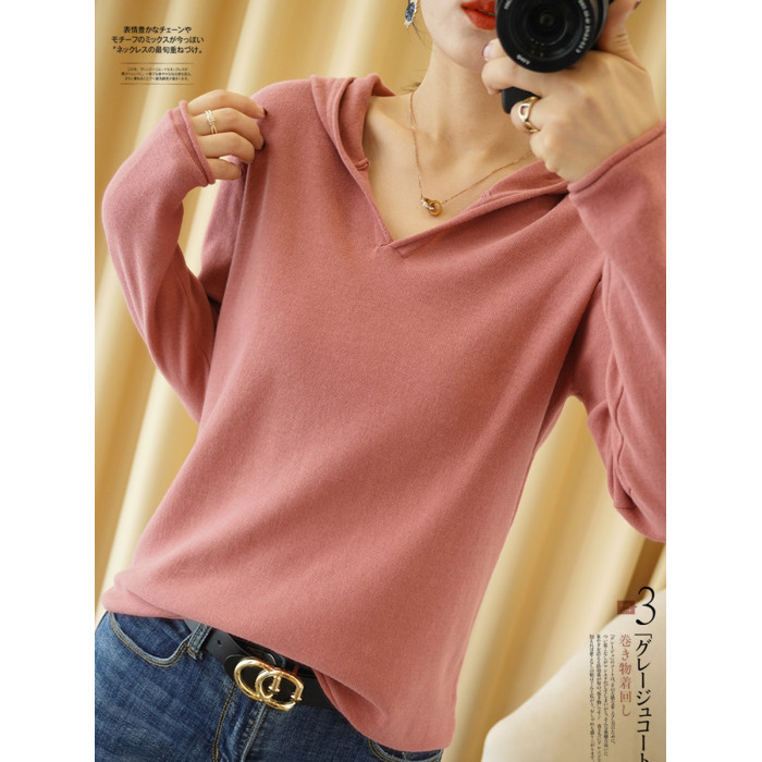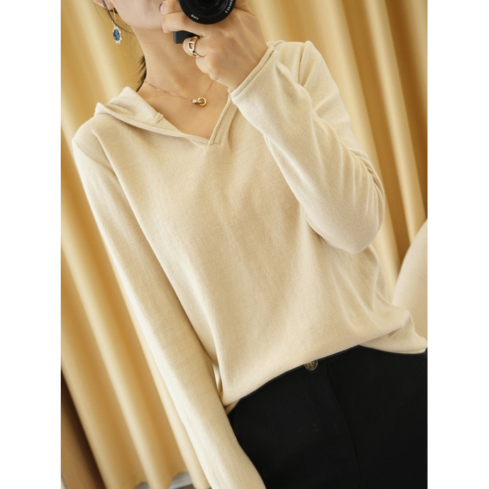 純棉連帽衛衣女春秋薄款寬松長袖帶帽針織打底衫內搭毛衣洋氣上衣