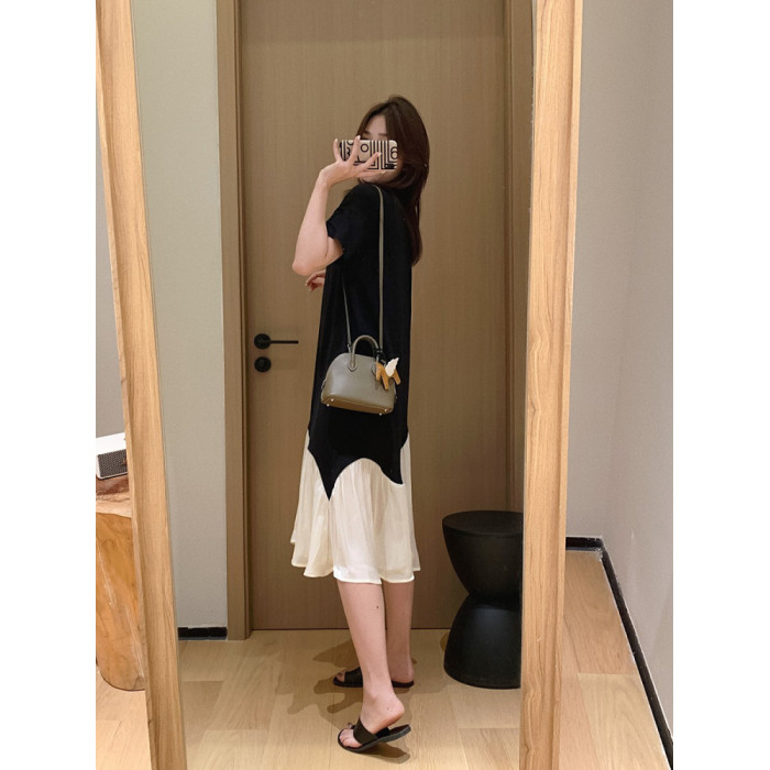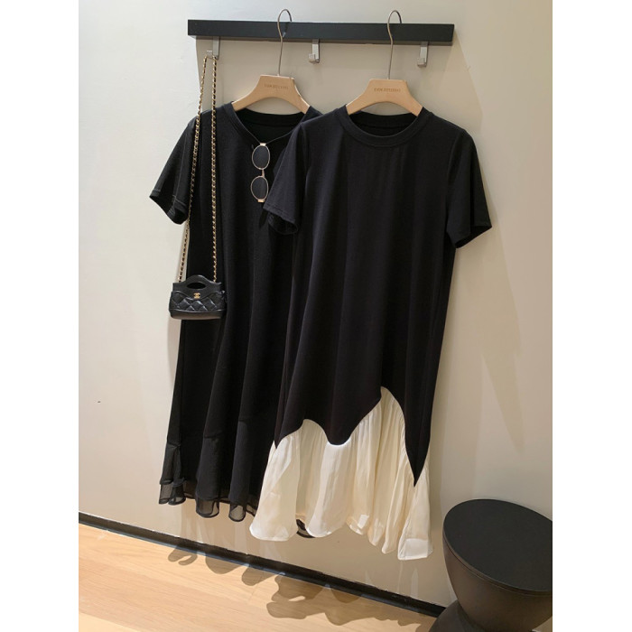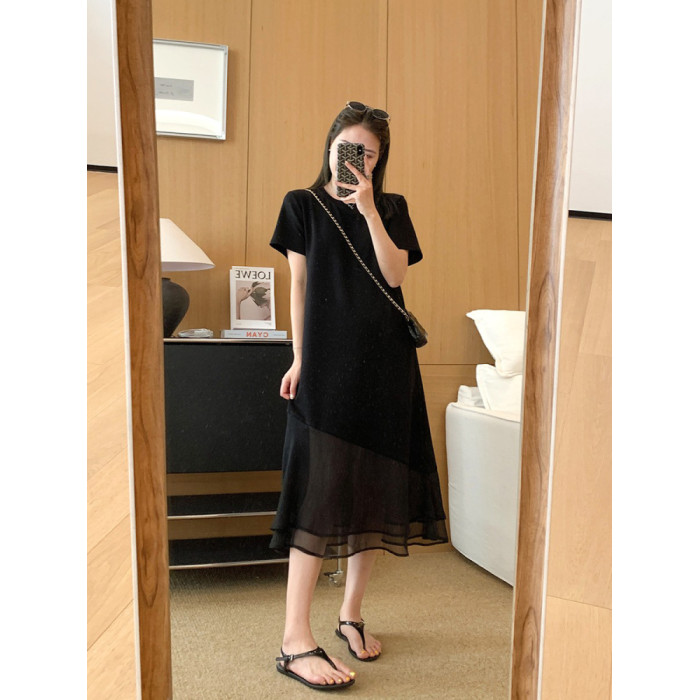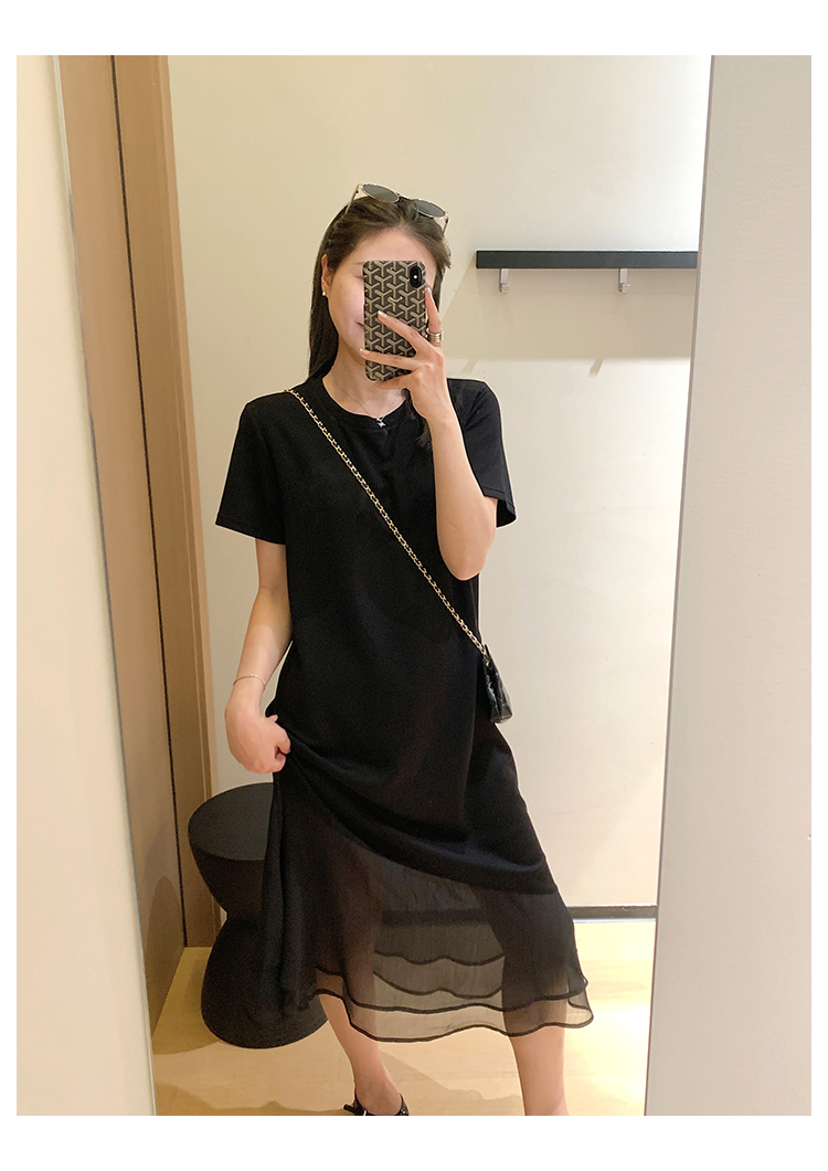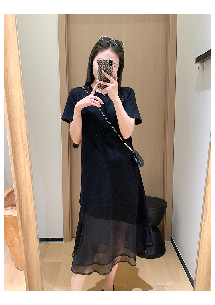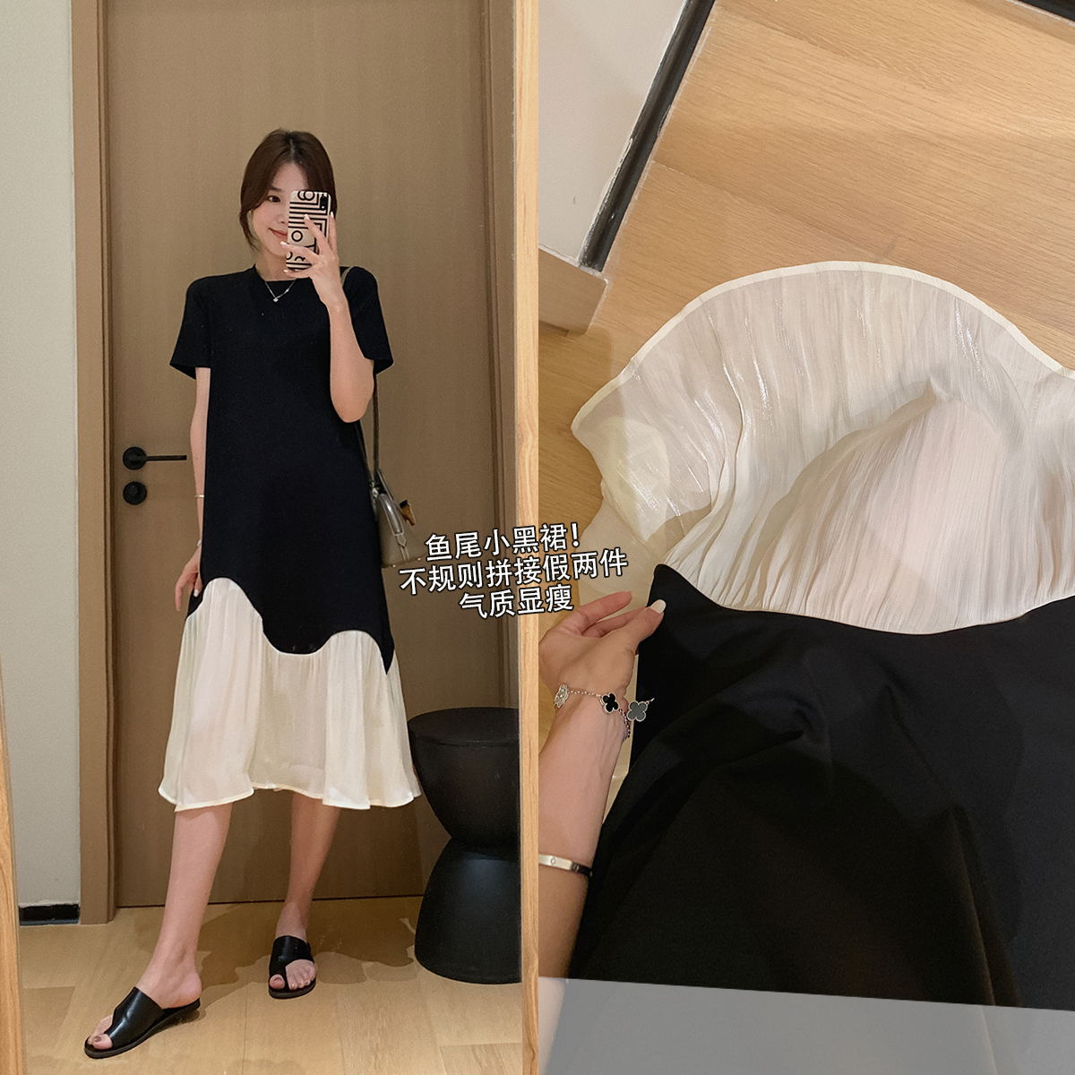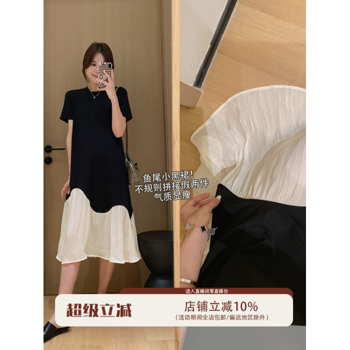大叮自製魚尾小黑裙!夏季寬松顯瘦氣質不規則拼接假兩件連衣裙女