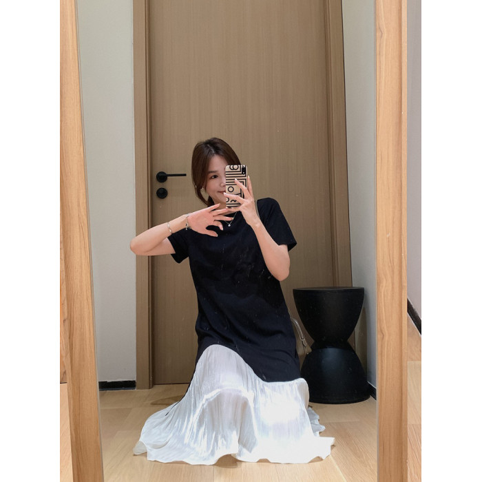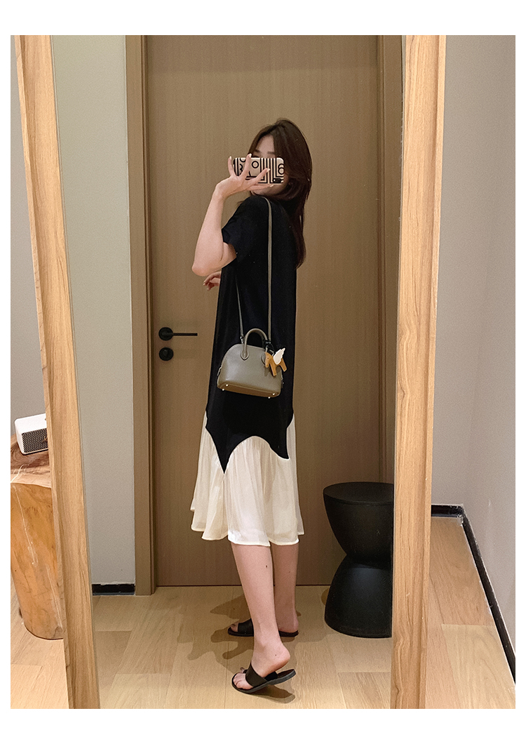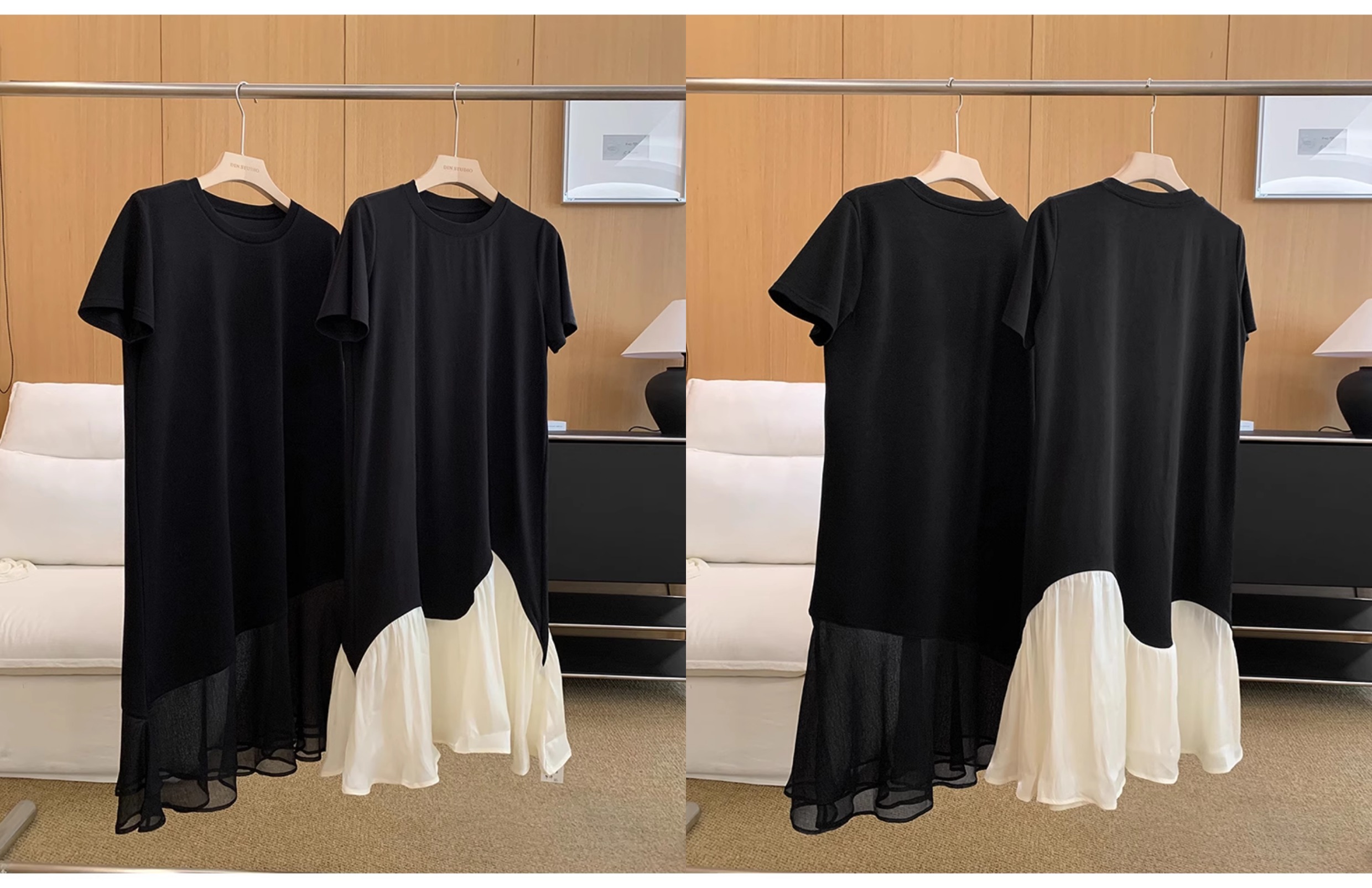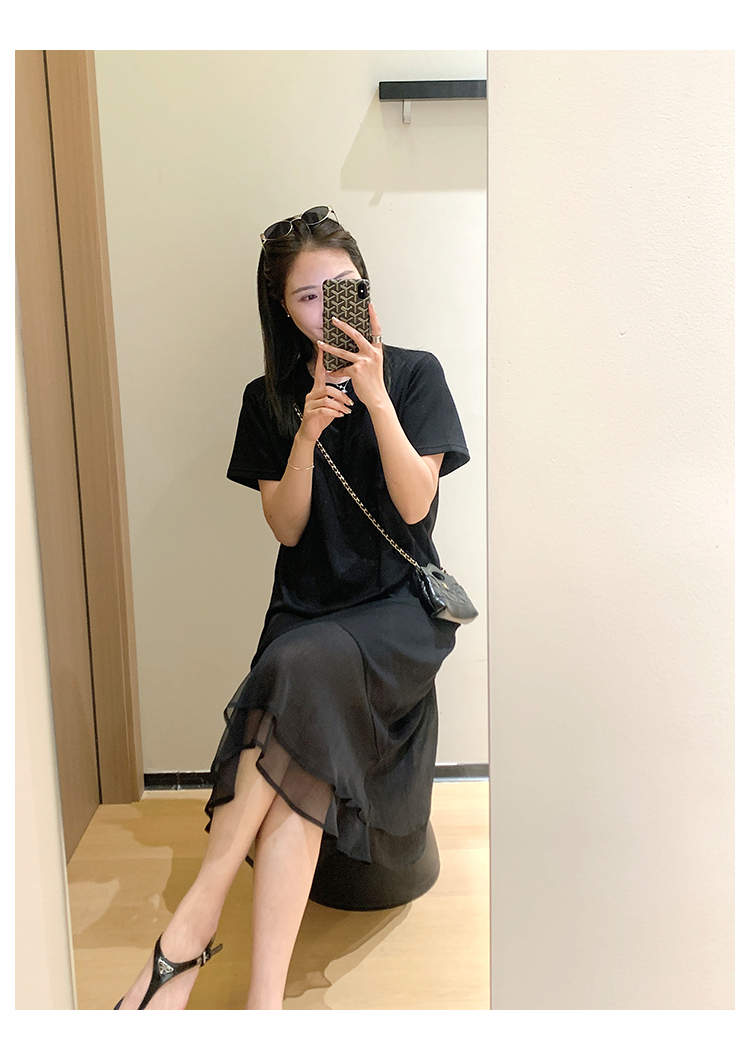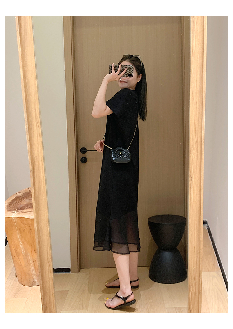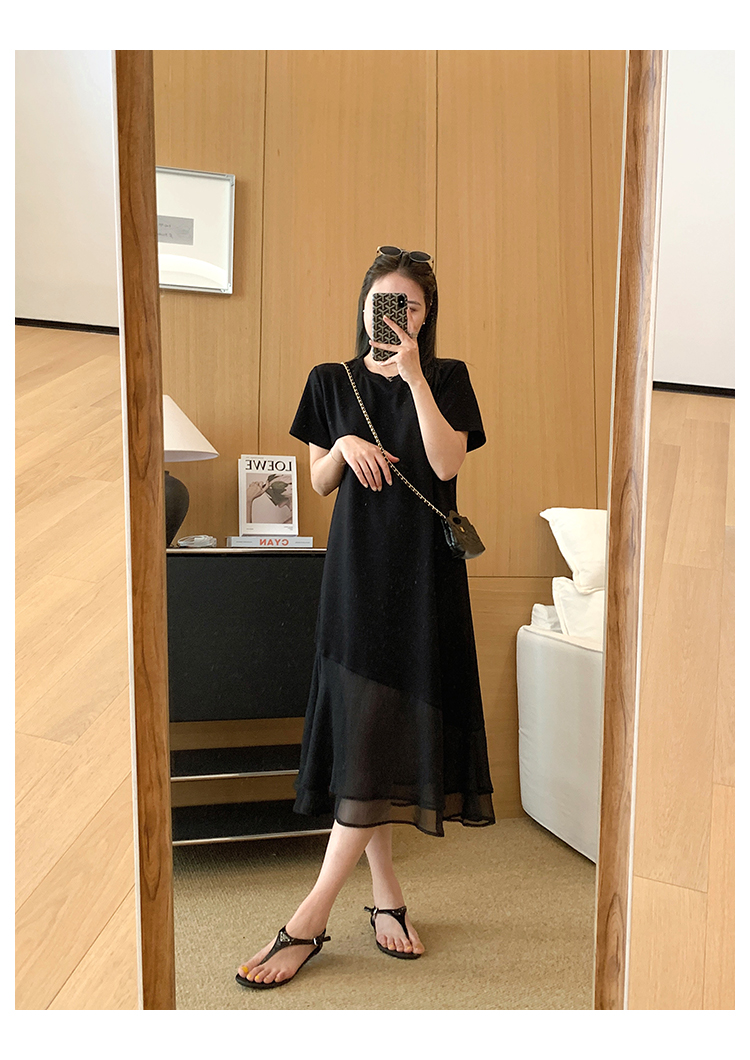 大叮自製魚尾小黑裙!夏季寬松顯瘦氣質不規則拼接假兩件連衣裙女