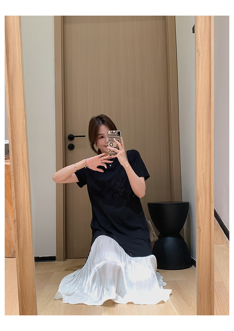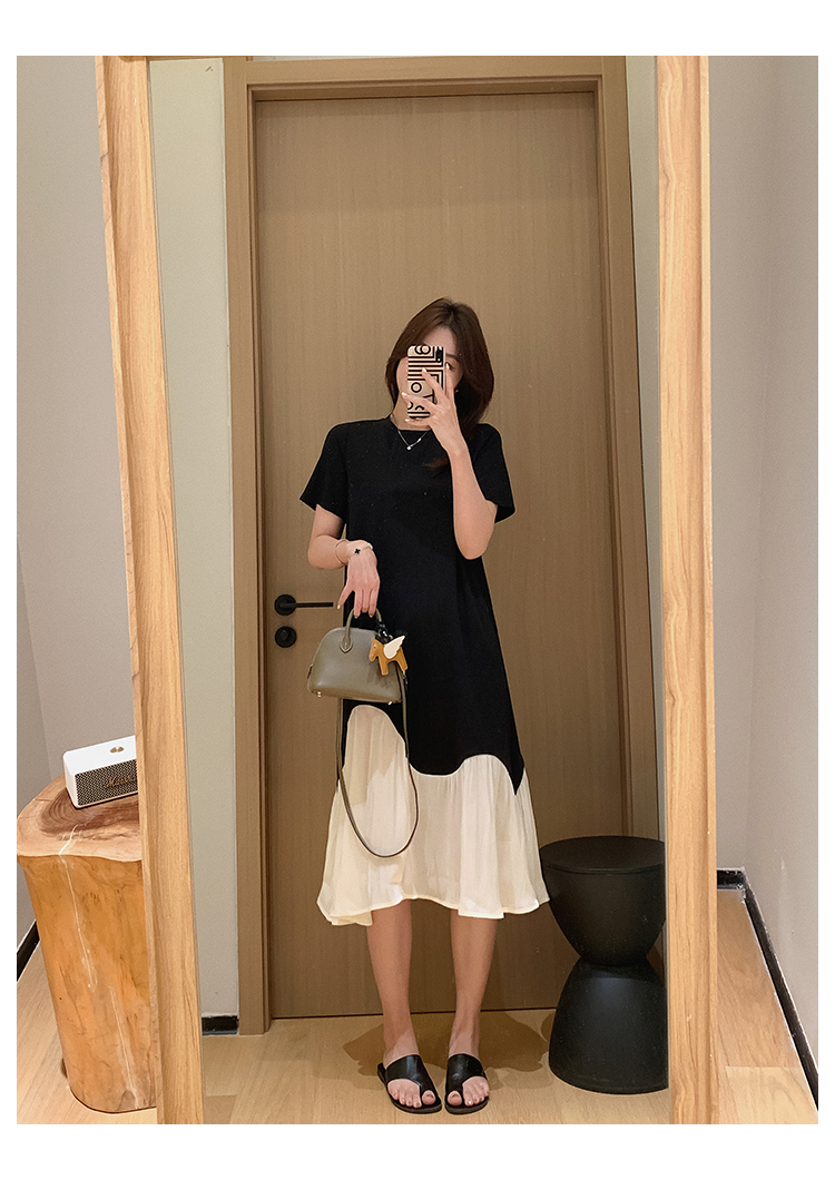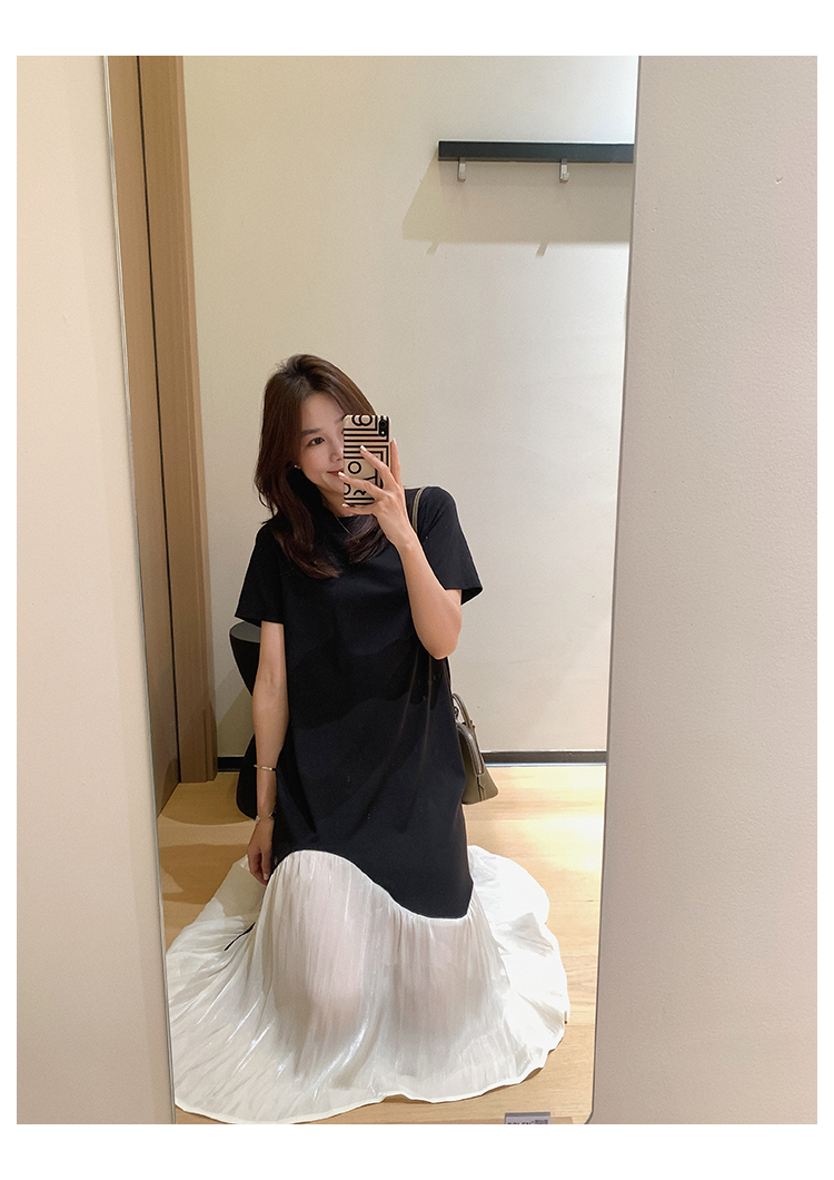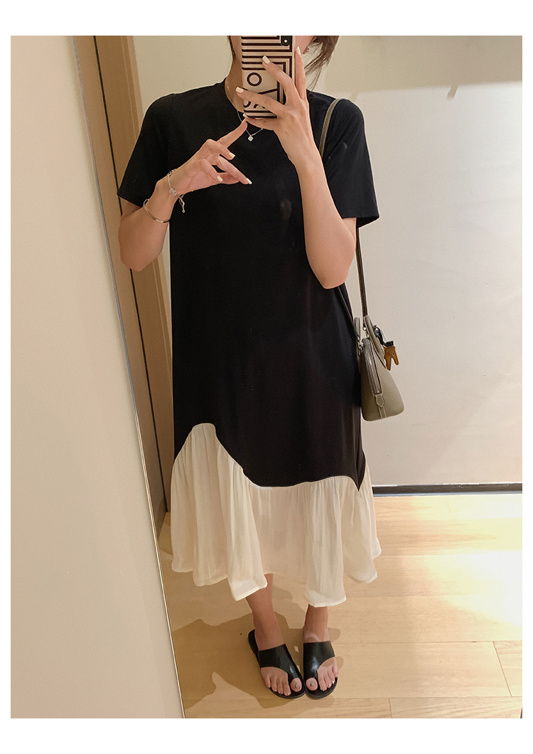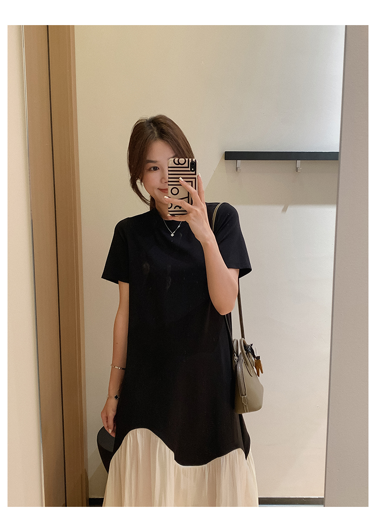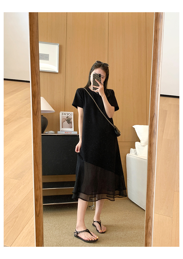 大叮自製魚尾小黑裙!夏季寬松顯瘦氣質不規則拼接假兩件連衣裙女