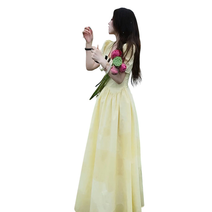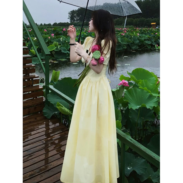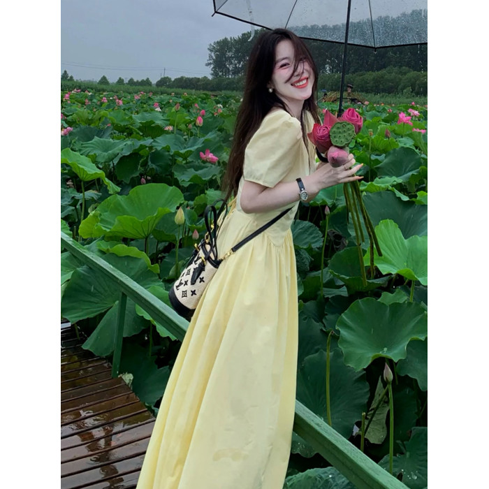 【黃色】【今年流行的漂亮裙子/裙子女夏/今年流行爆款/巨好看/夏日絕美小裙子/法式/海邊度假】