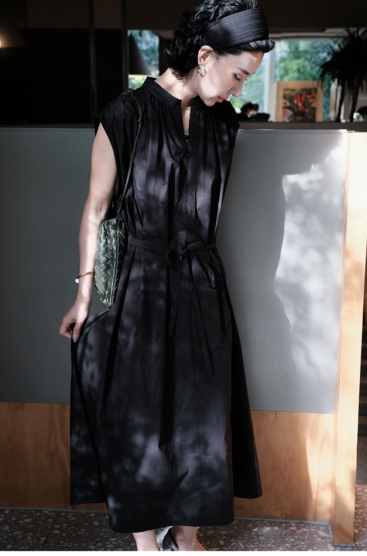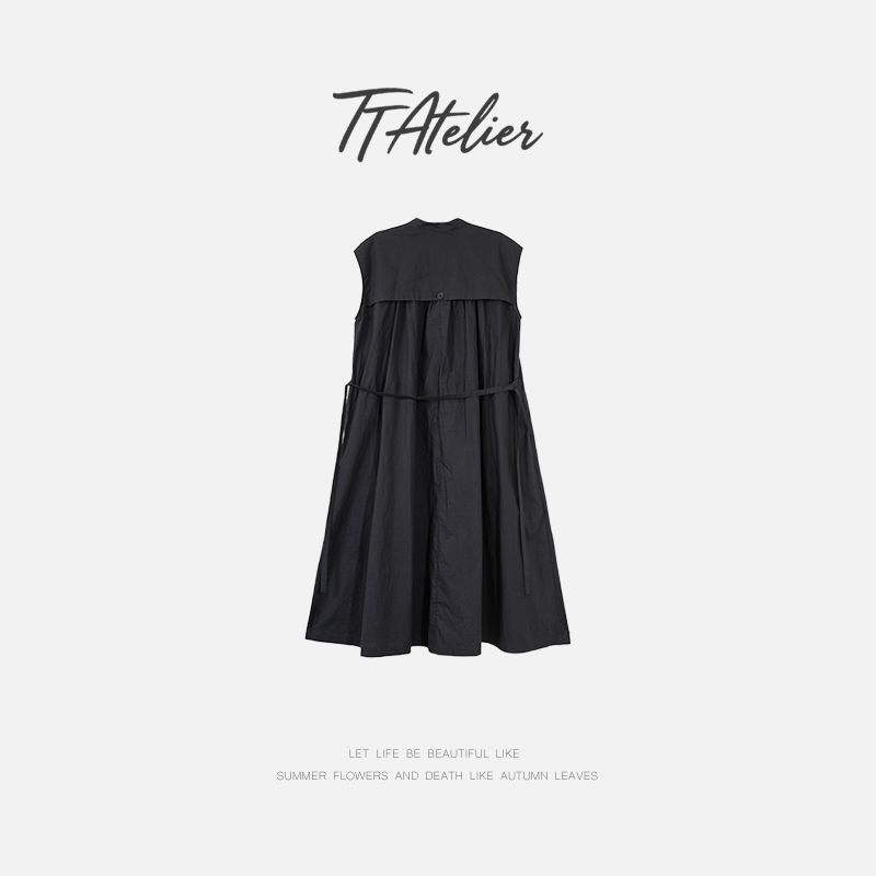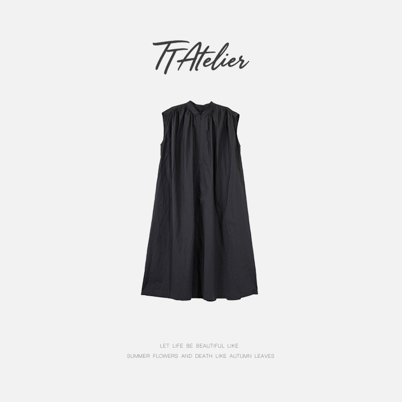 TT設計師【念安】高級感赫本風大碼遮肚無袖A字連衣裙女夏季新款