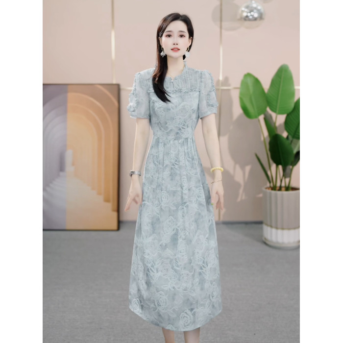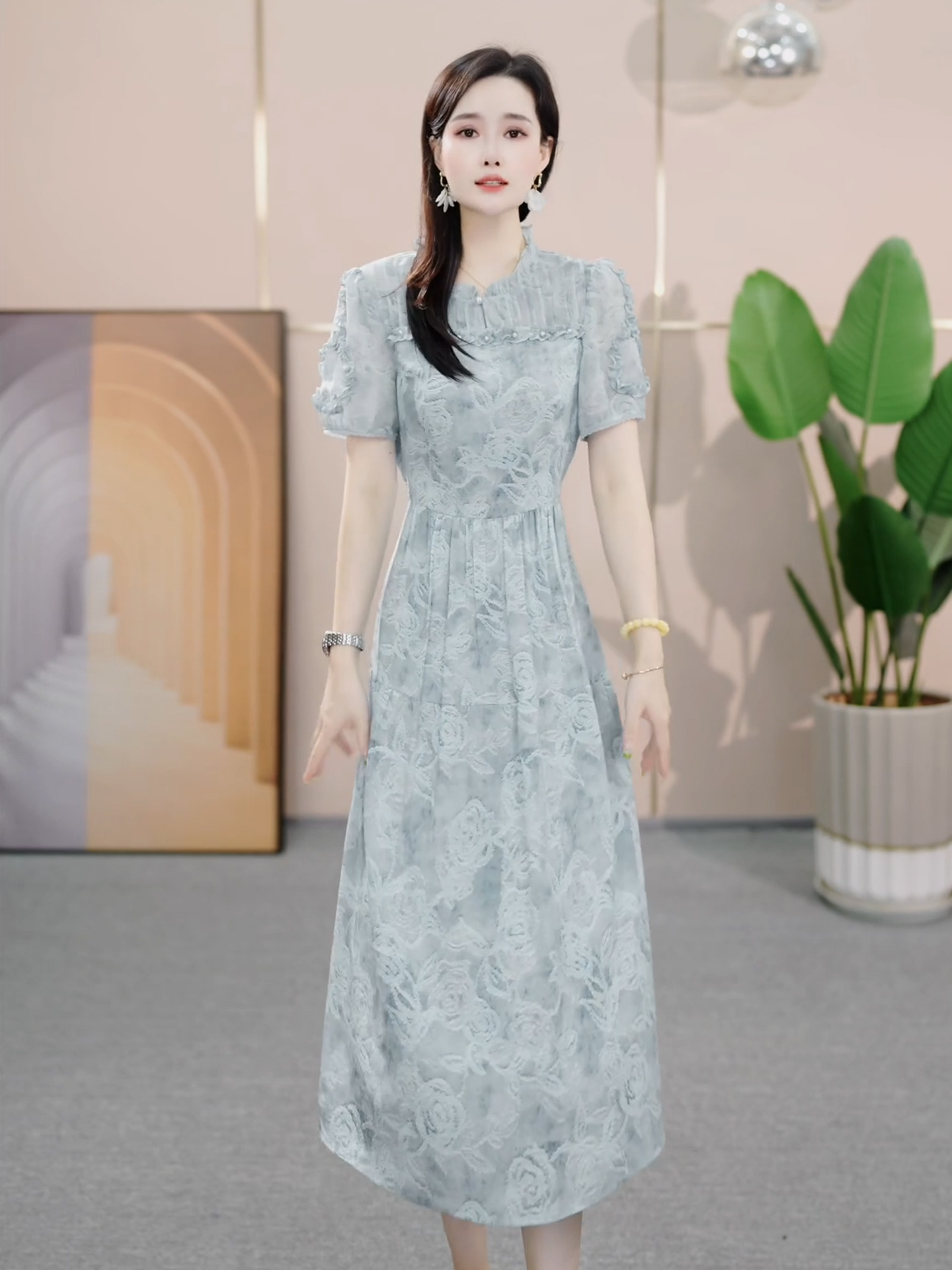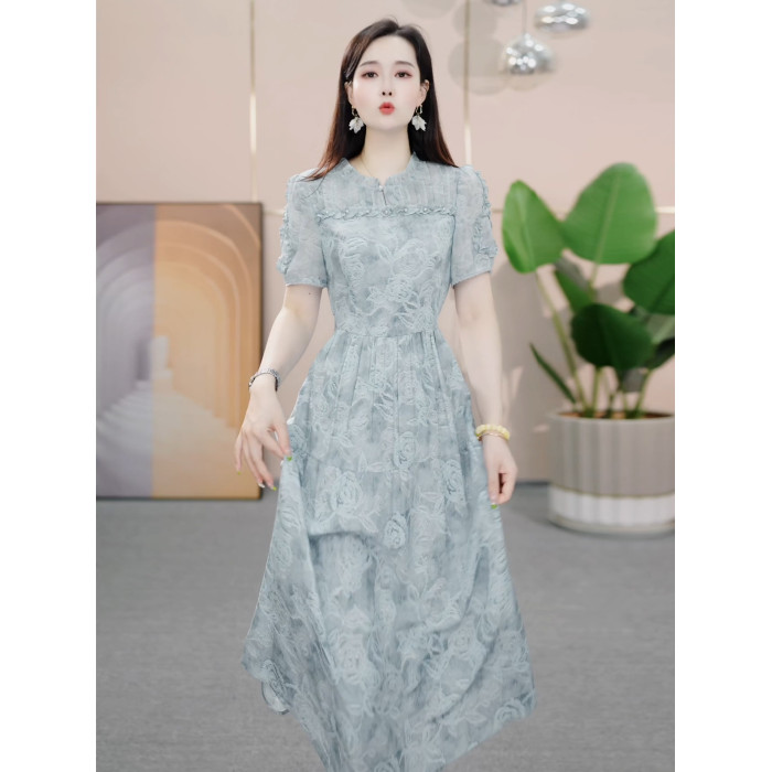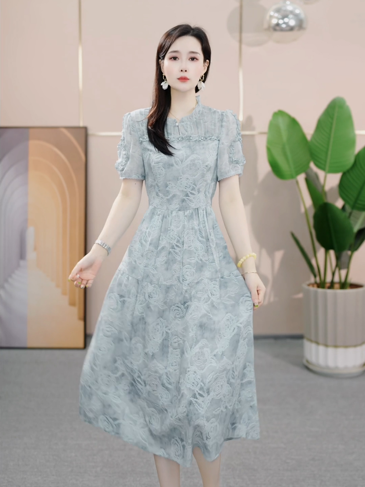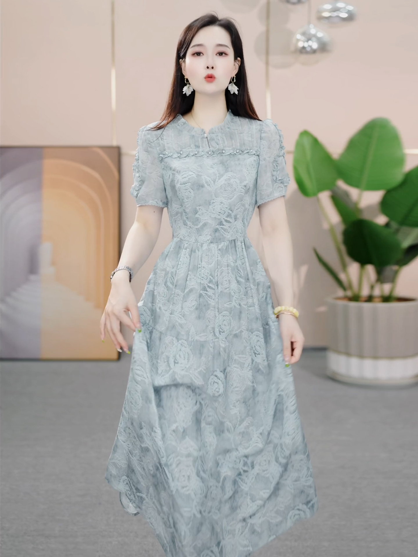廣州十三行高級氣質連衣裙女裝2025夏季媽媽裝時尚中長款短袖裙子