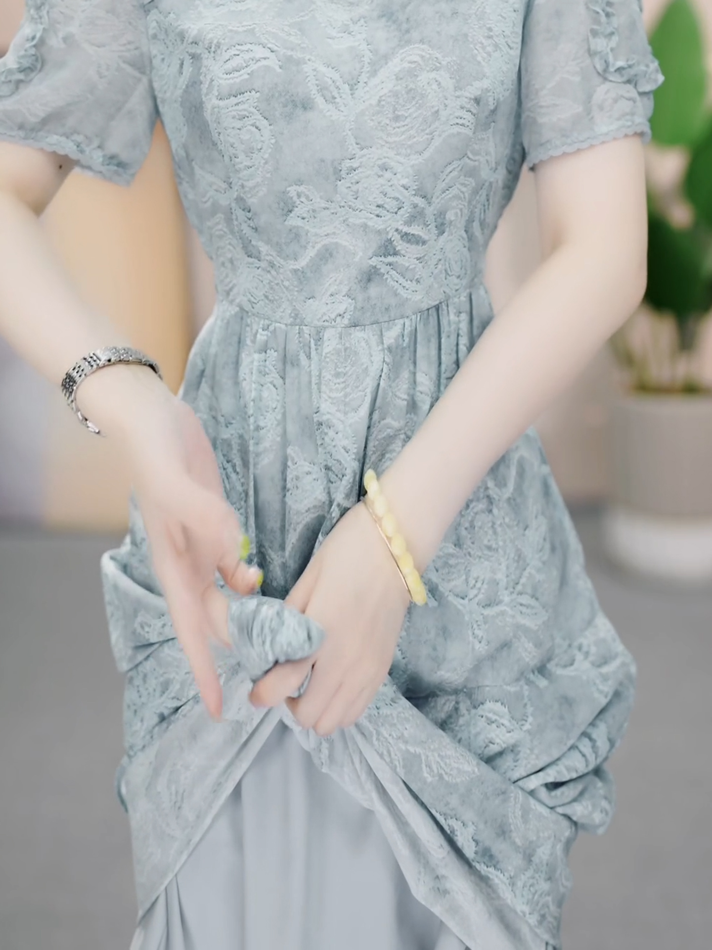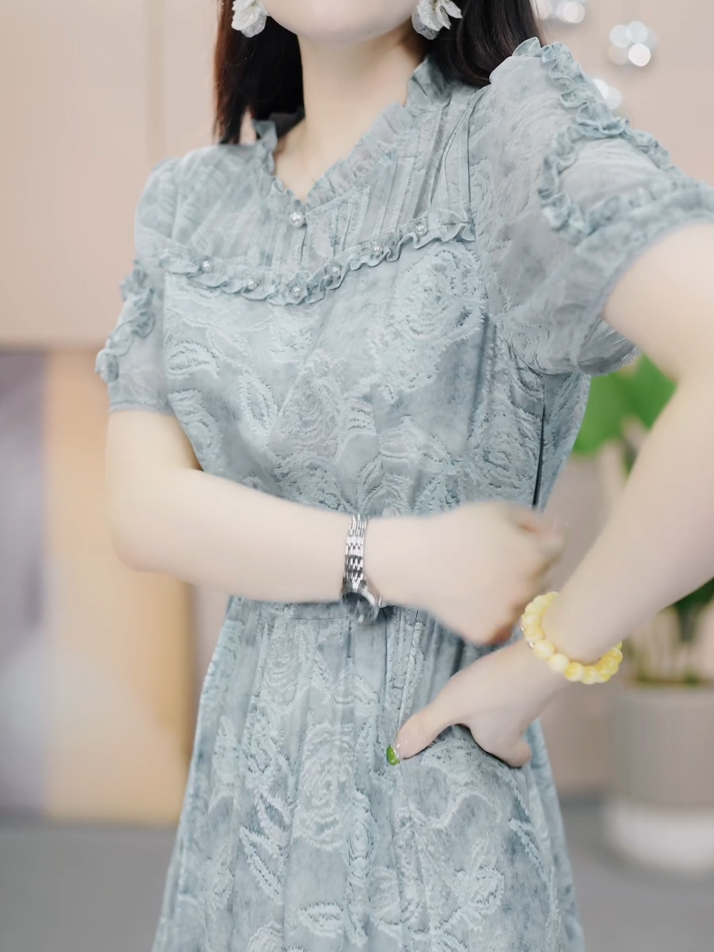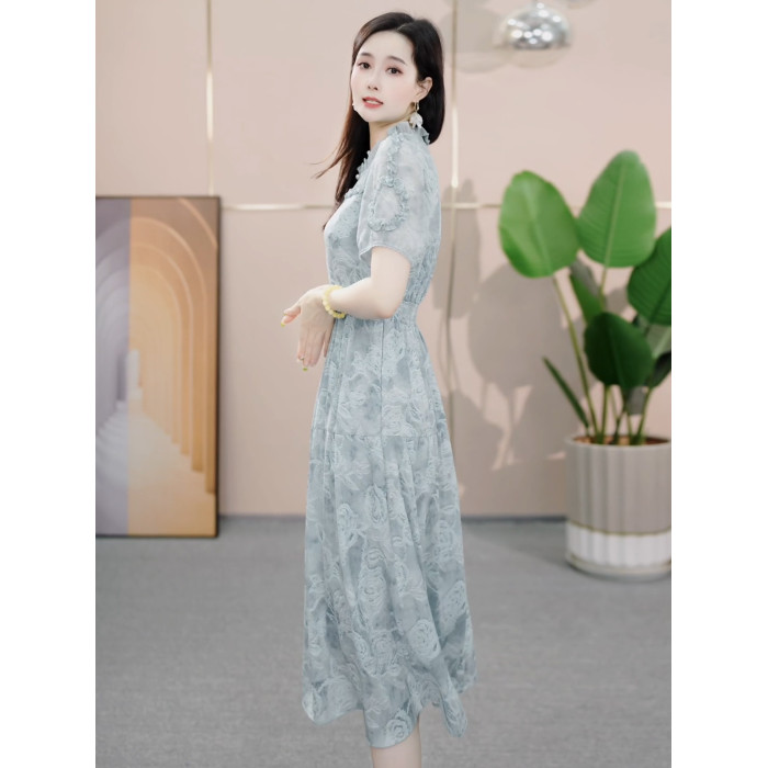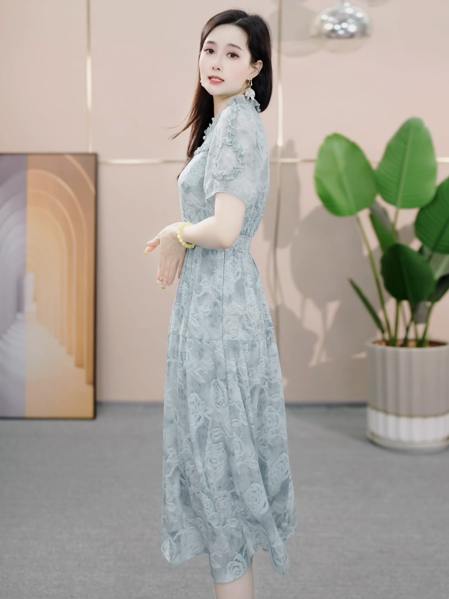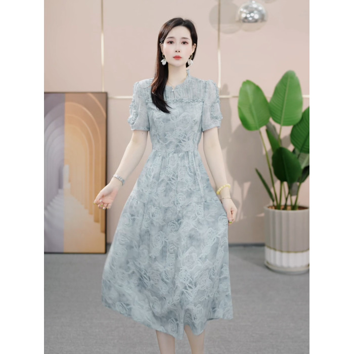 廣州十三行高級氣質連衣裙女裝2025夏季媽媽裝時尚中長款短袖裙子