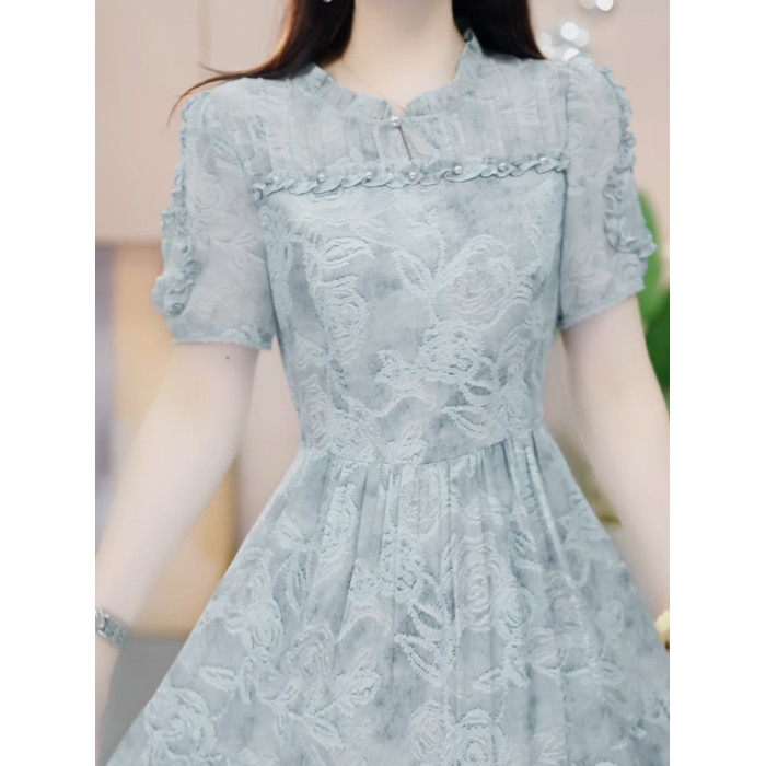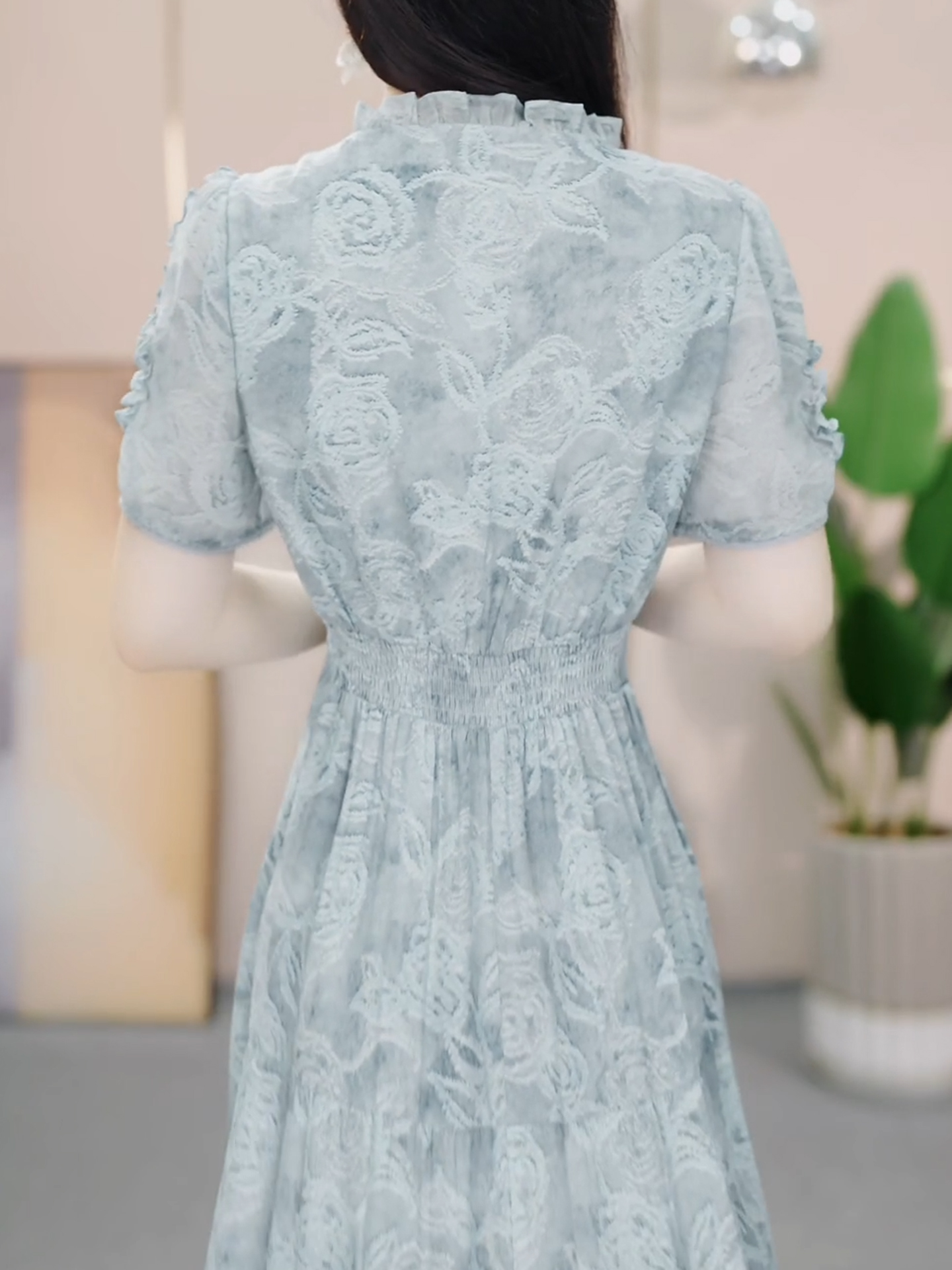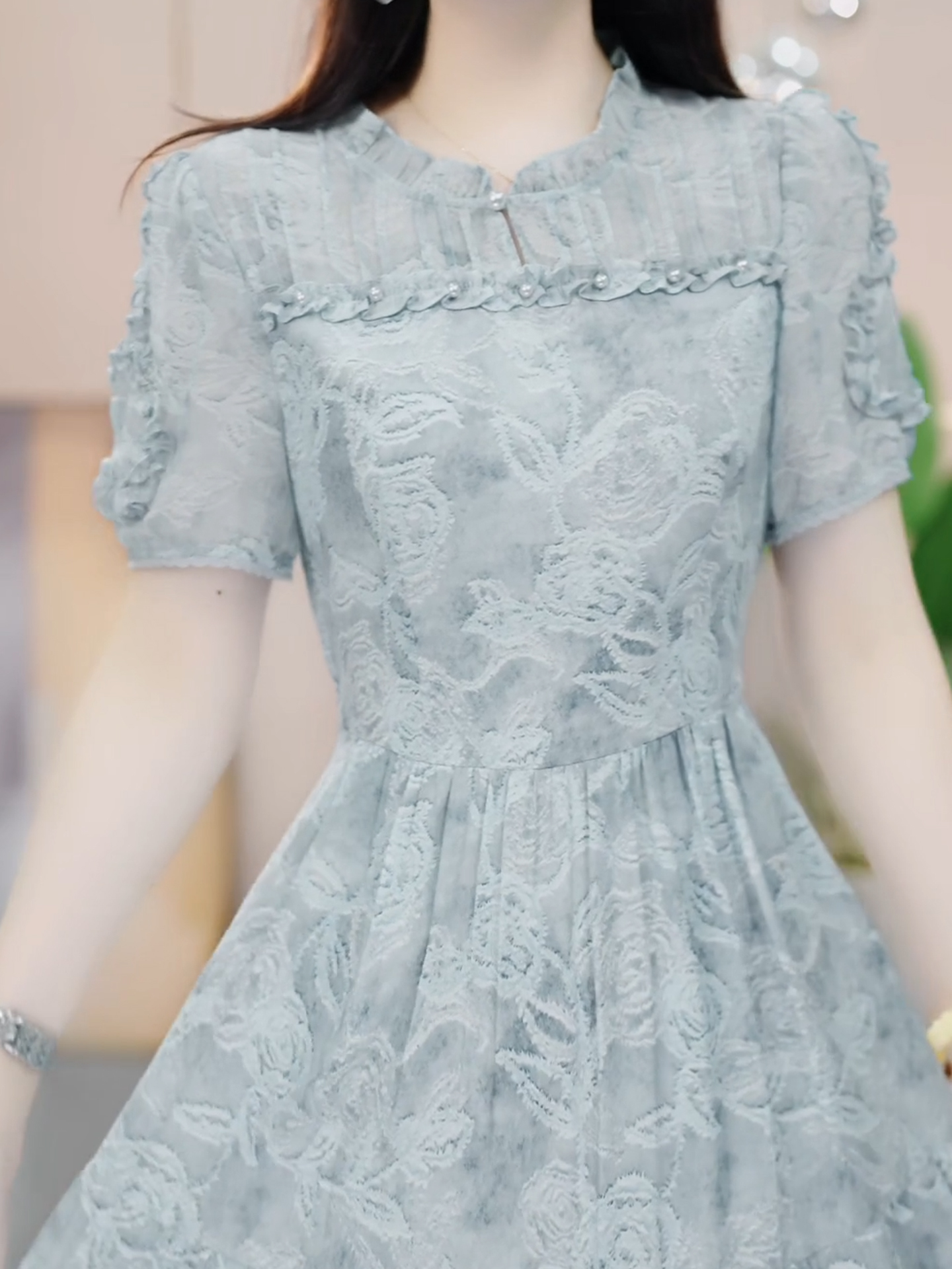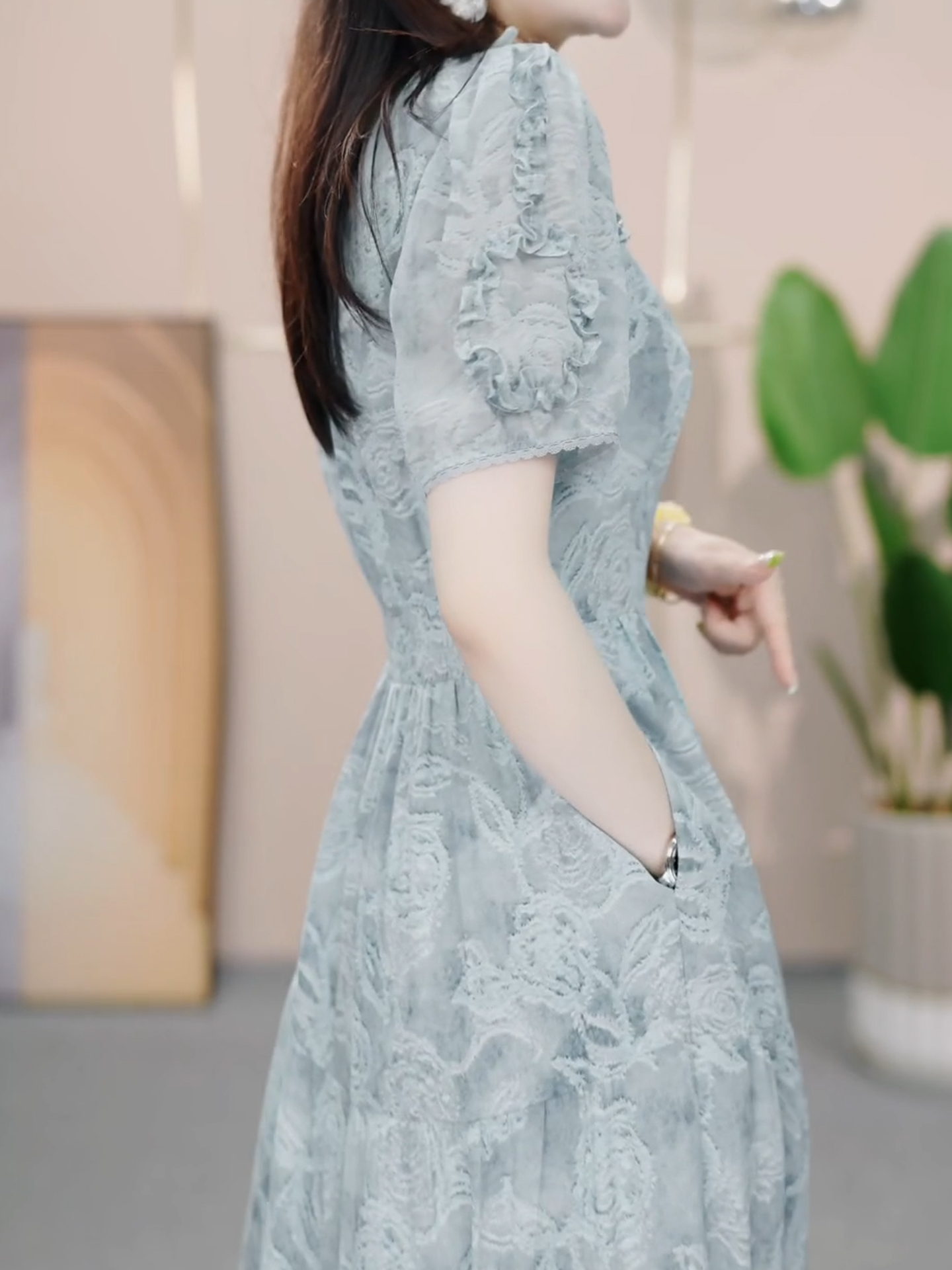 廣州十三行高級氣質連衣裙女裝2025夏季媽媽裝時尚中長款短袖裙子