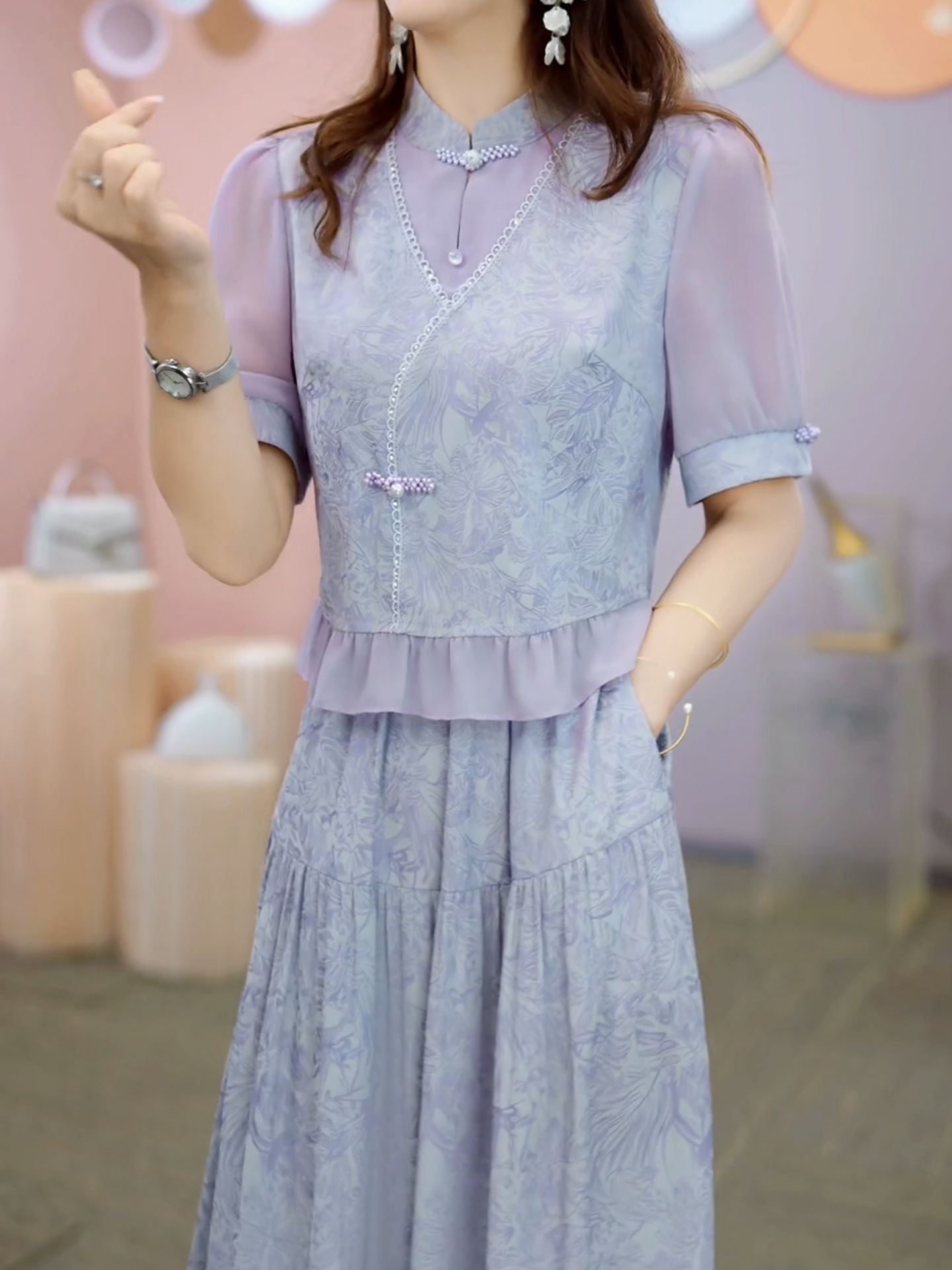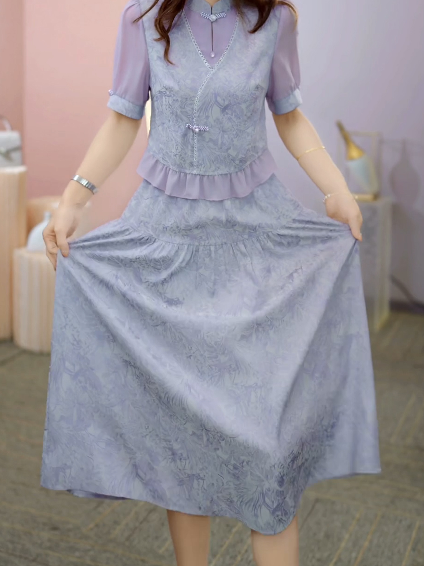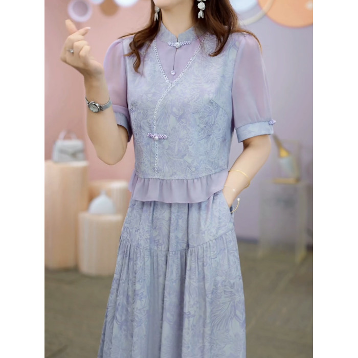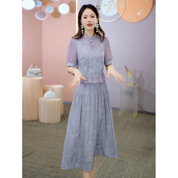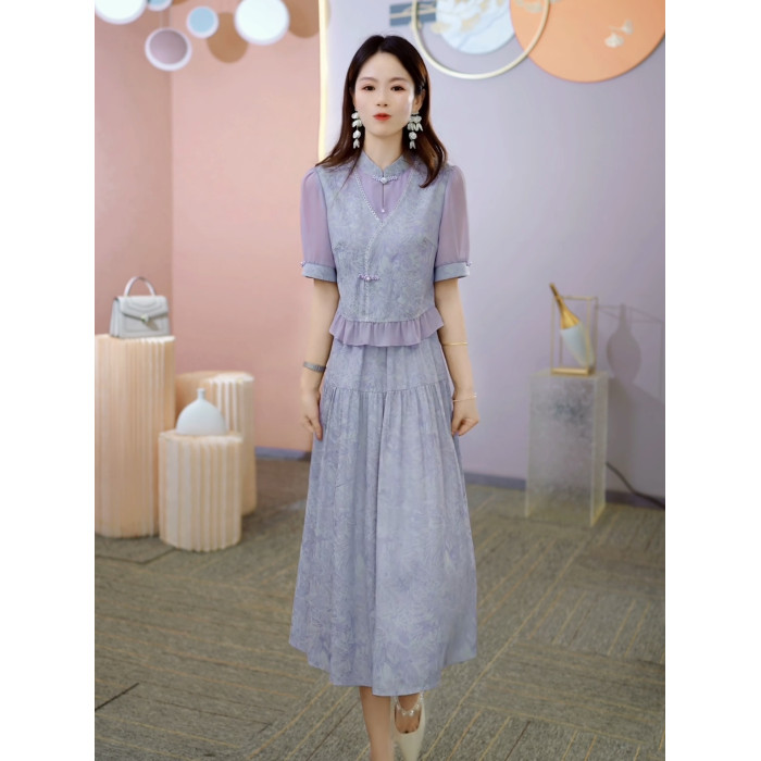 國風新中式高級假兩件連衣裙女2025年夏季時尚氣質減齡中長款裙子
