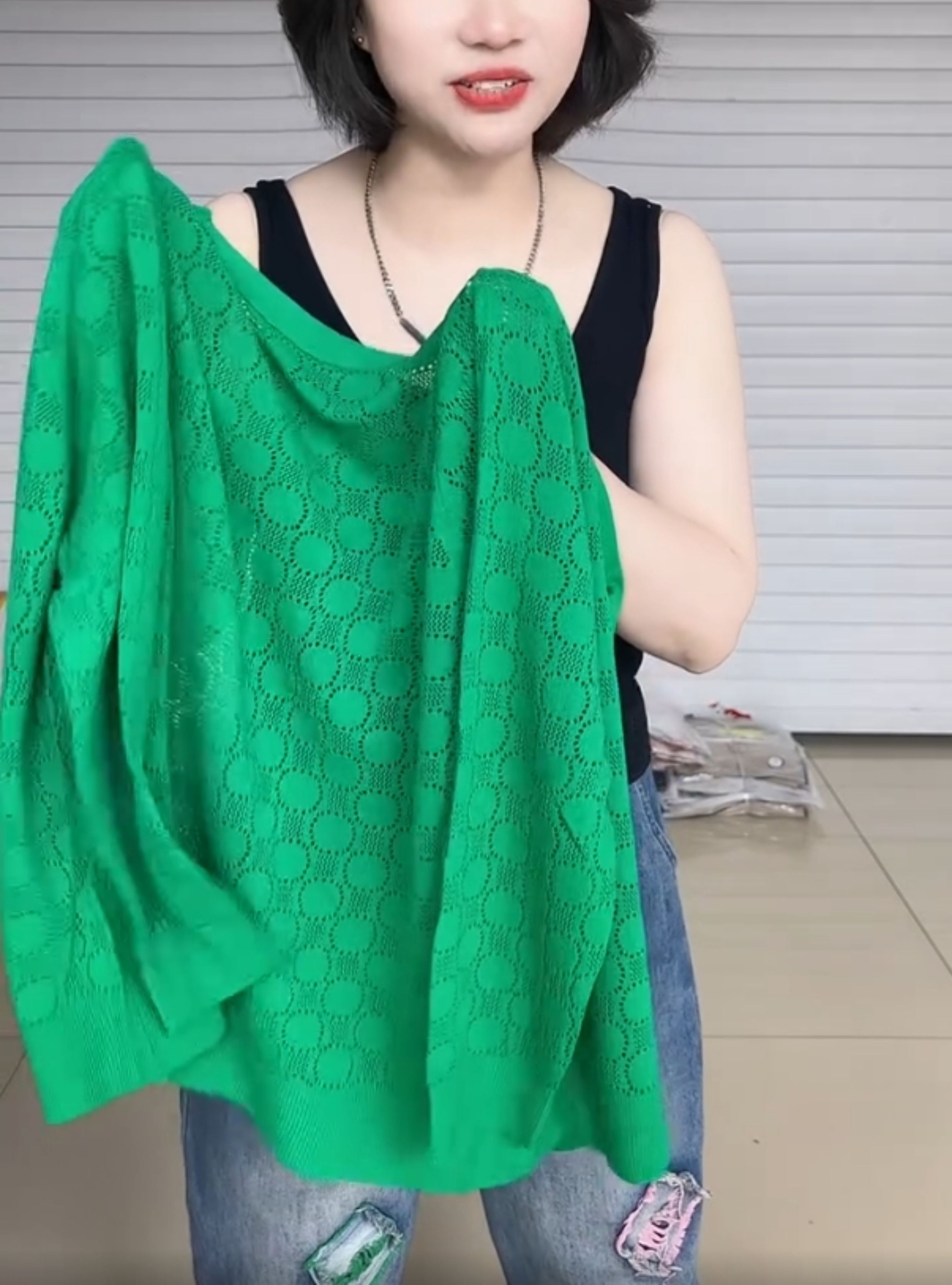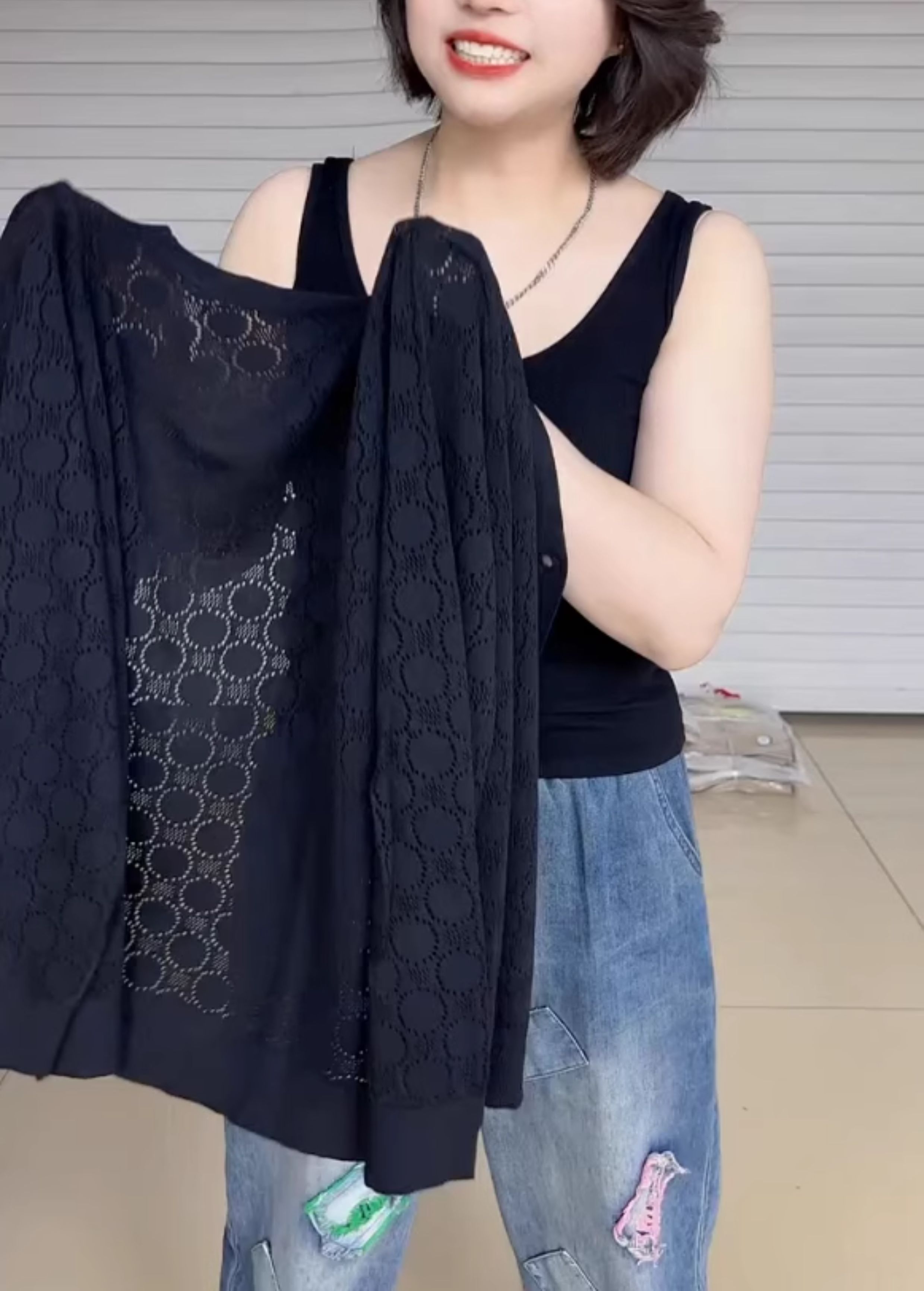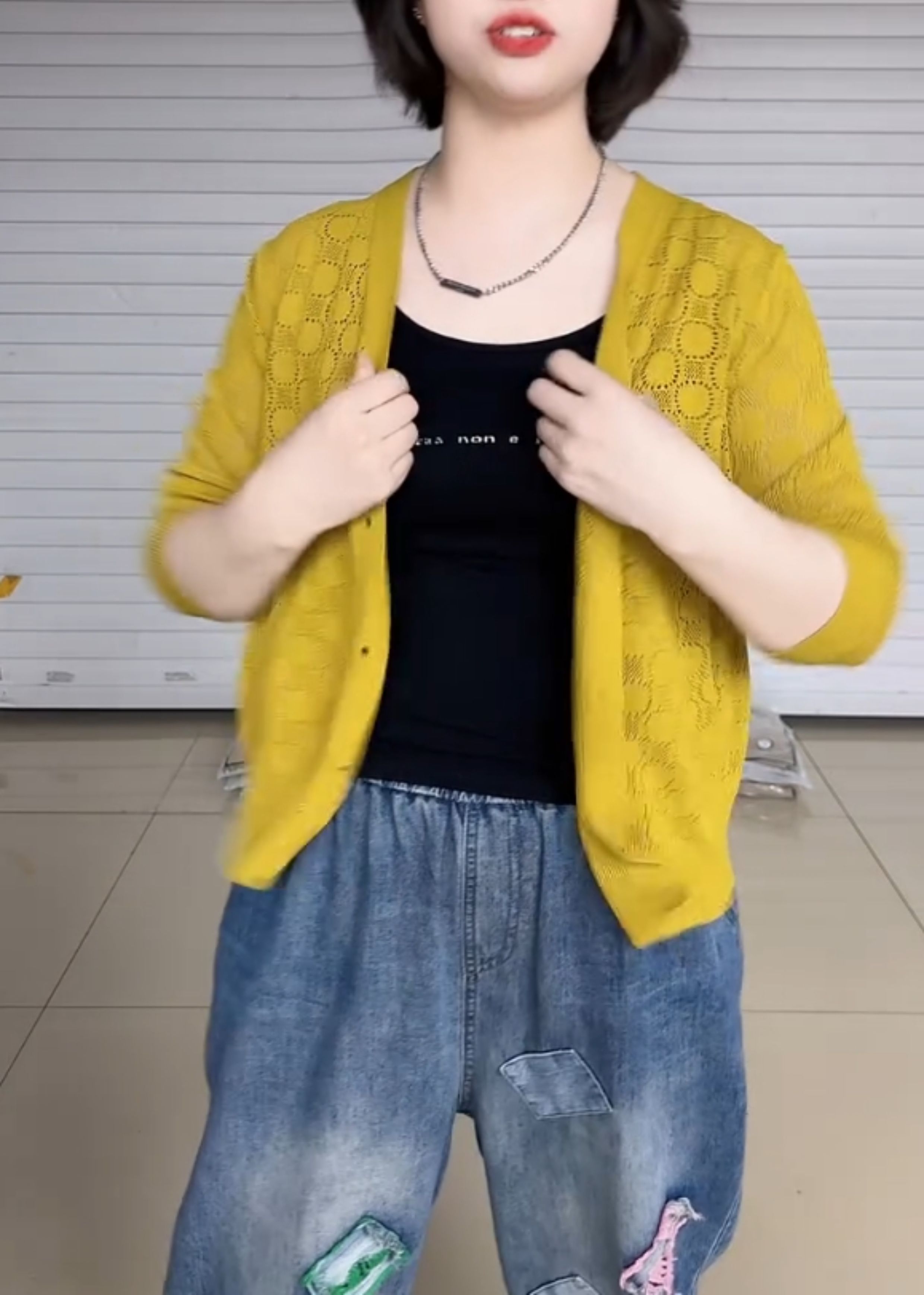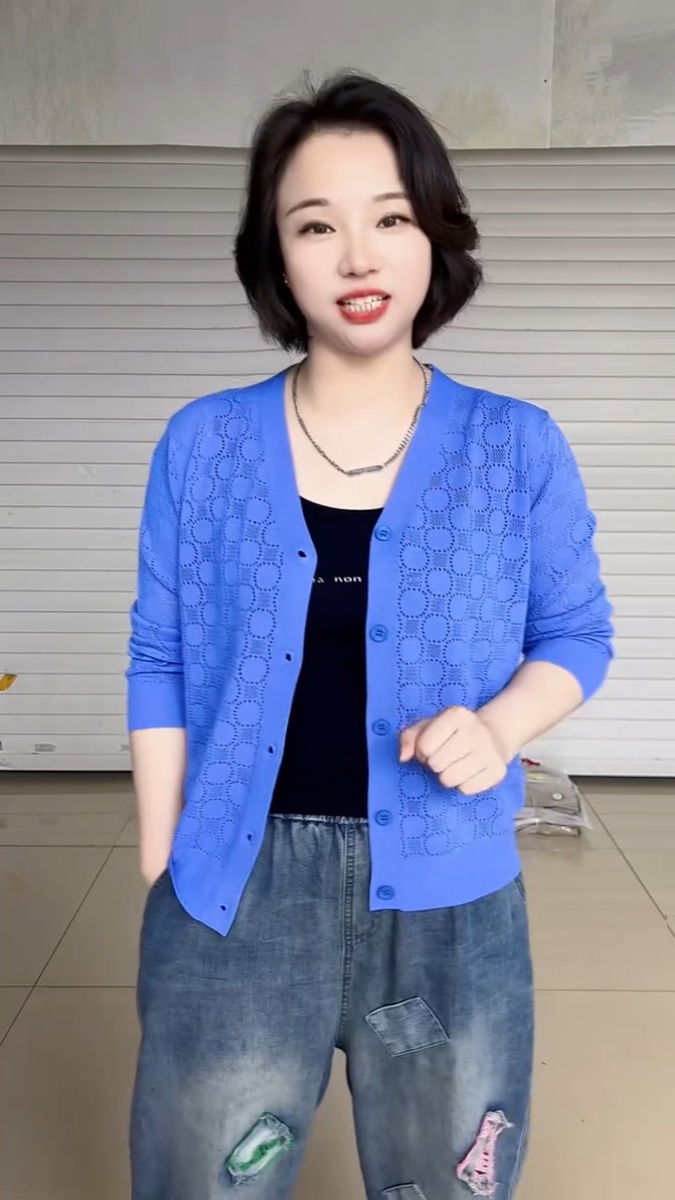 V領鏤空薄款夏季親膚透氣針織開衫小個子百搭粉色甜美防曬打底衫