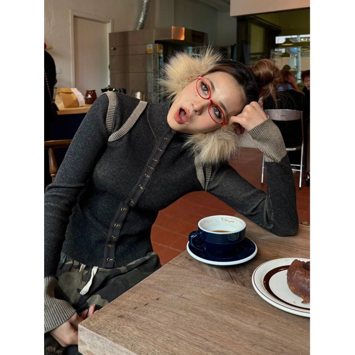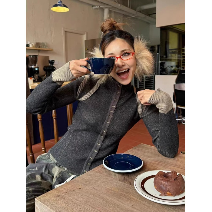 春秋季高領針織衫毛衣女設計感小衆修身內搭美式復古打底衫上衣