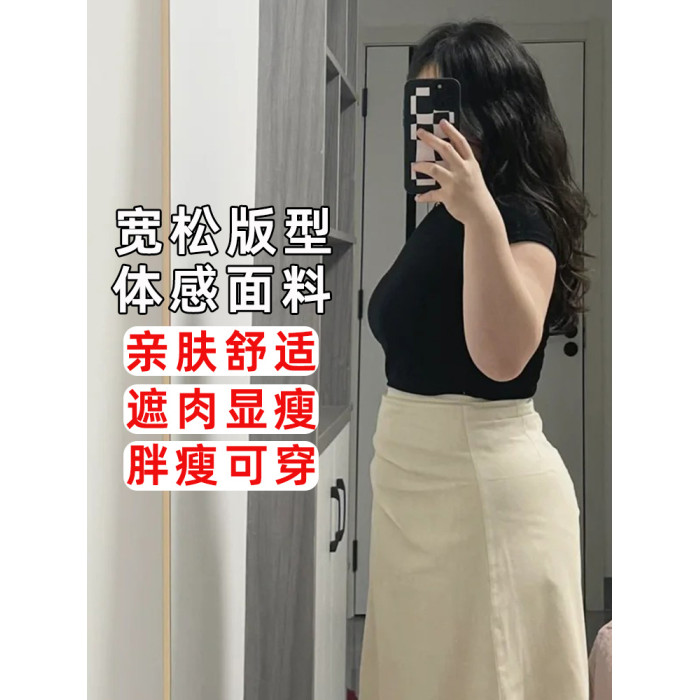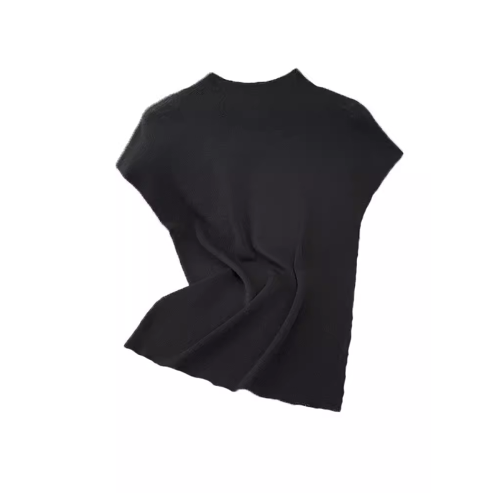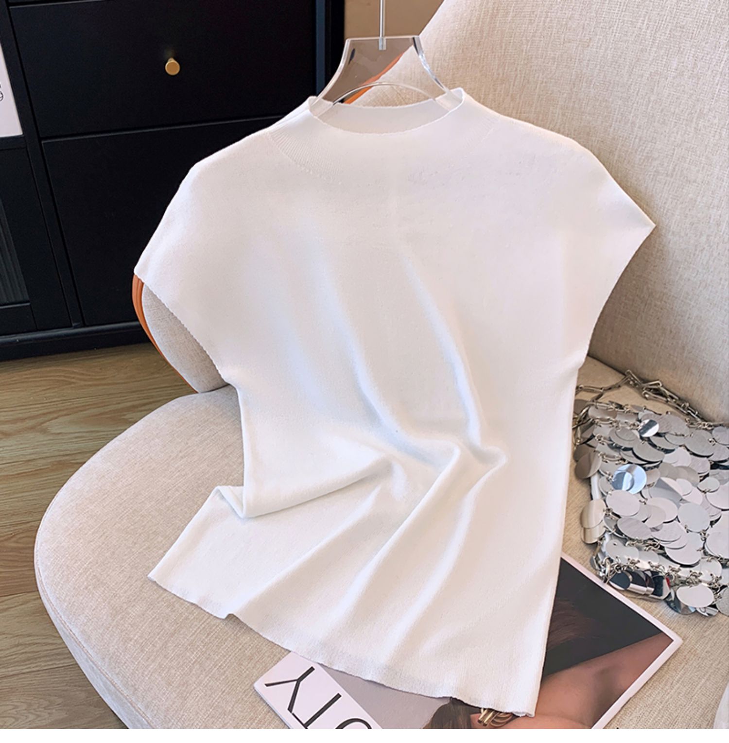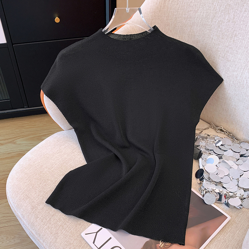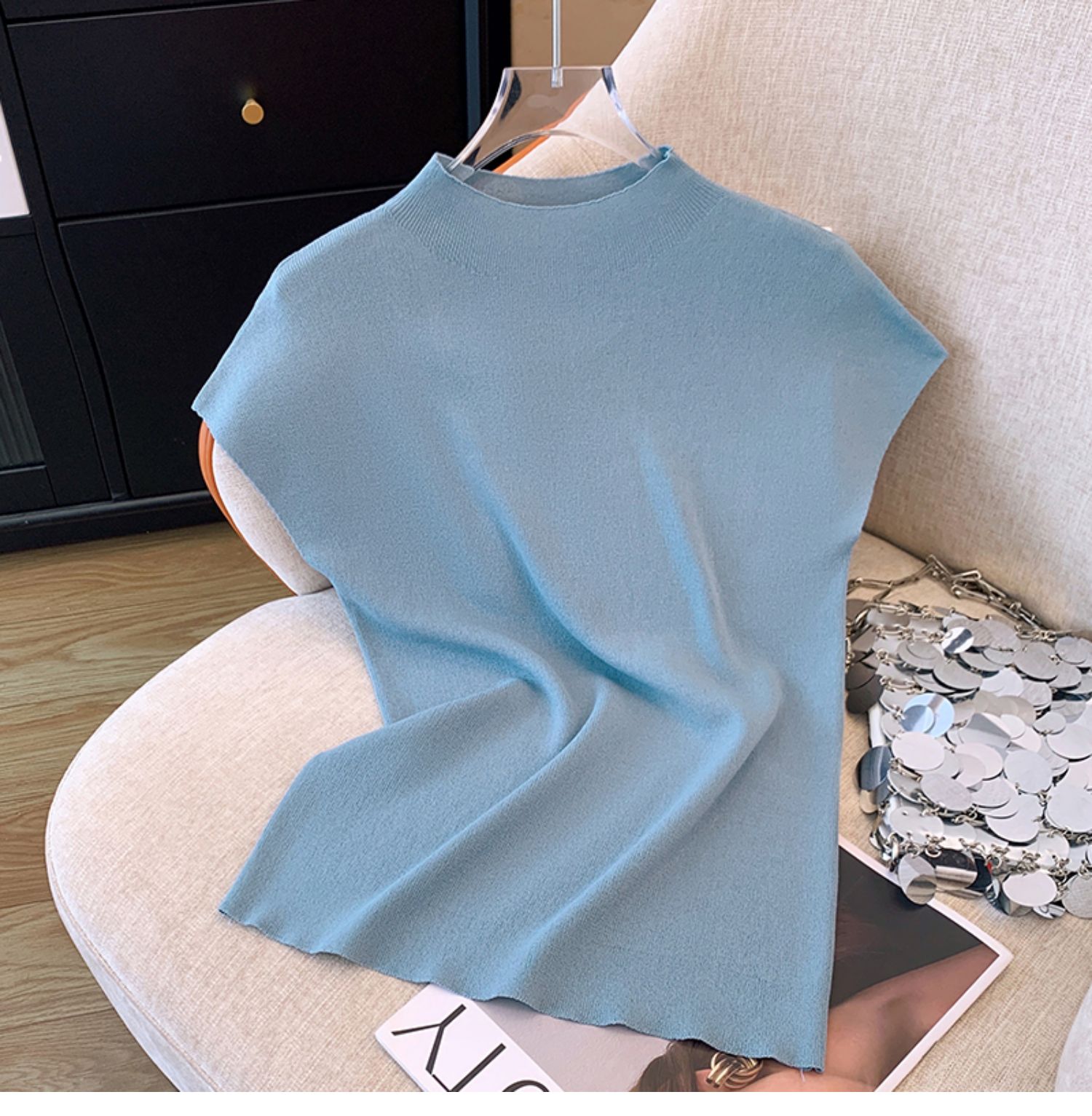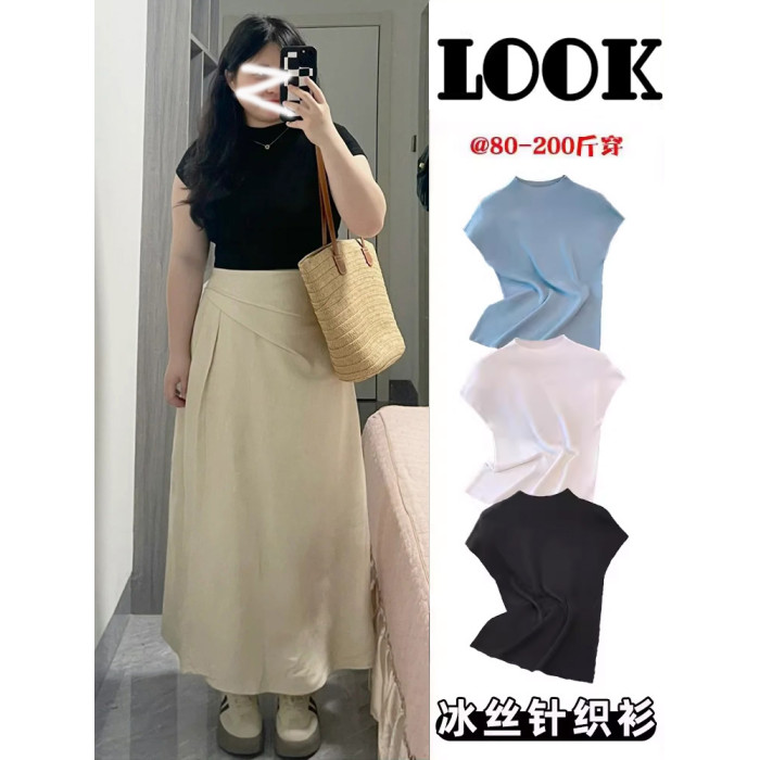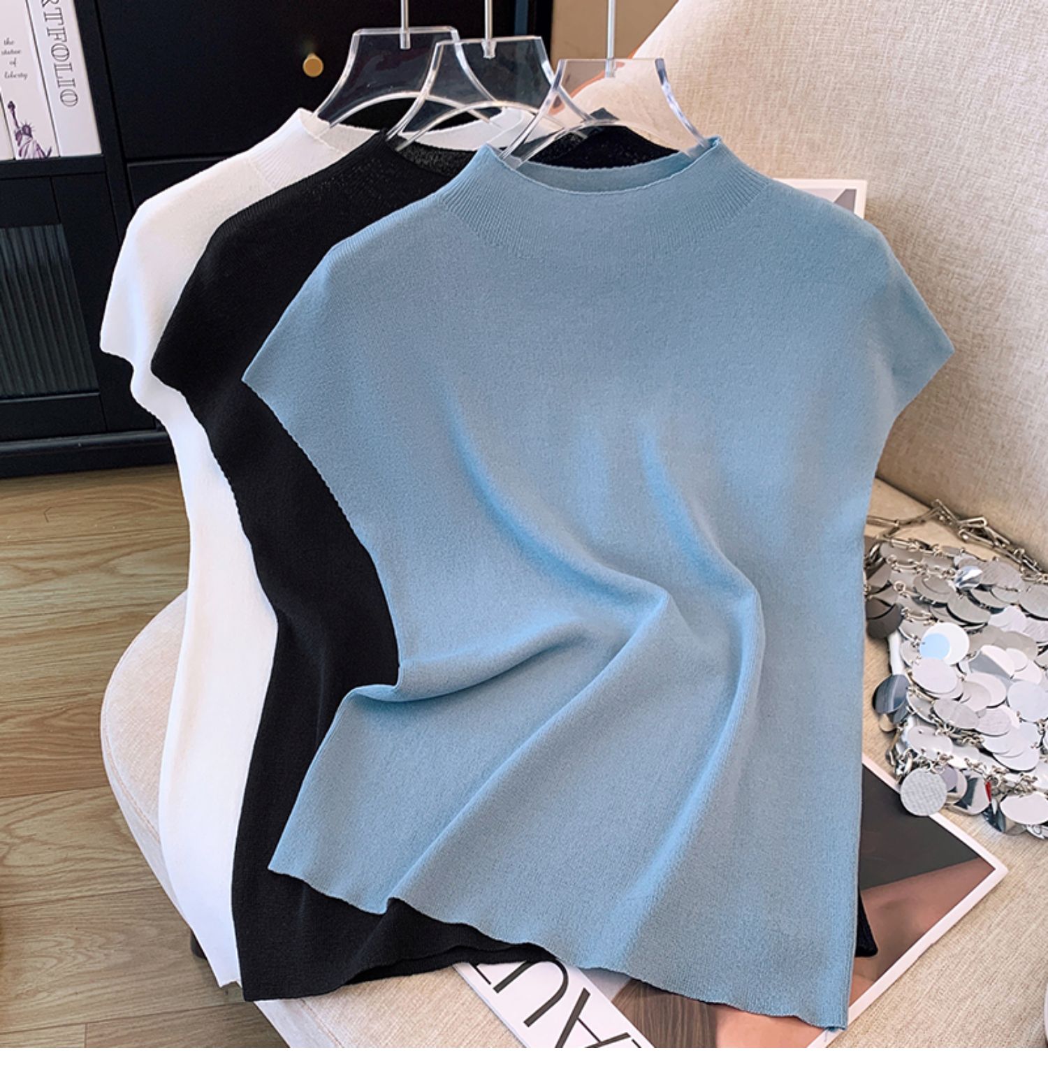 微胖冰絲針織衫女夏設計感小衆高級感大碼飛飛袖半高領內搭打底衫