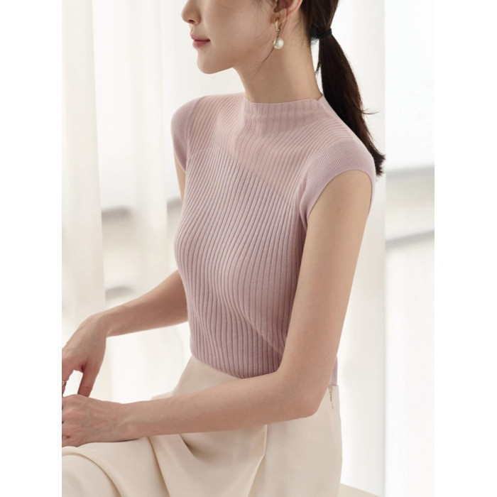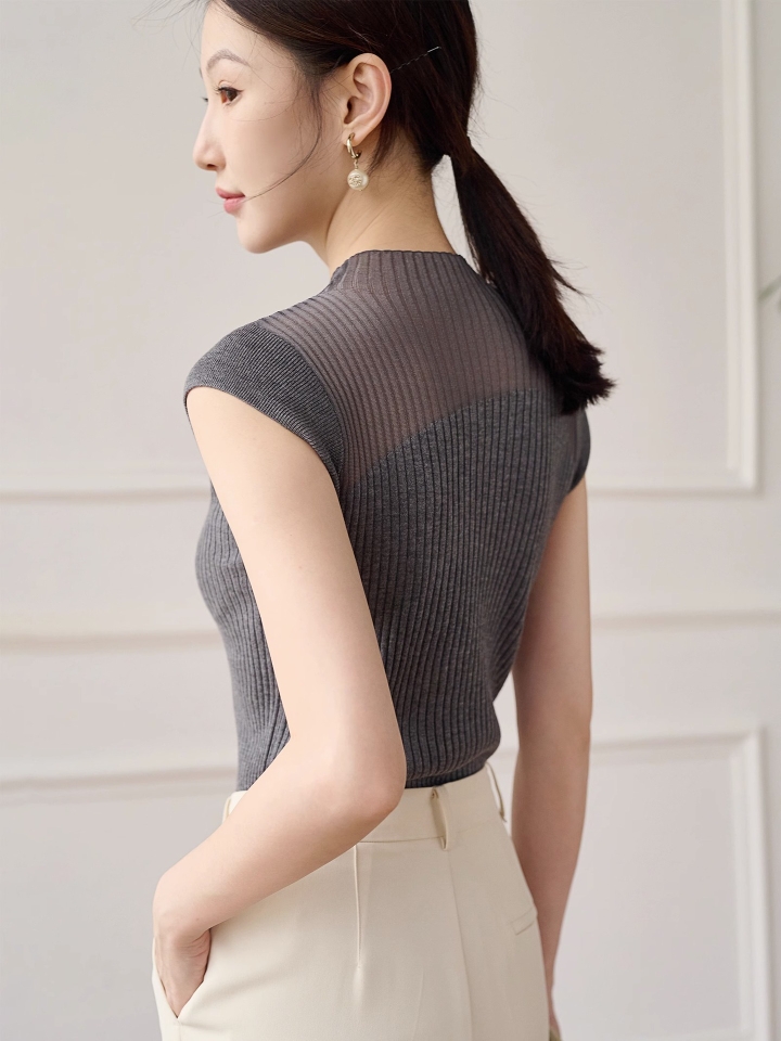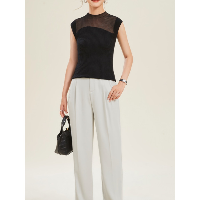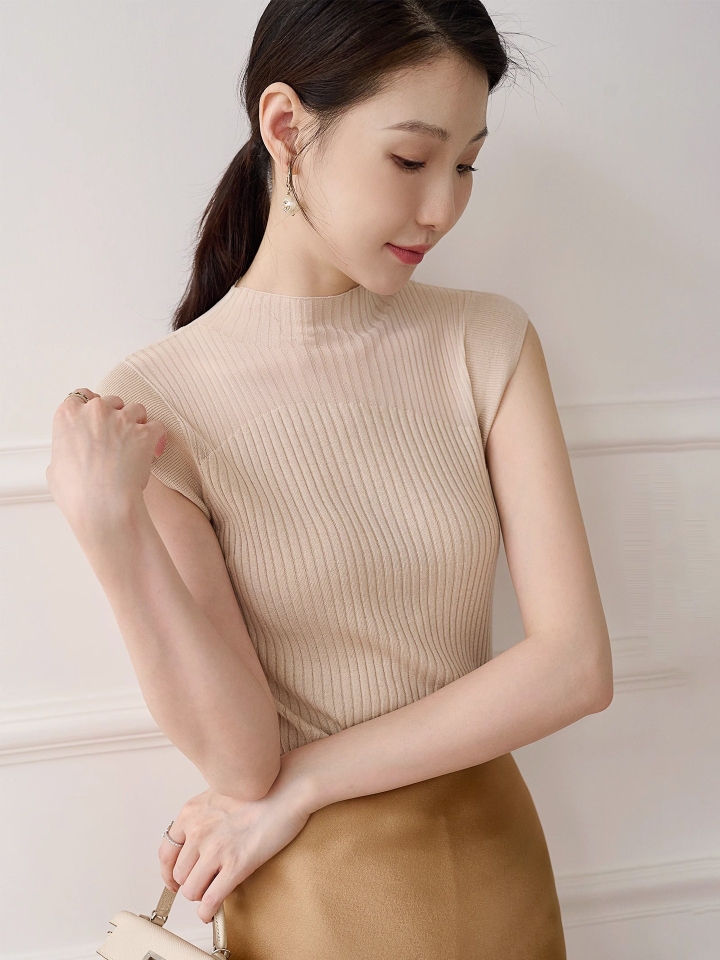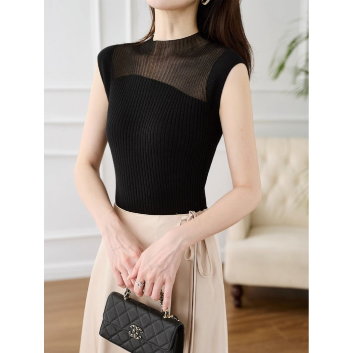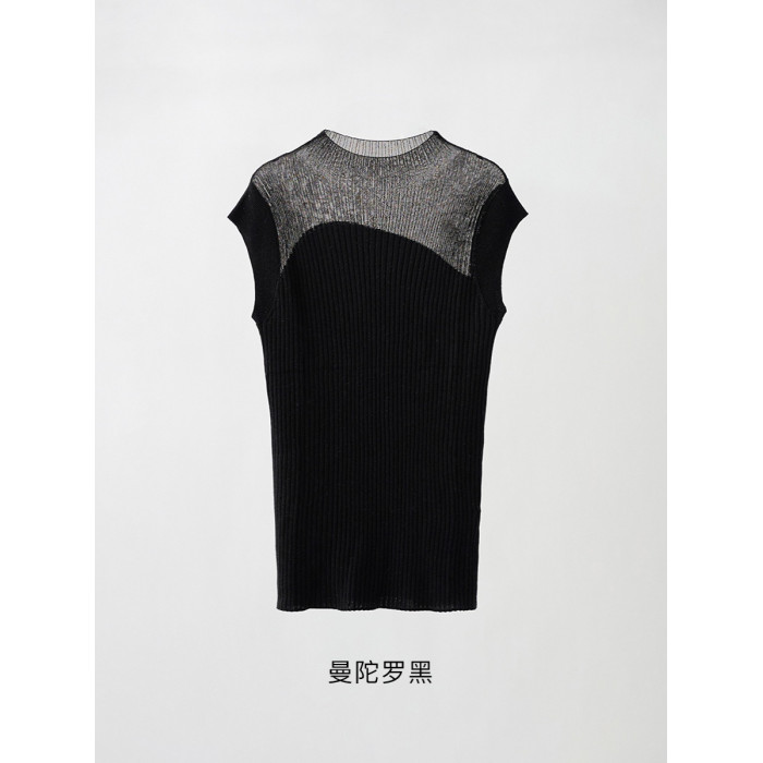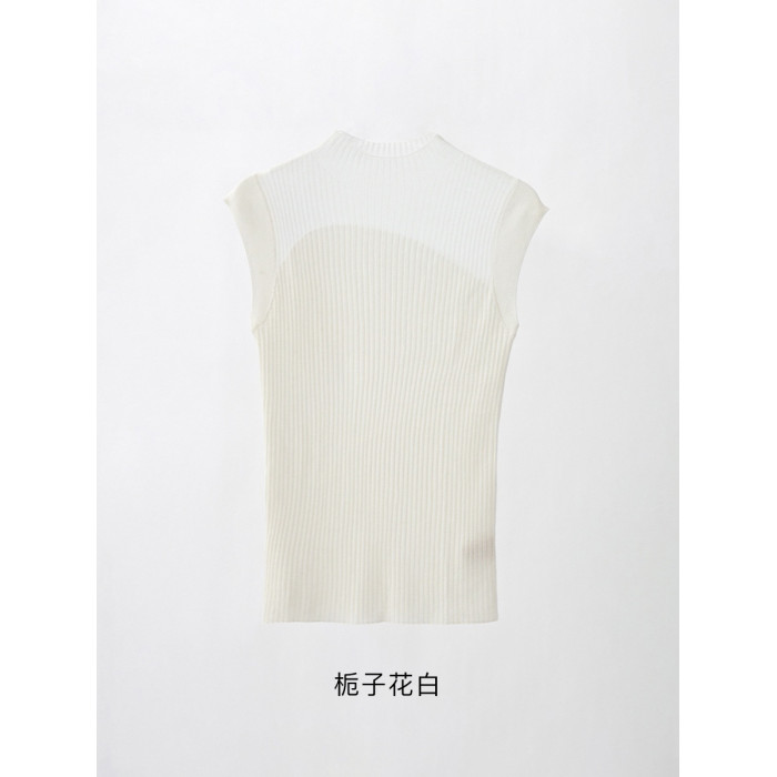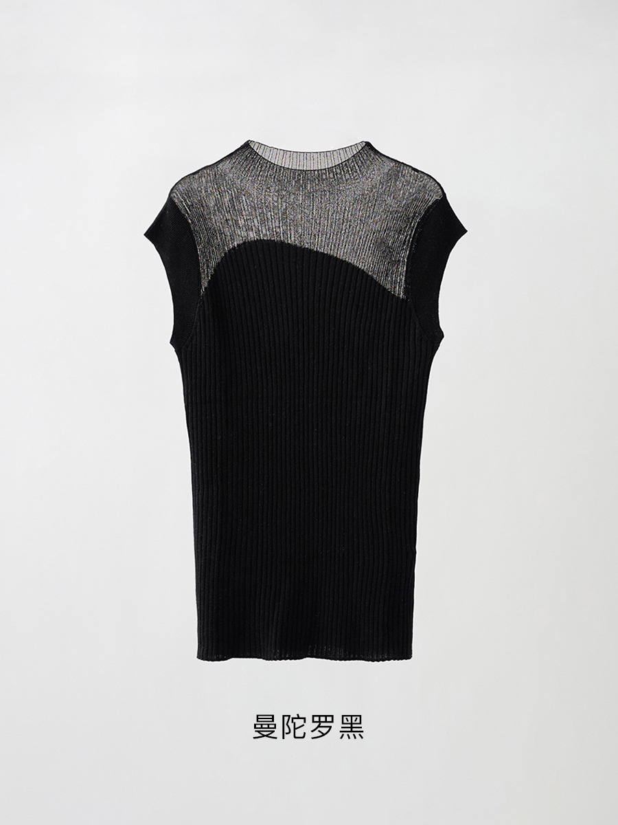 半高領打底衫背套頭心無袖拼色顯瘦氣質百搭