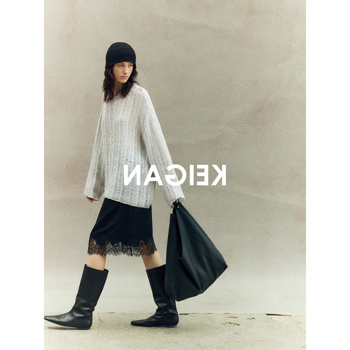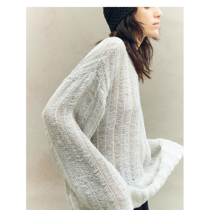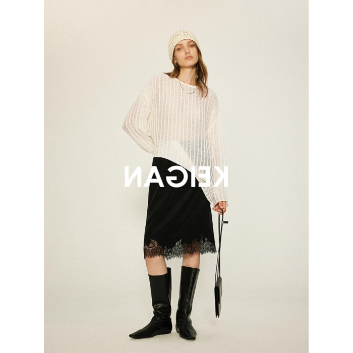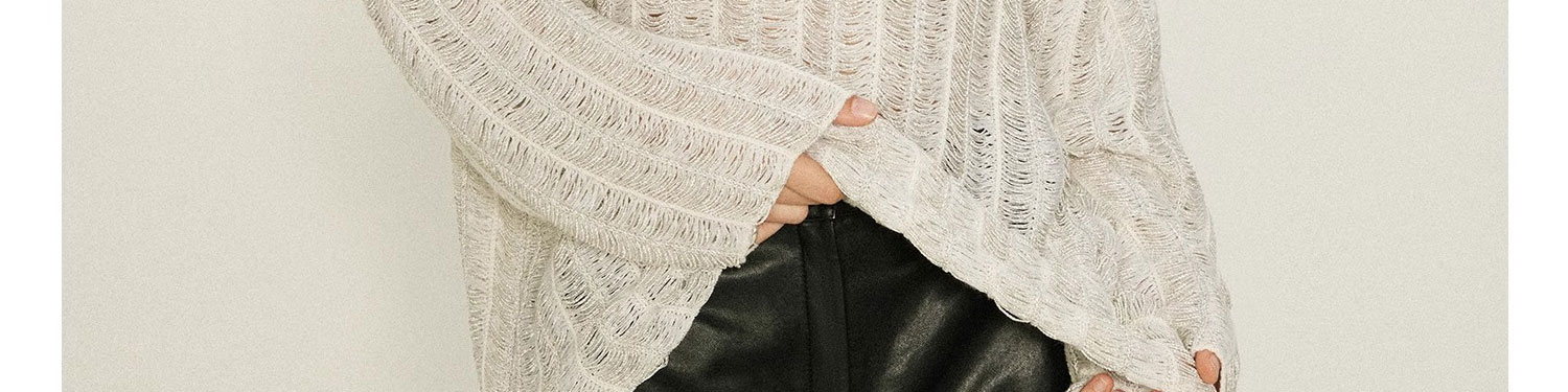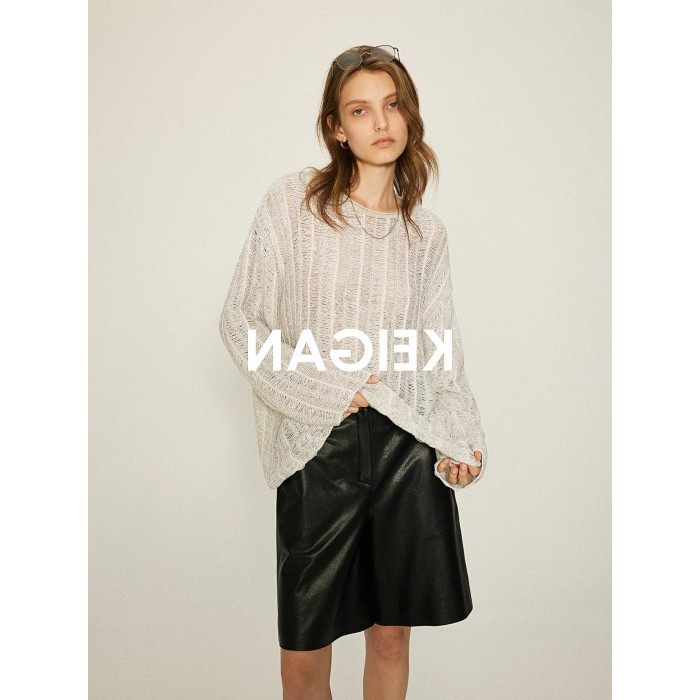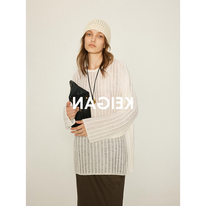 重工肌理感鏤空寬松針織罩衫上衣女秋季透視別致設計感寬松打底衫
