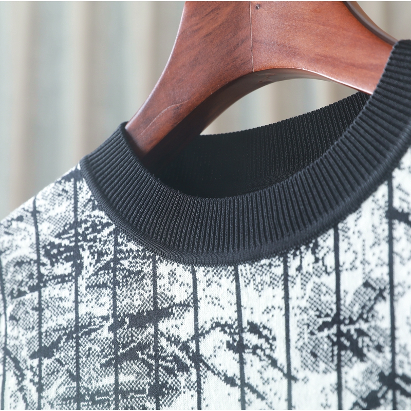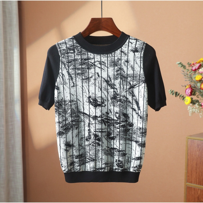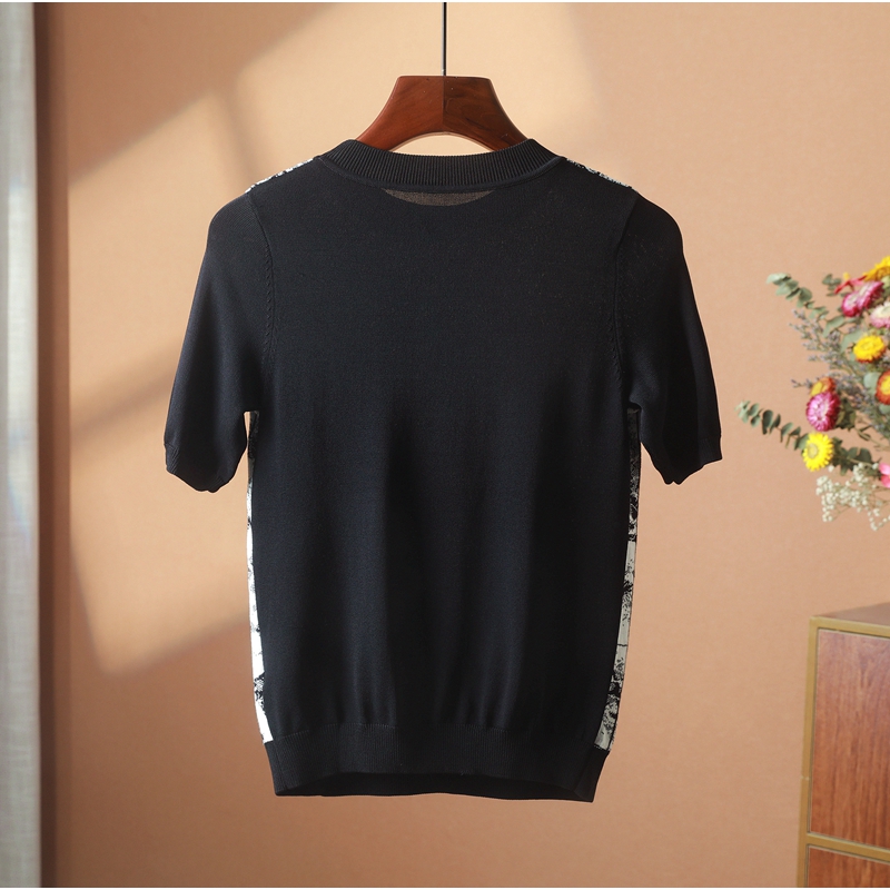 【H系列】圓領短袖寬松拼接撞色常規百搭針織衫通勤打底衫 爍