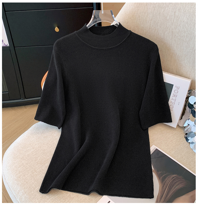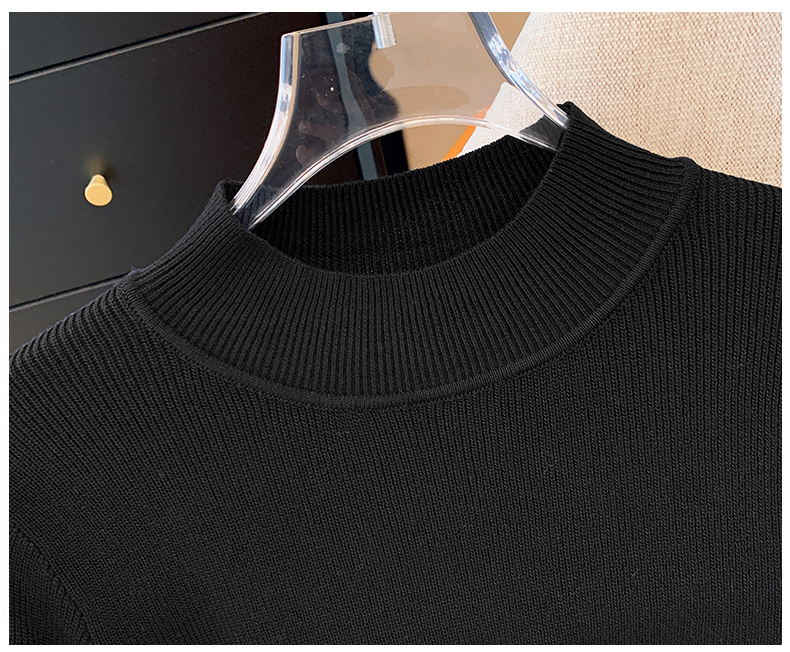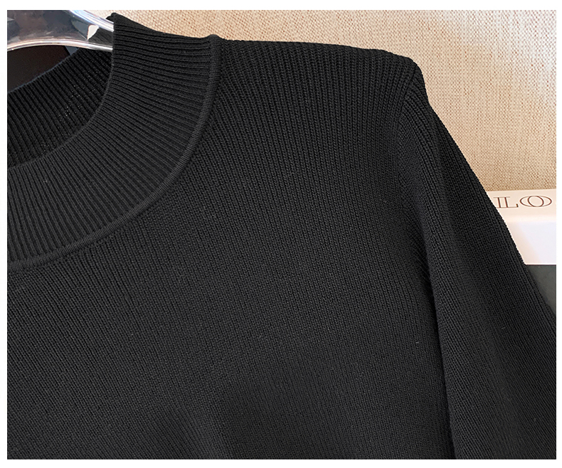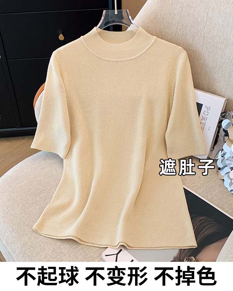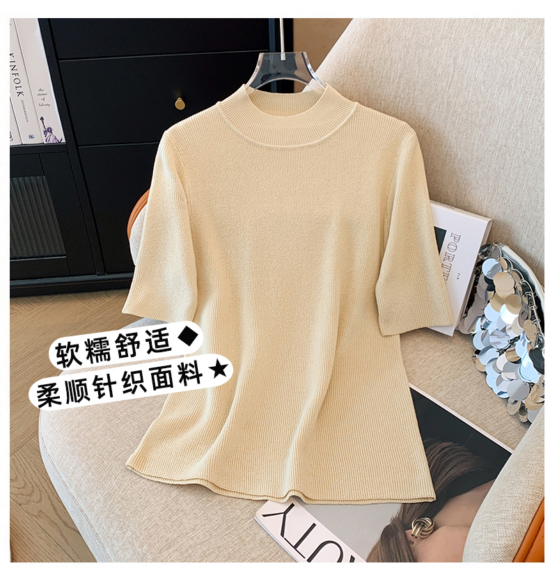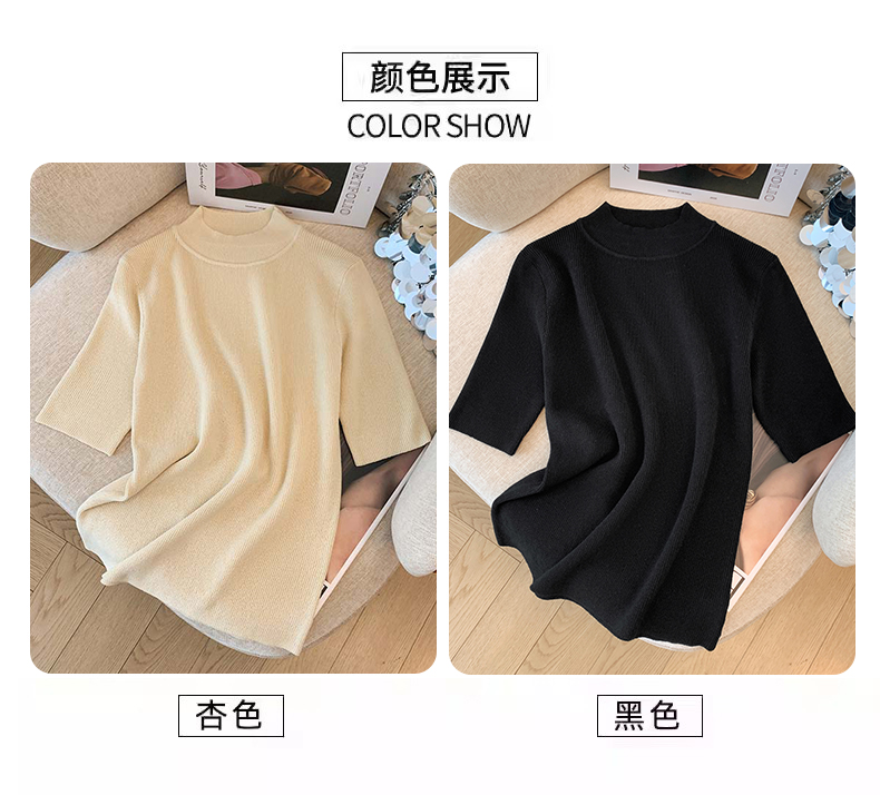 胖mm顯瘦正肩半高領中袖針織衫女大碼春秋五分袖內搭打底衫上衣