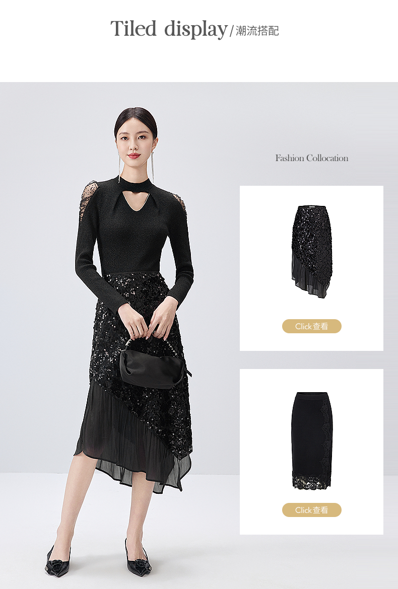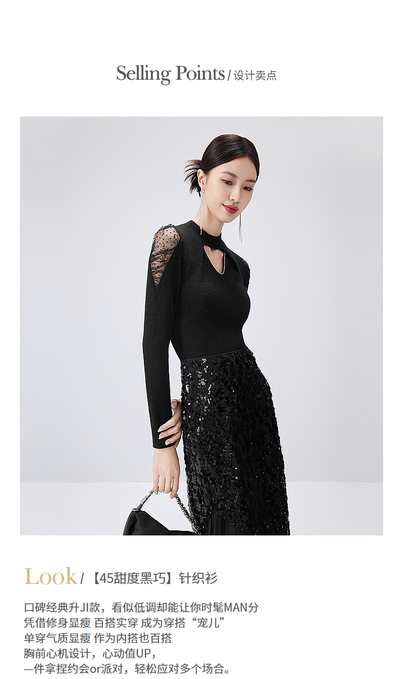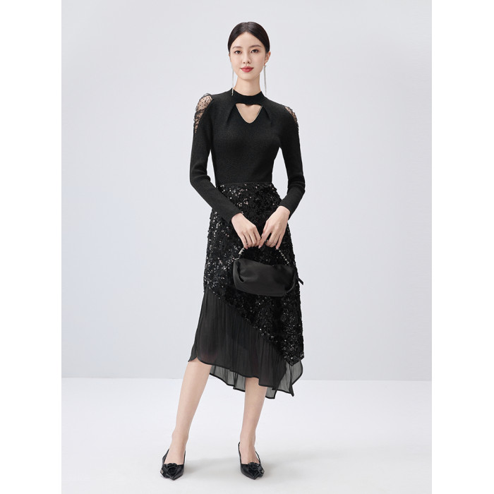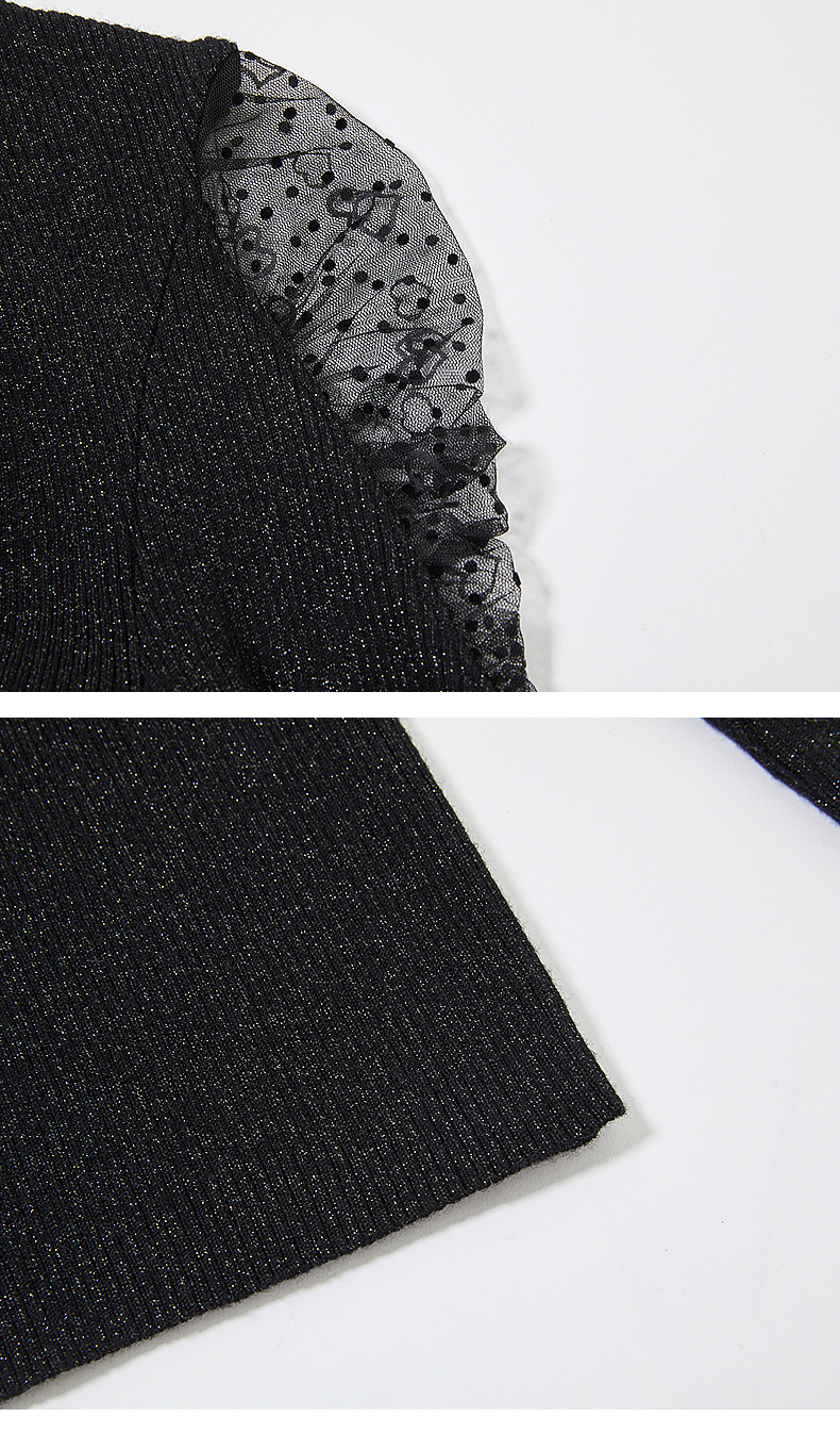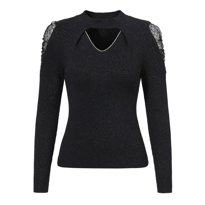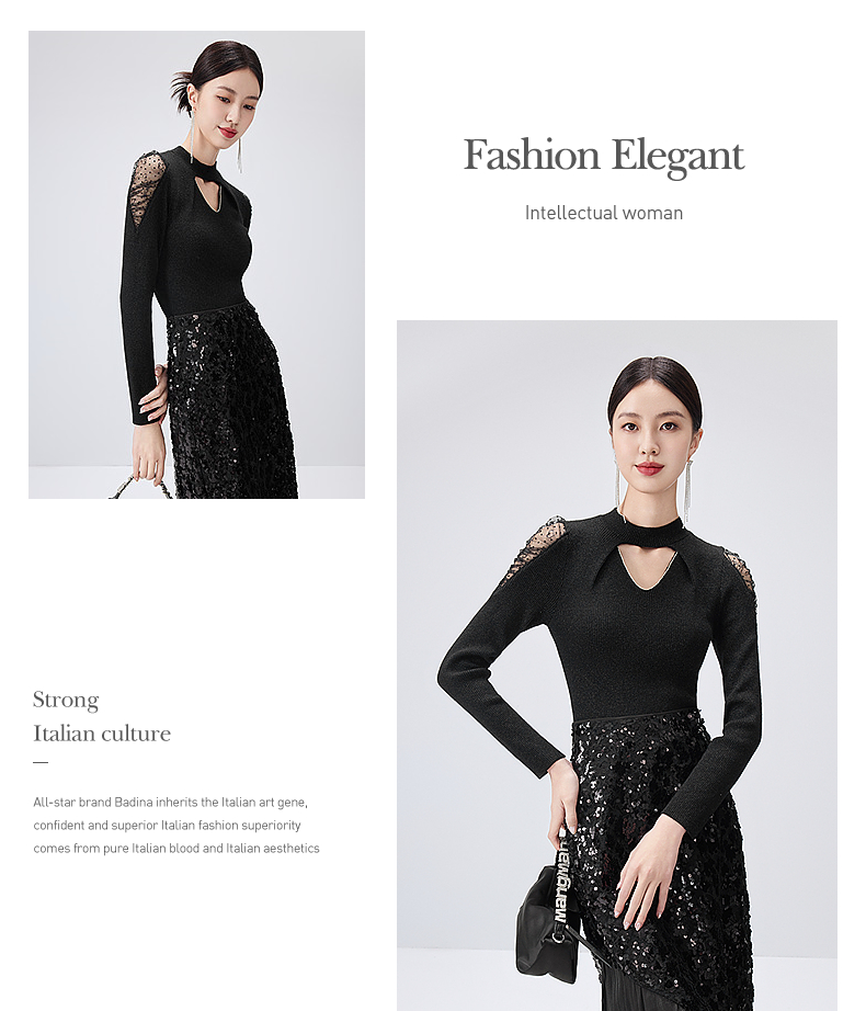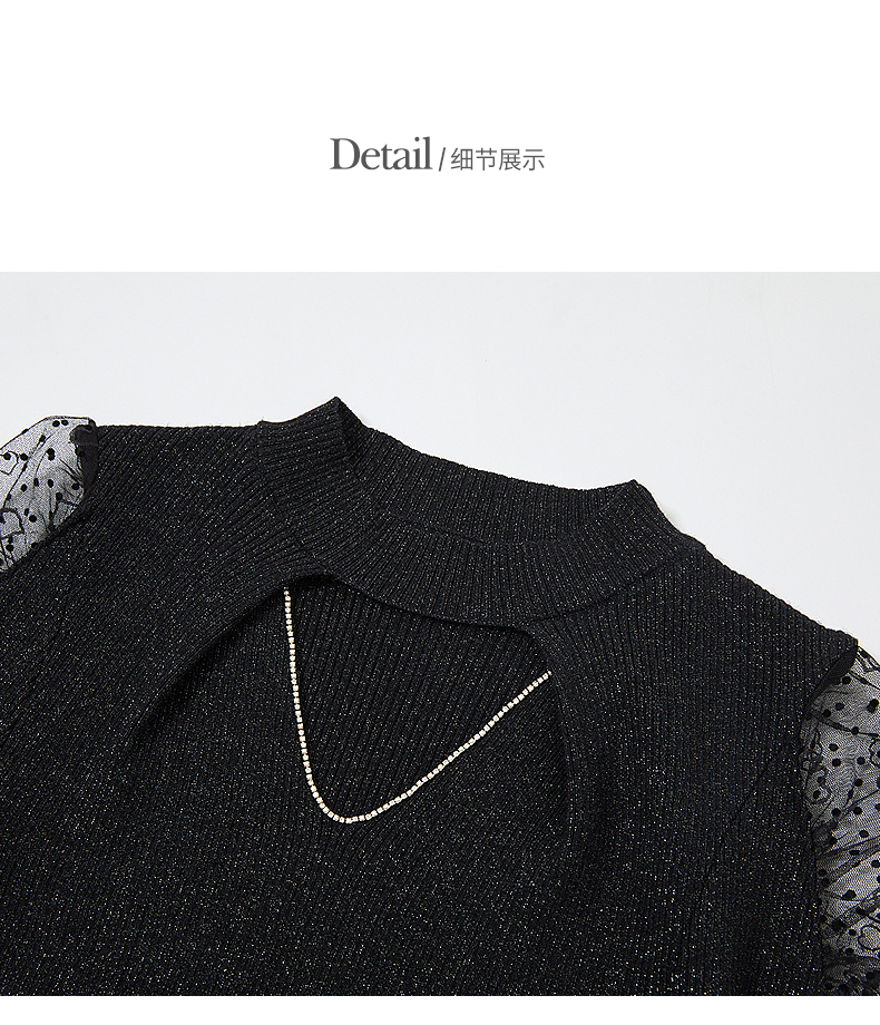 芭蒂娜蕾絲拼接針織衫女羊毛鏤空打底衫