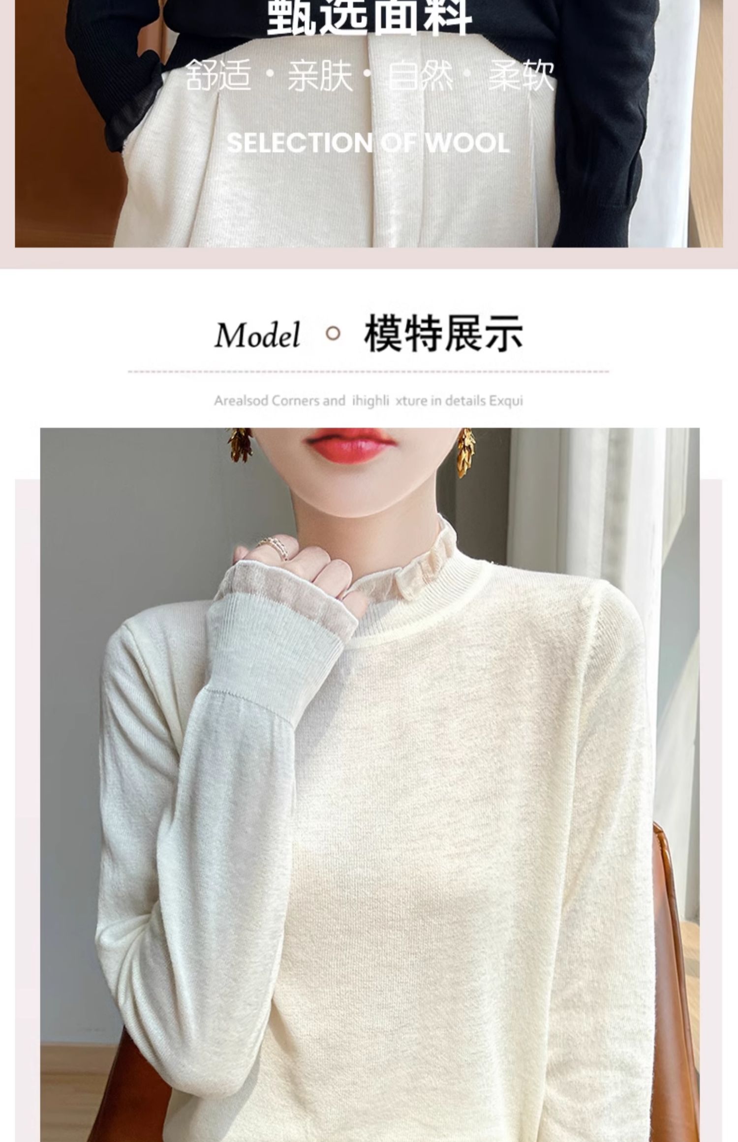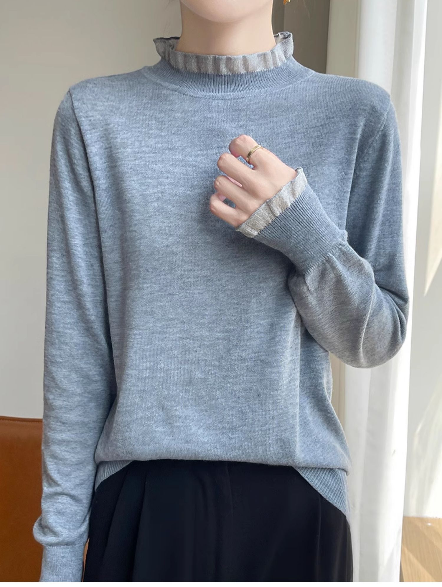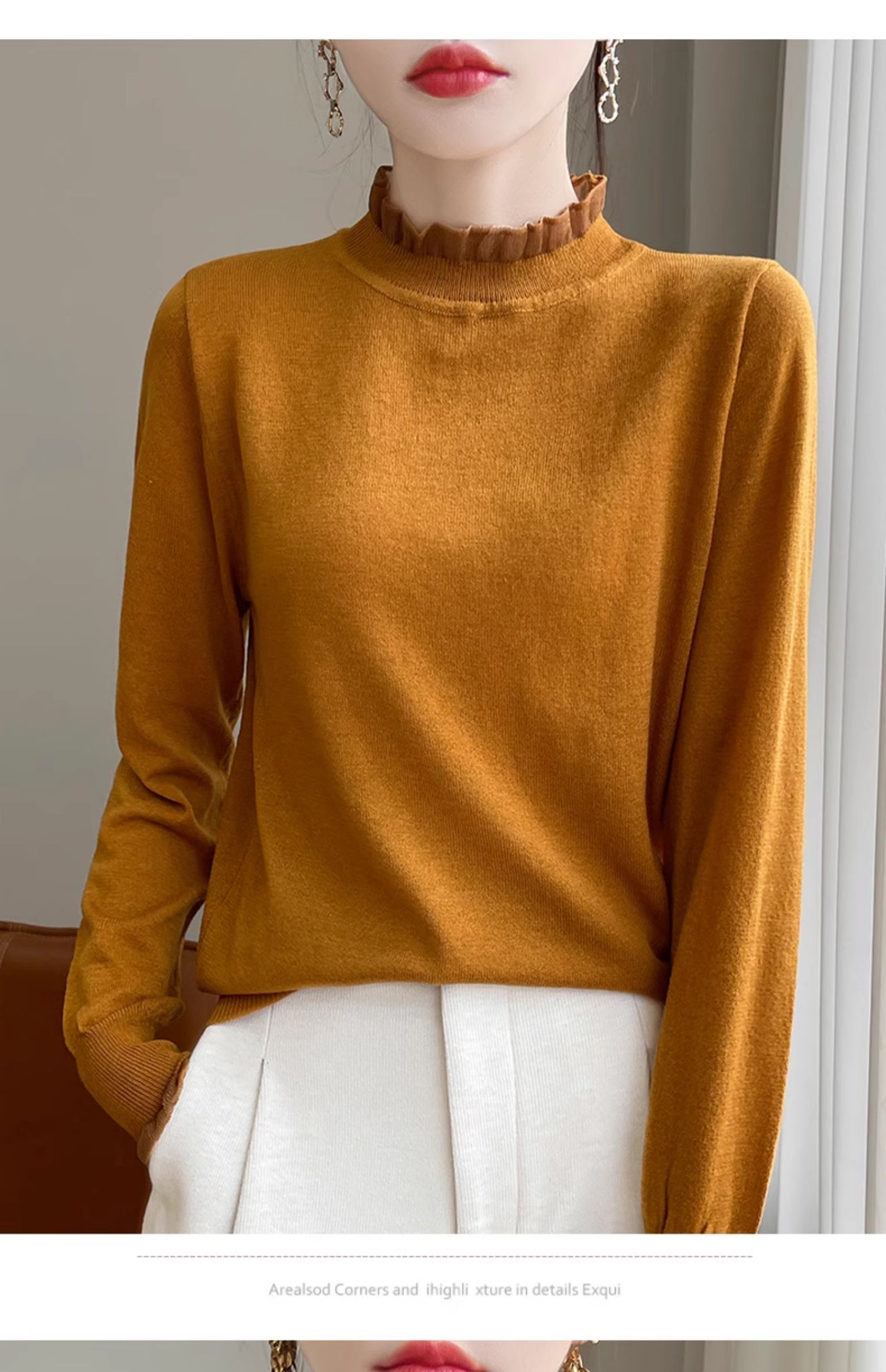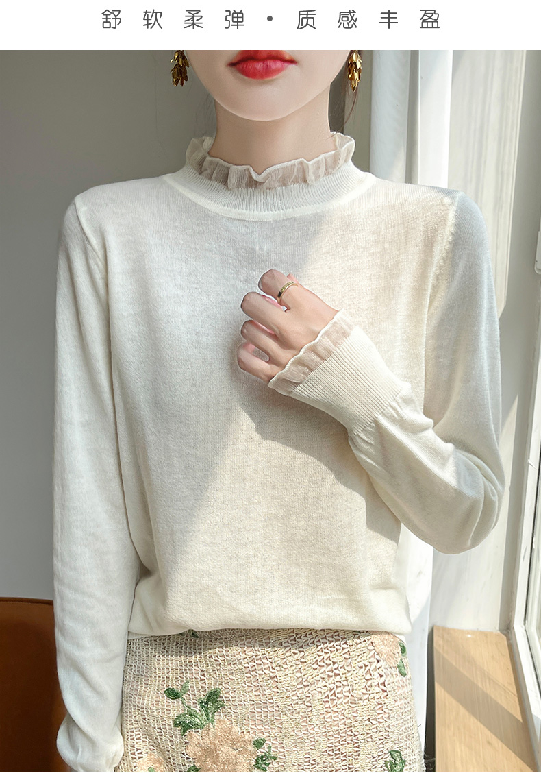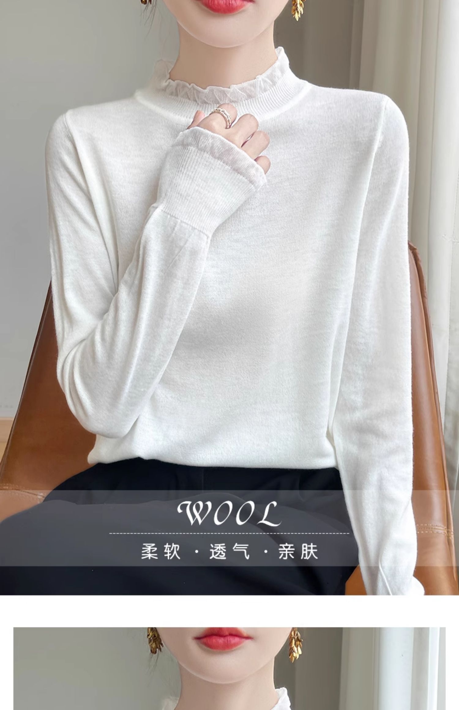 時髦洋氣蕾絲木耳領花邊毛衣女秋冬內搭寬松顯瘦半高領針織打底衫