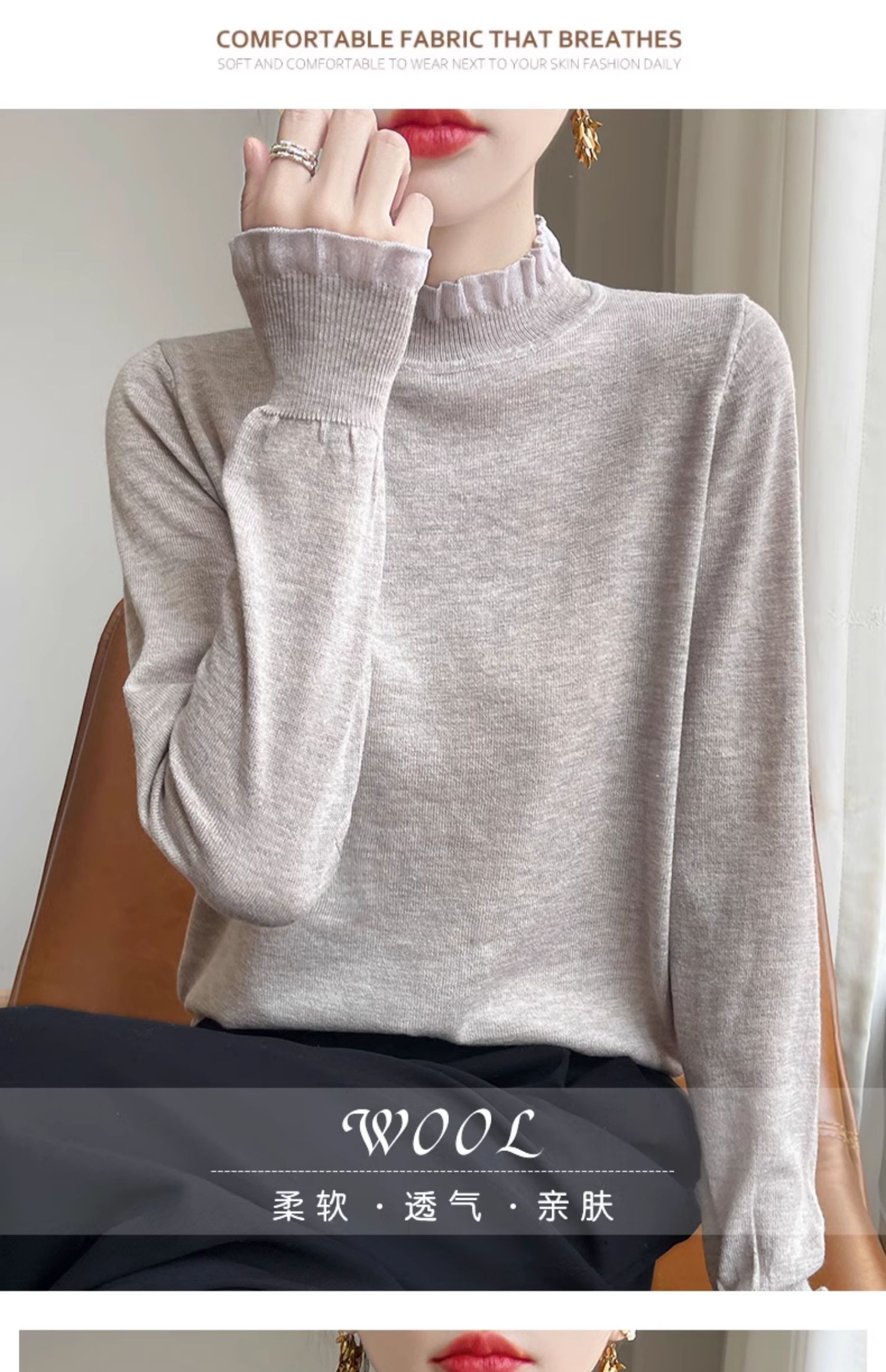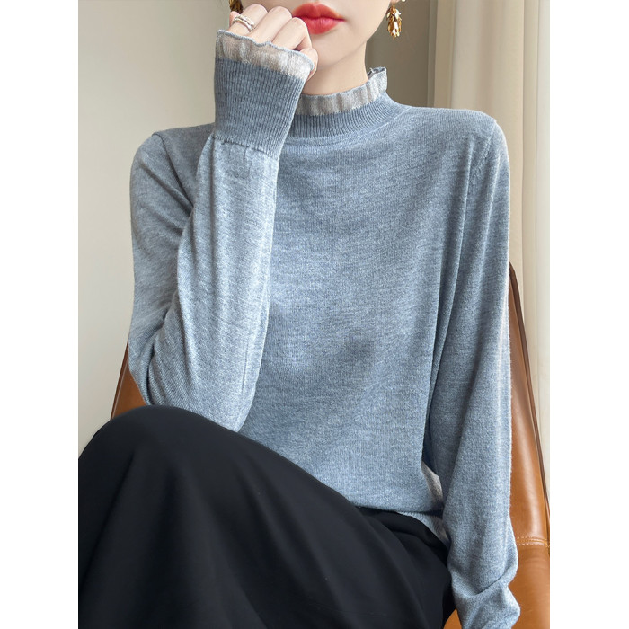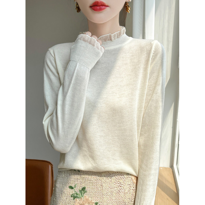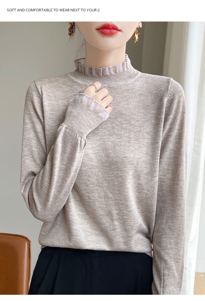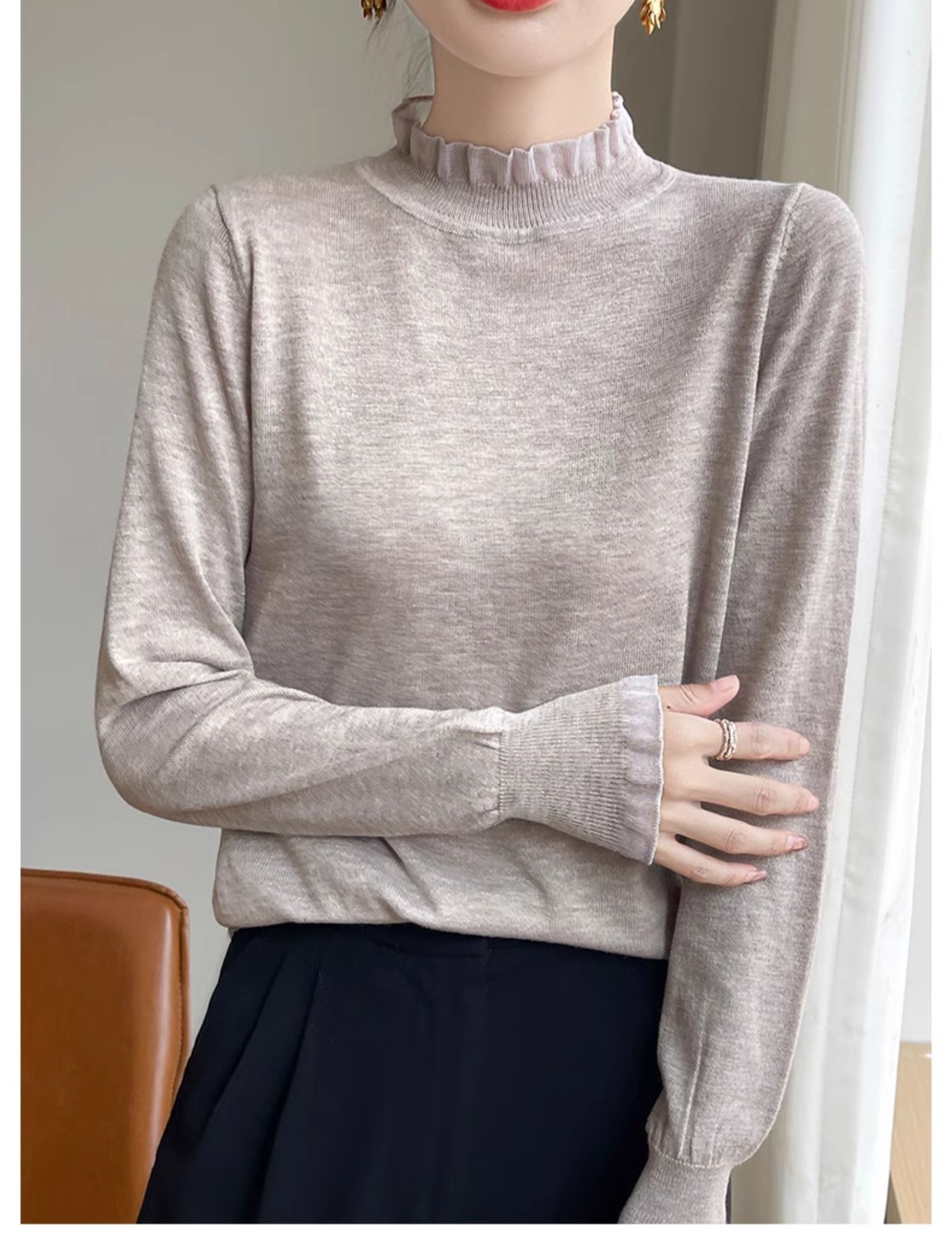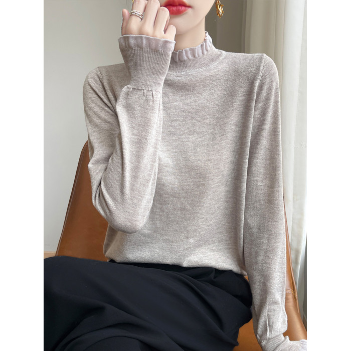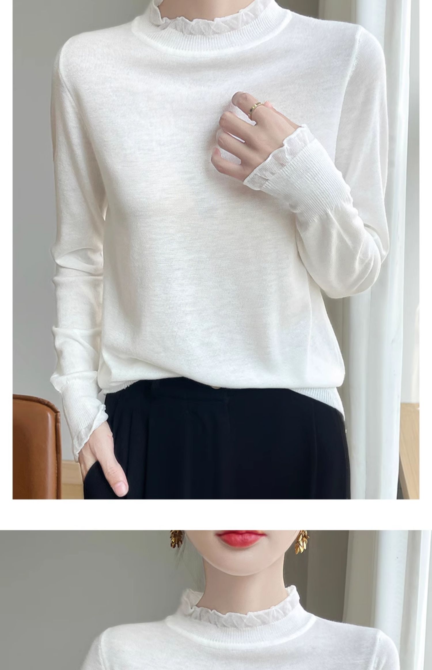 時髦洋氣蕾絲木耳領花邊毛衣女秋冬內搭寬松顯瘦半高領針織打底衫