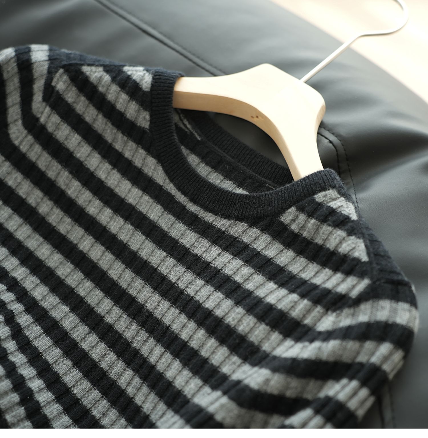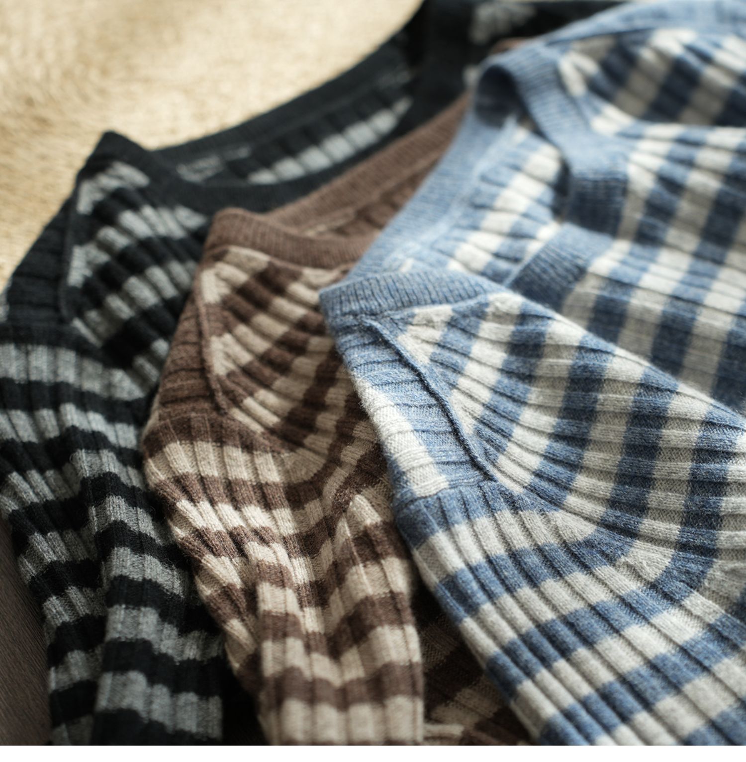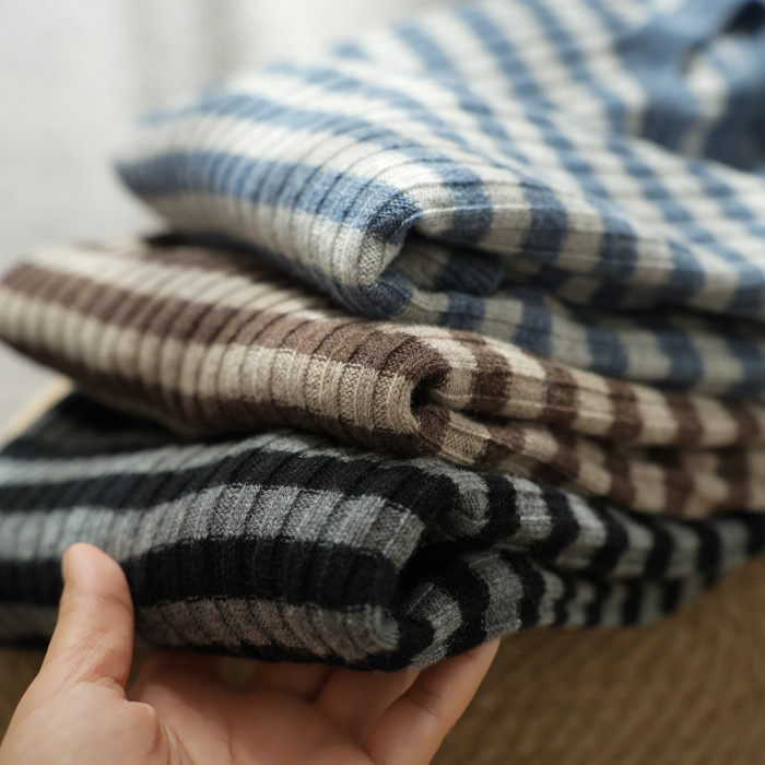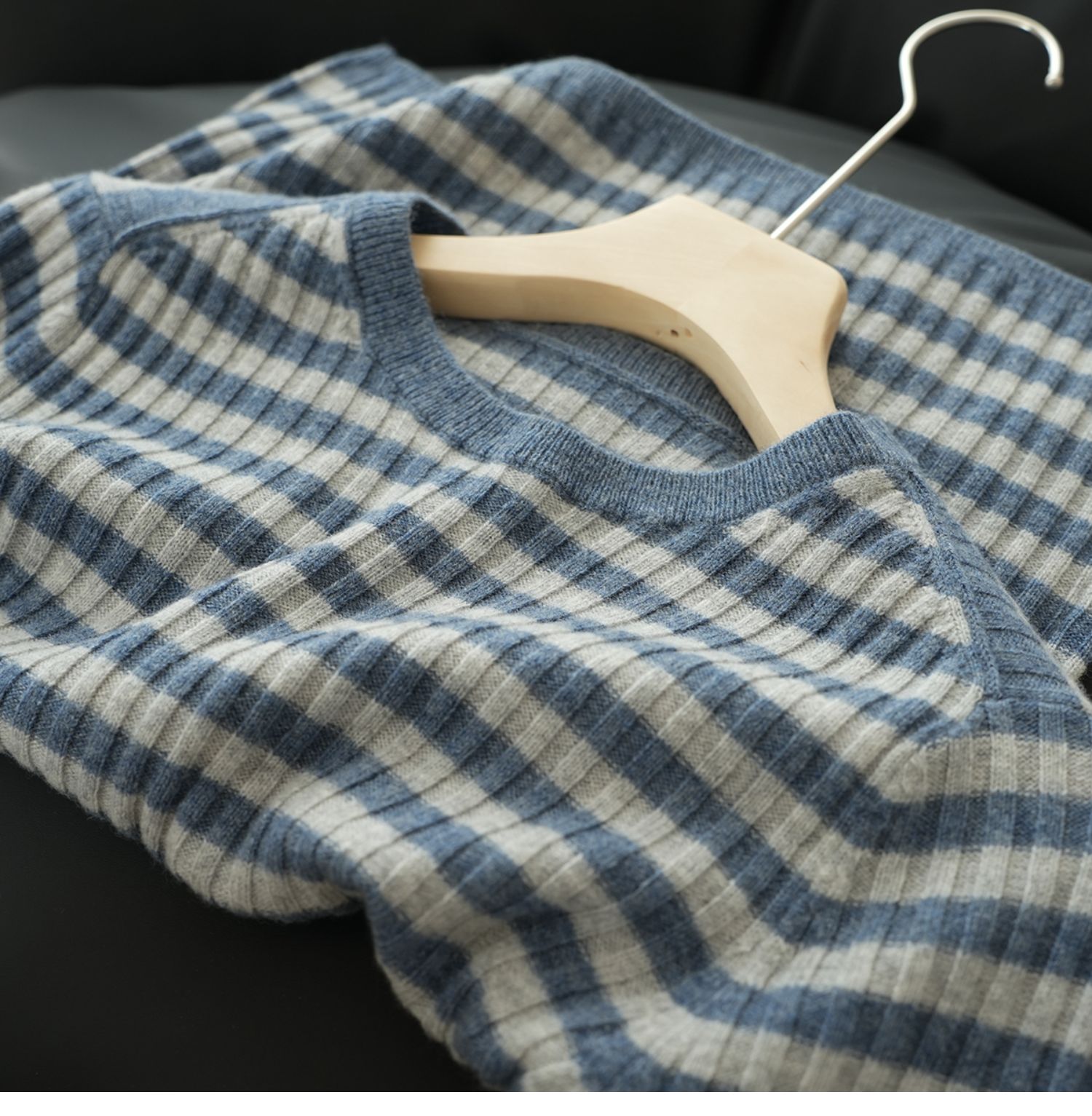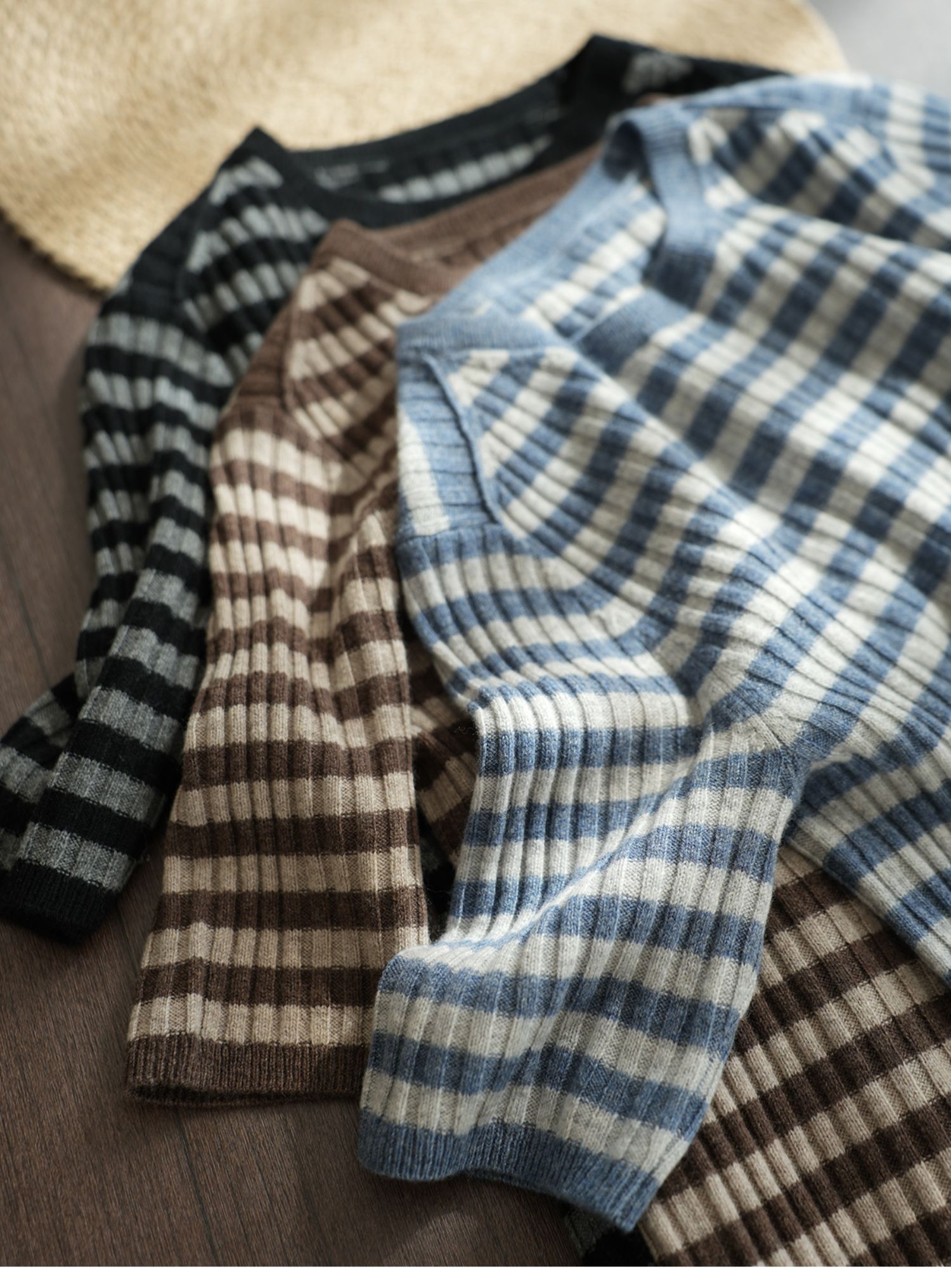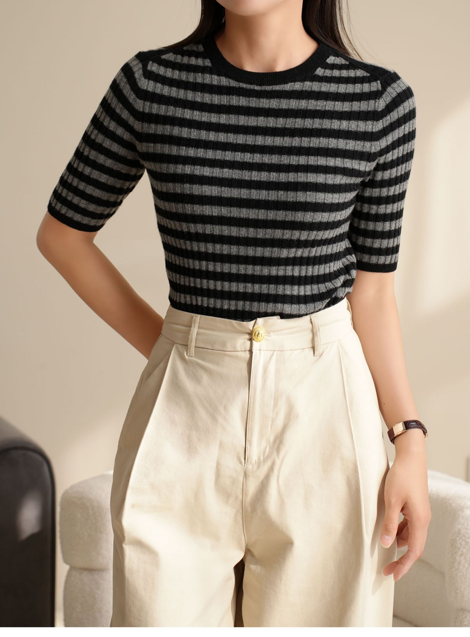 福利 無補 90羊毛10羊絨 女士條紋針織衫五分袖打底衫 春秋款