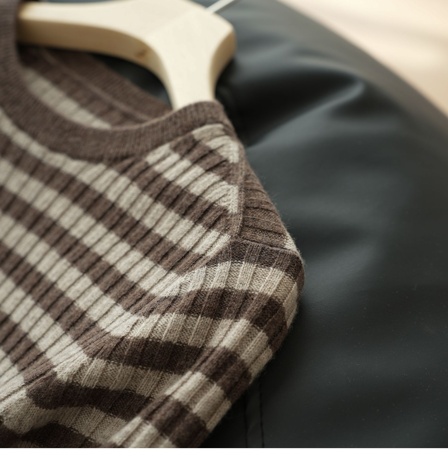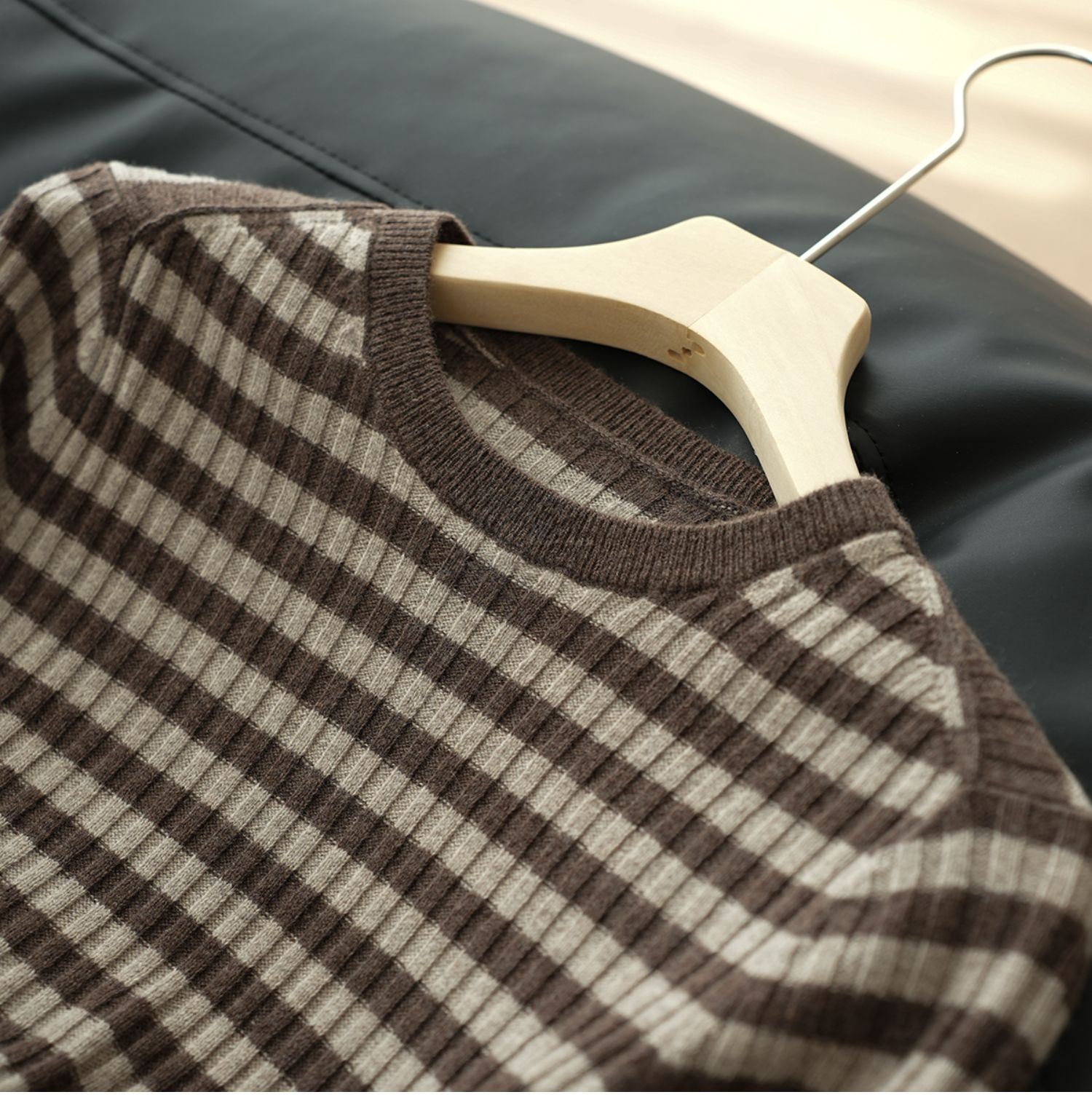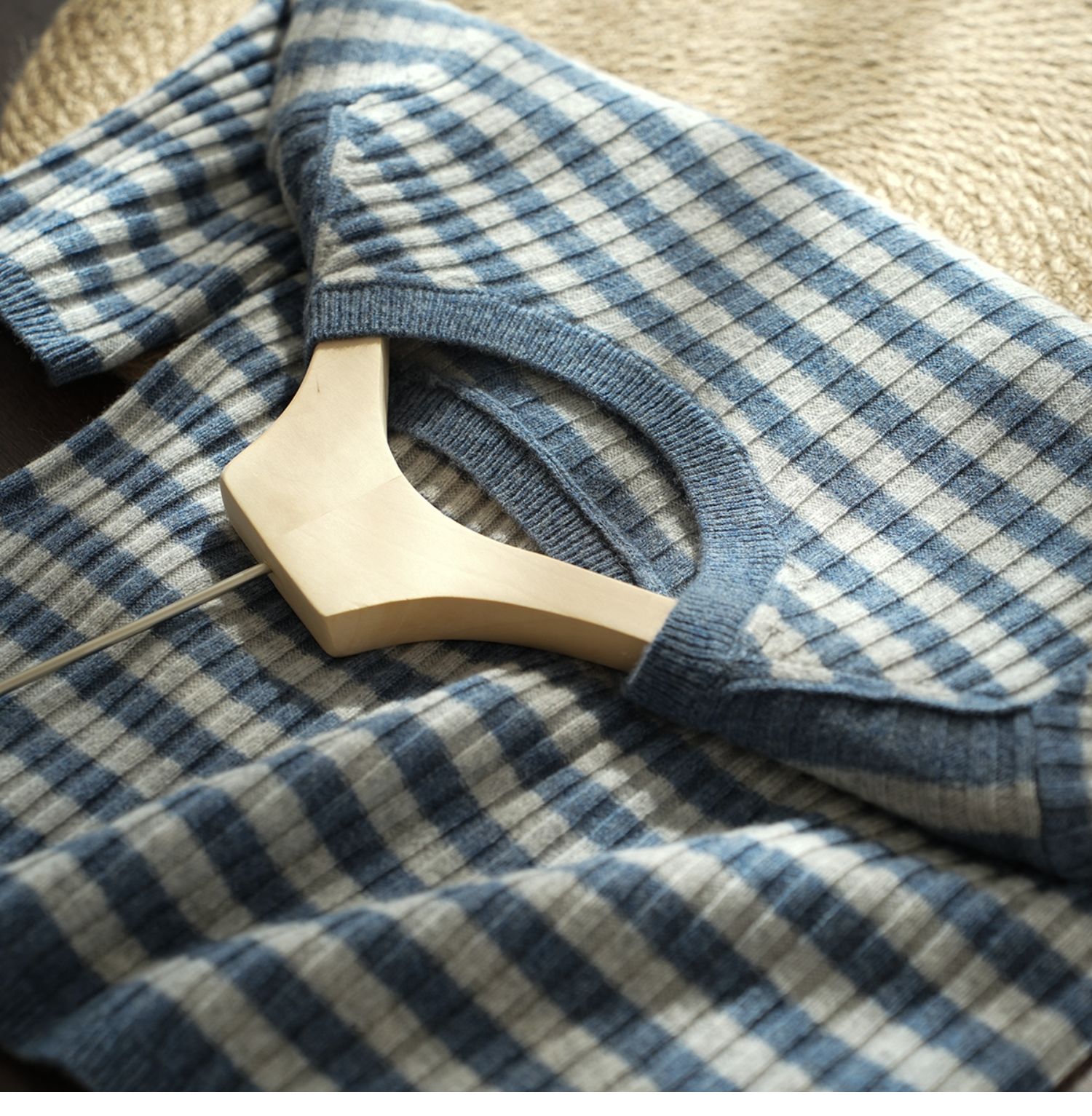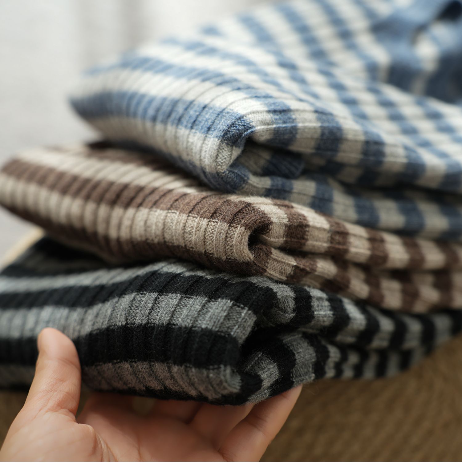 福利 無補 90羊毛10羊絨 女士條紋針織衫五分袖打底衫 春秋款