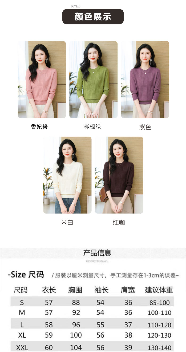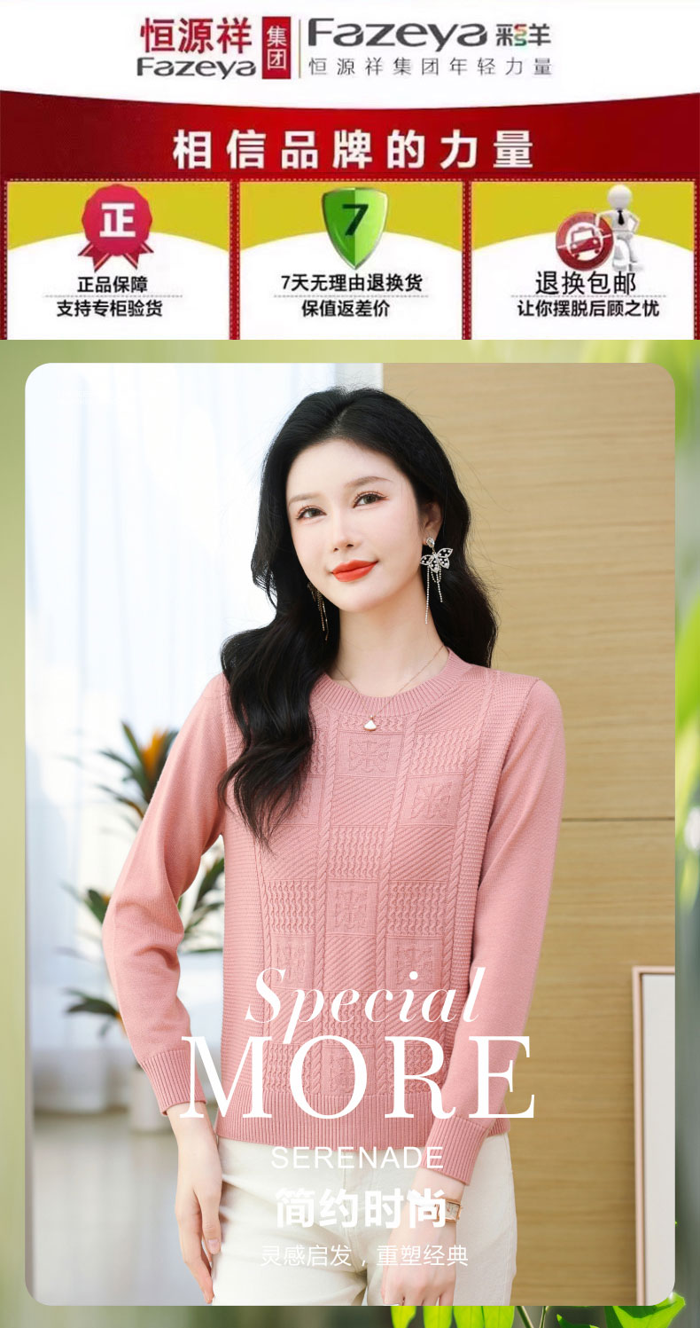 恒源祥彩羊羊毛衫女薄款春秋上衣長袖針織衫女2024新款圓領打底衫