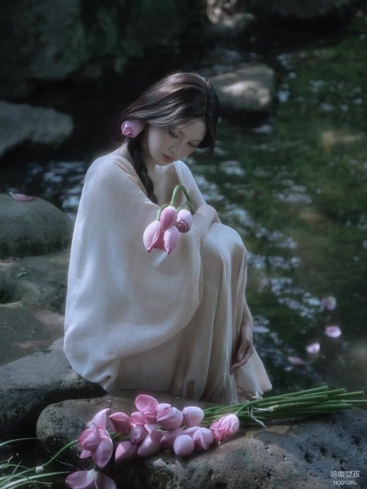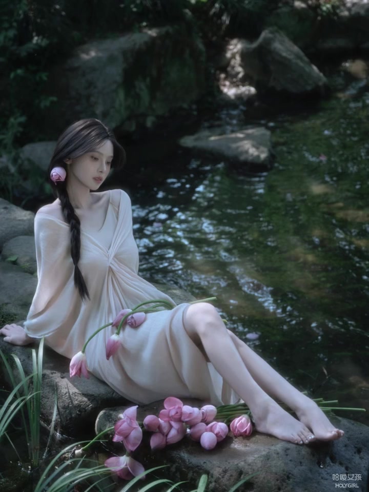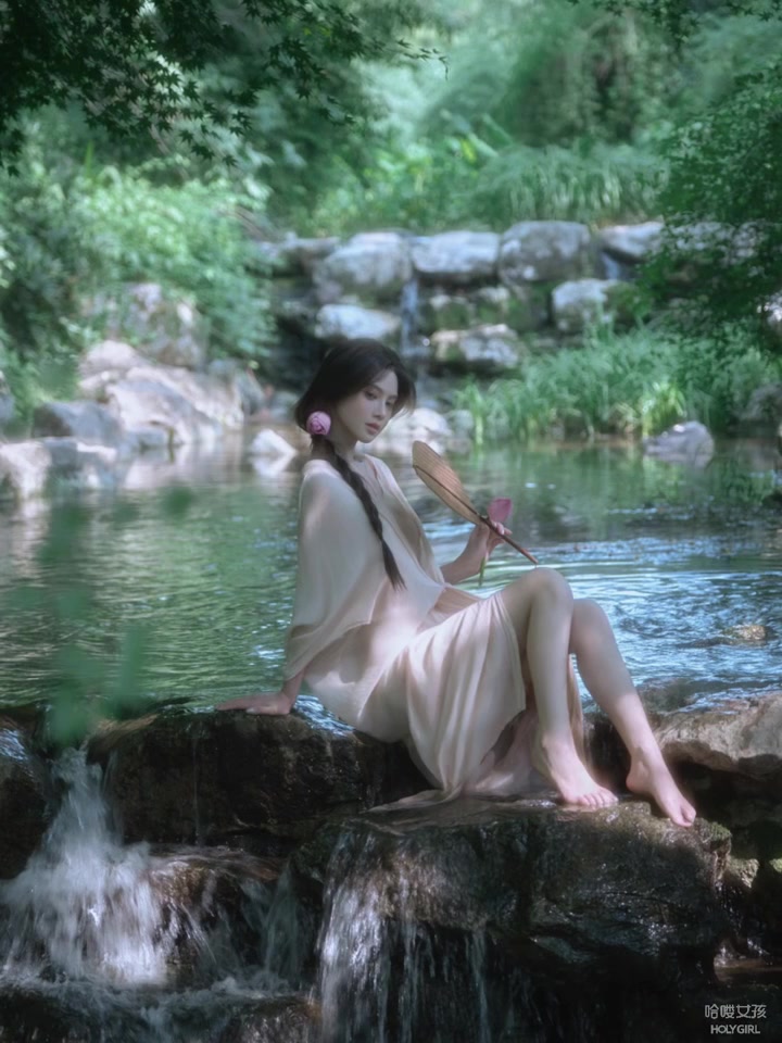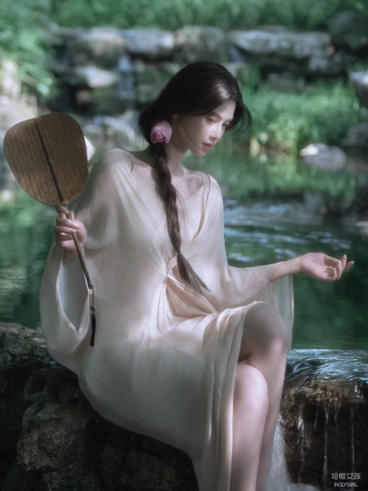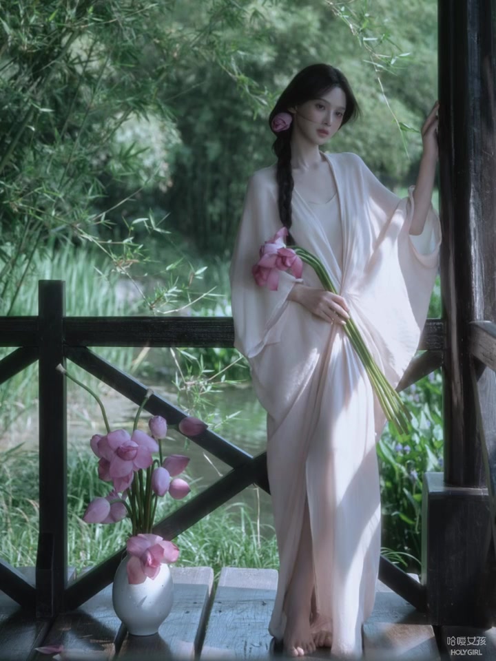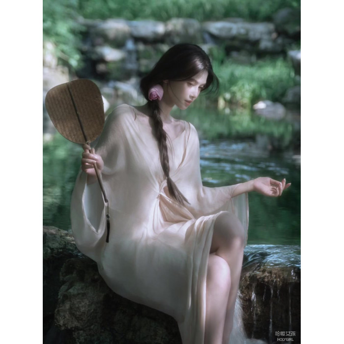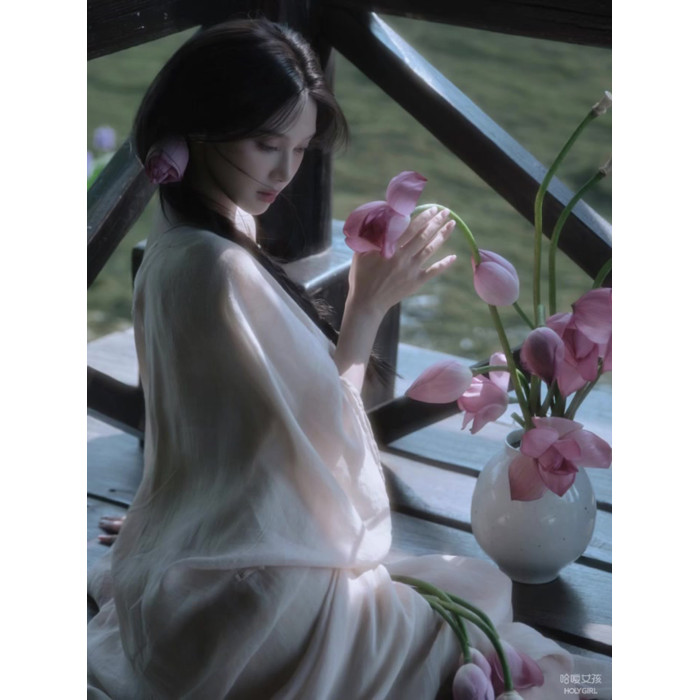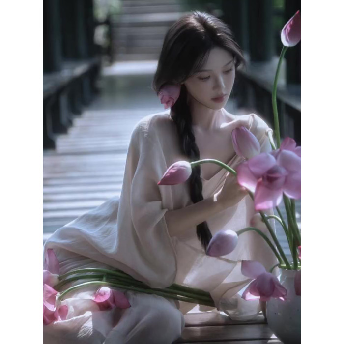 徐浪漫X 荷花拍照新中式禪意套裝苧麻連衣裙兩件清冷感裙子丁達爾