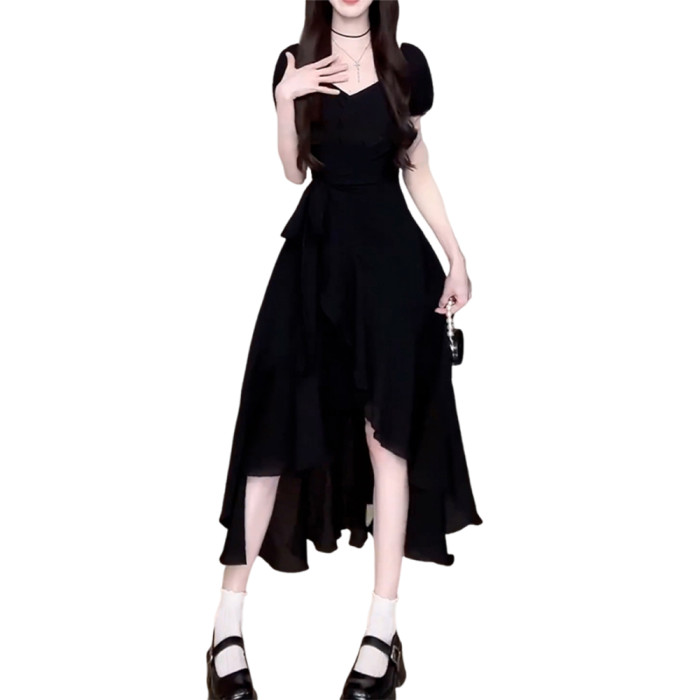【黑色】【高級感小衆不撞款/獨特漂亮掐腰裙/法式冷淡系海邊度假小個子簡單大方得體的/茶裡茶氣/微胖風情萬種/微胖mm巨顯瘦穿搭】