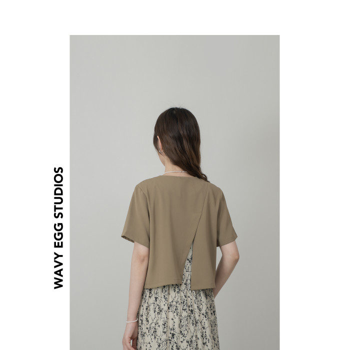 chunxili/春熙裡 短袖針織襯衫裙 直筒刺綉透氣舒適套頭連衣裙女