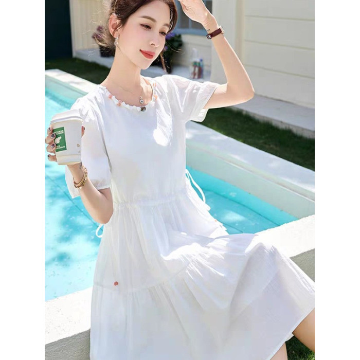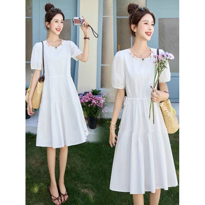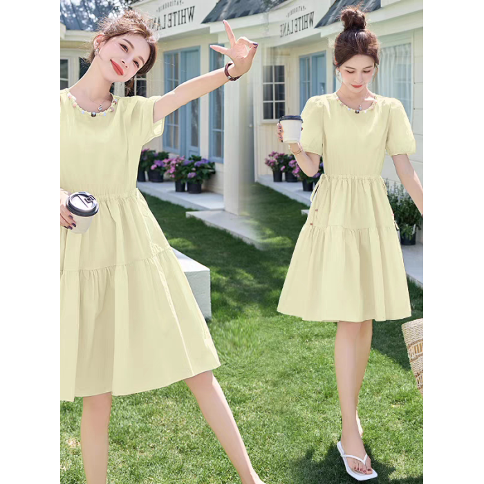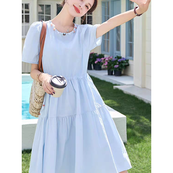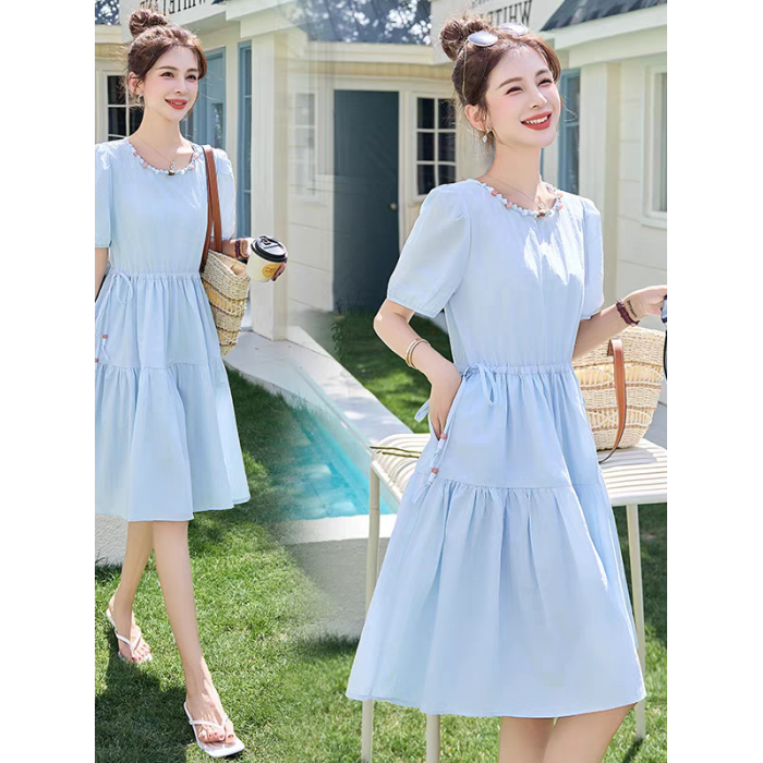 泡泡袖小個子連衣裙女夏2025新款高級感收腰顯瘦氣質法式洋氣裙子