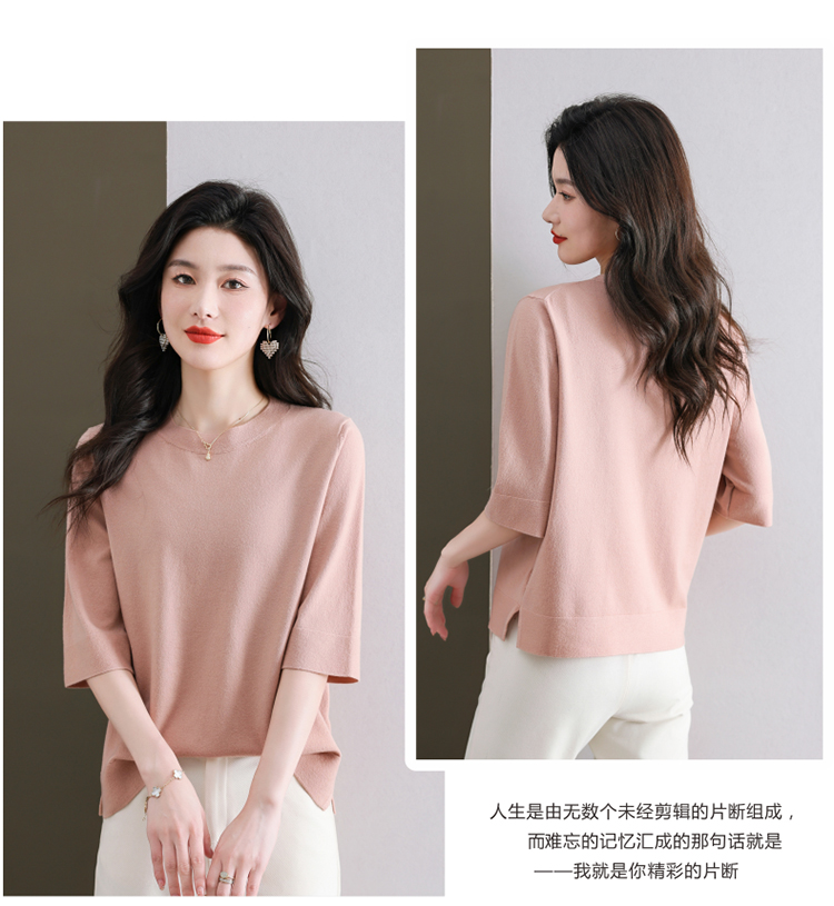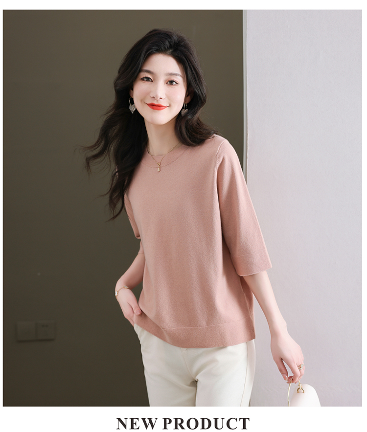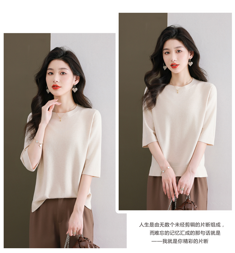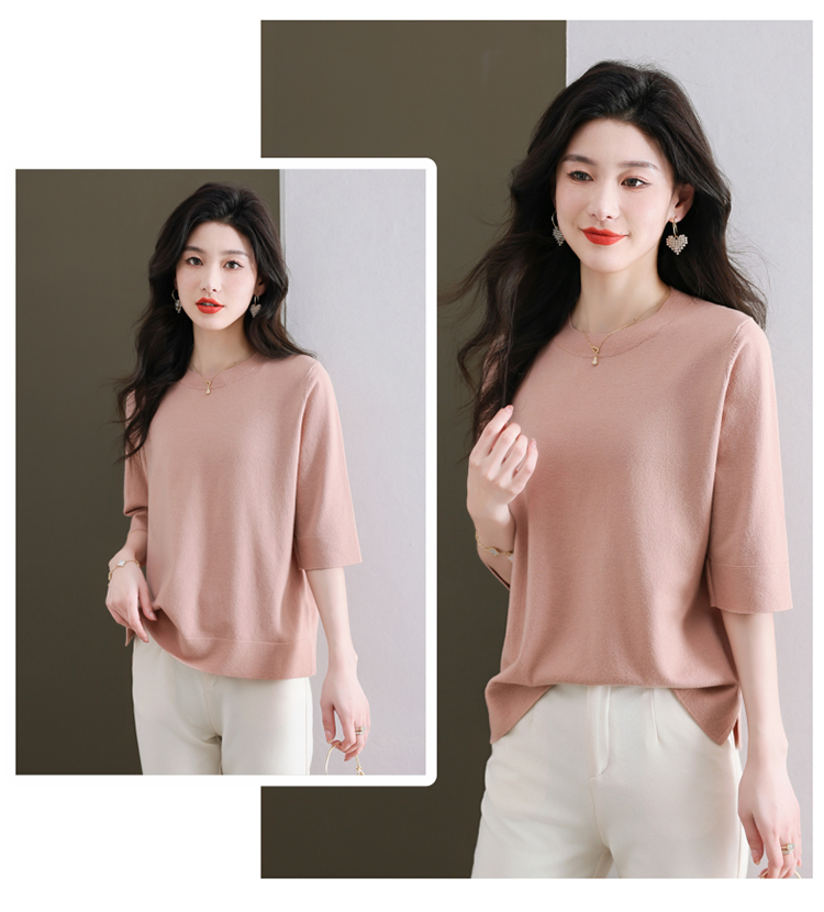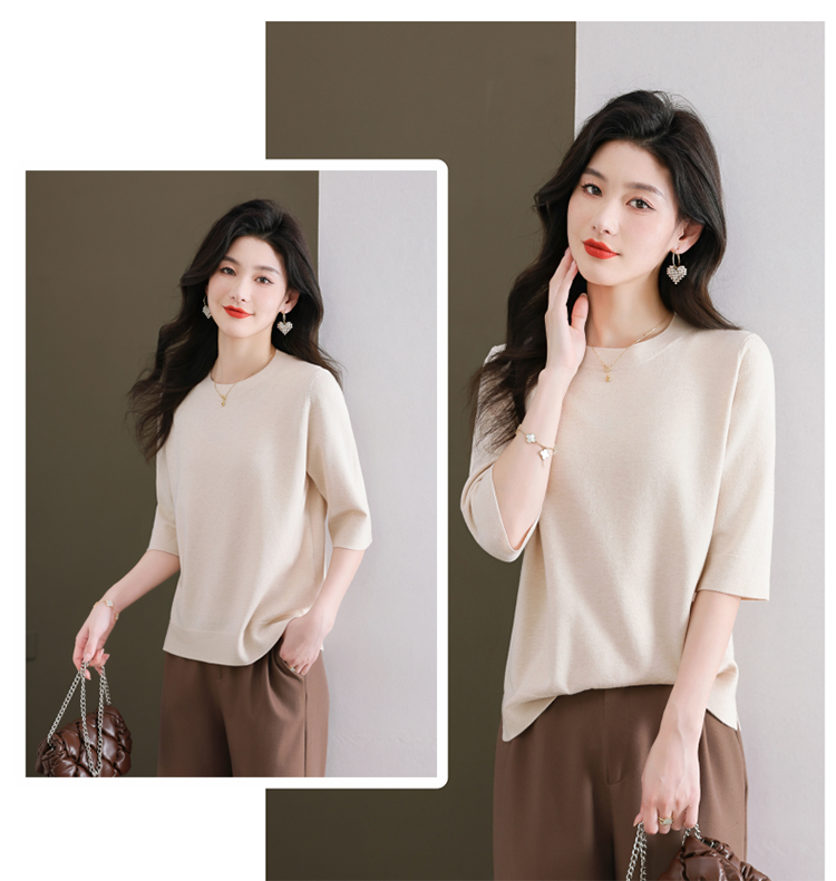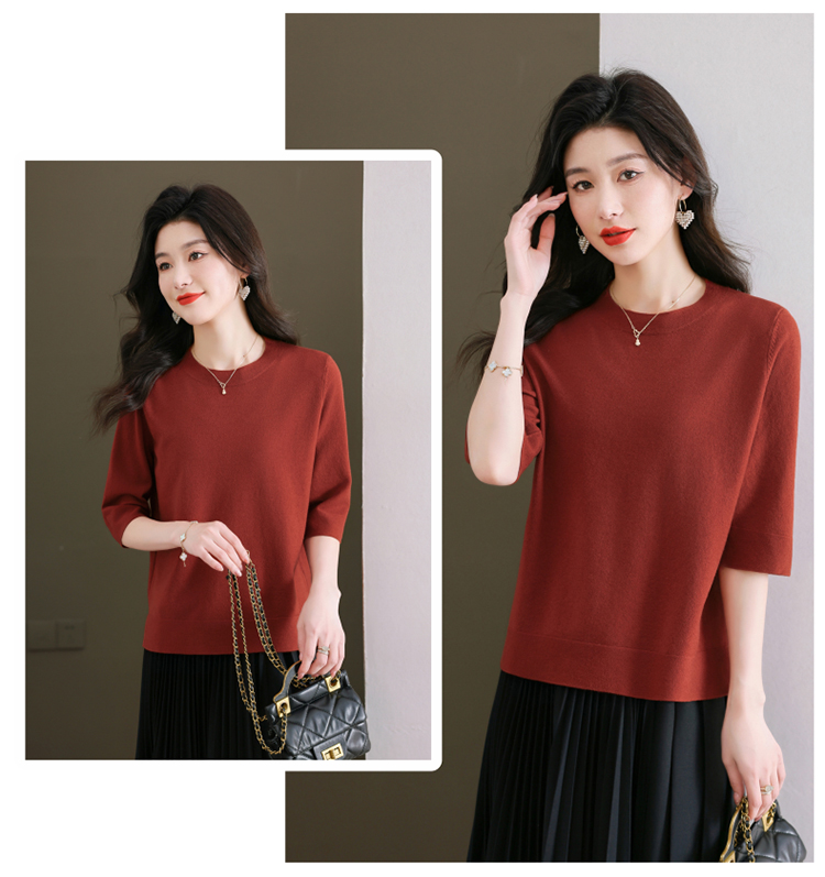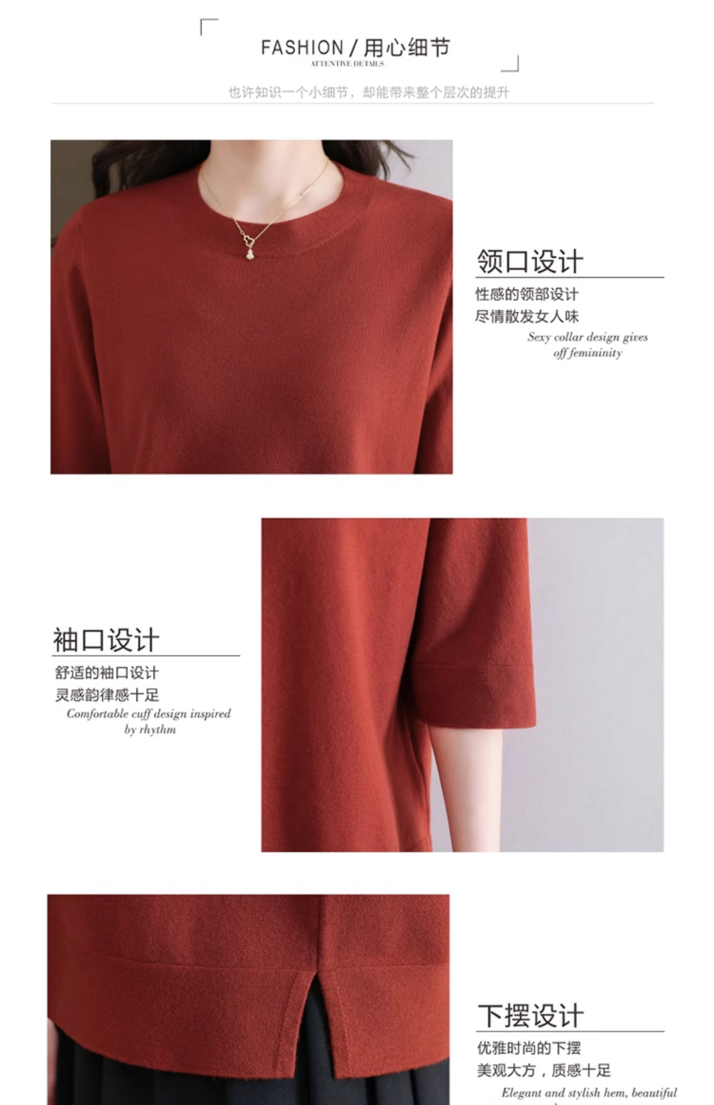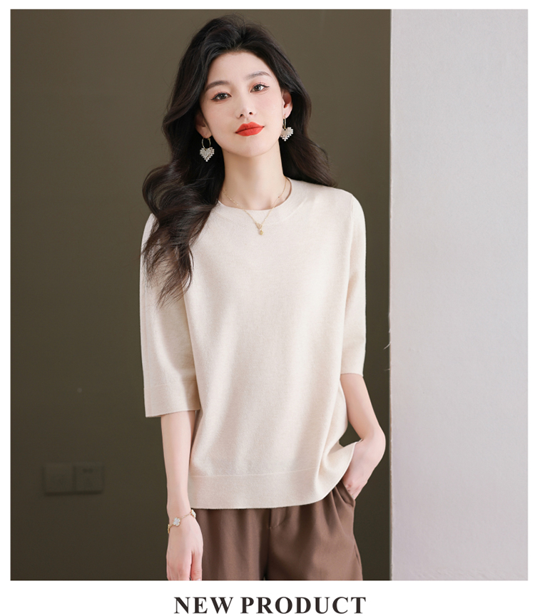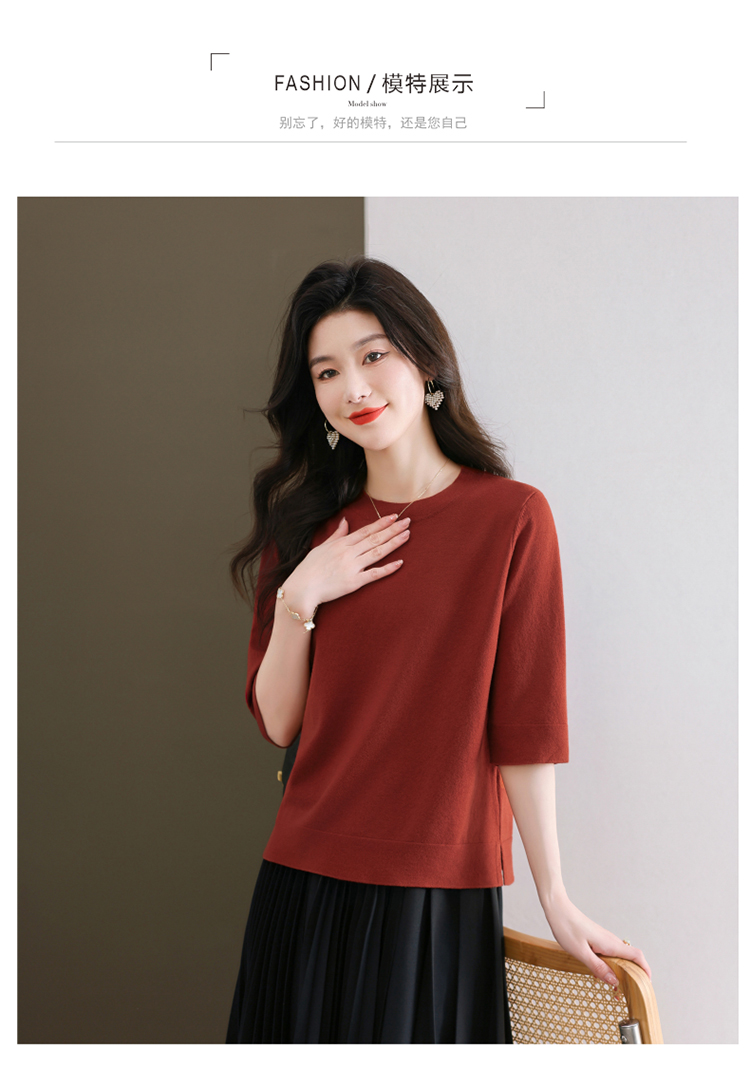 中年媽媽純色中袖羊毛針織上衣寬松大碼顯瘦羊毛衫薄款洋氣打底衫