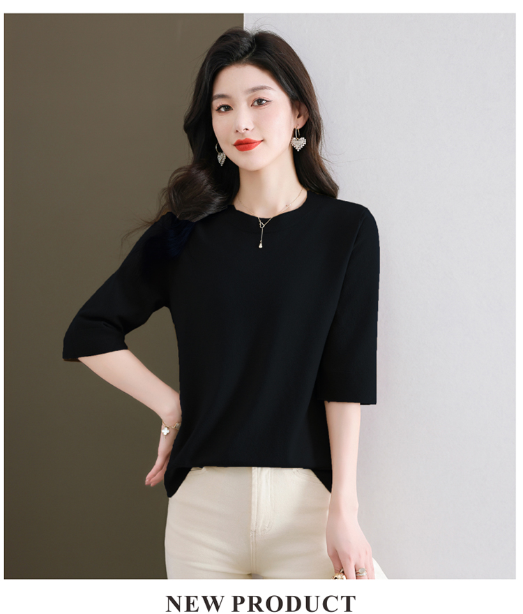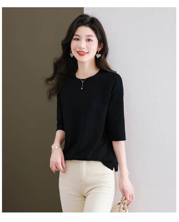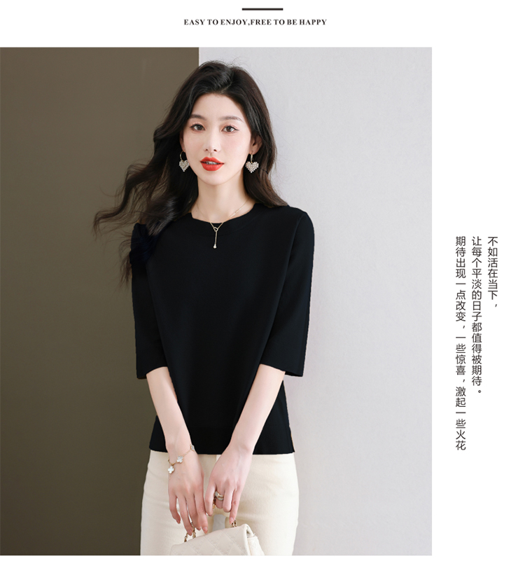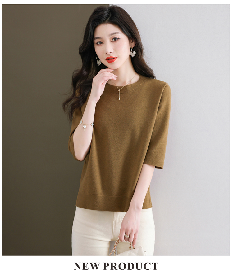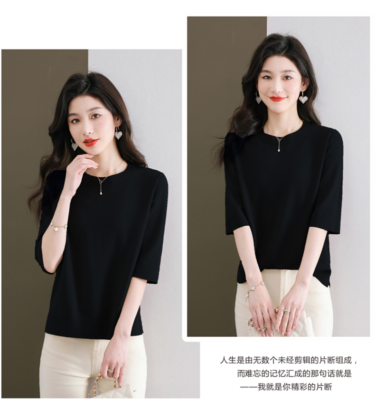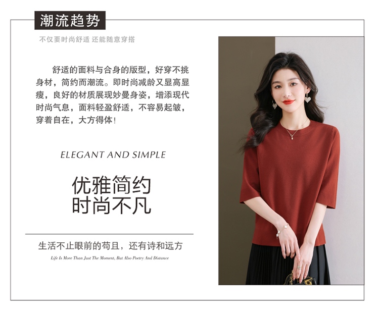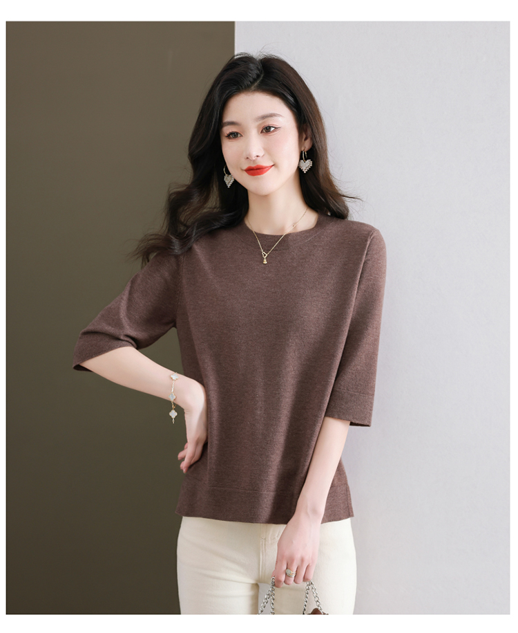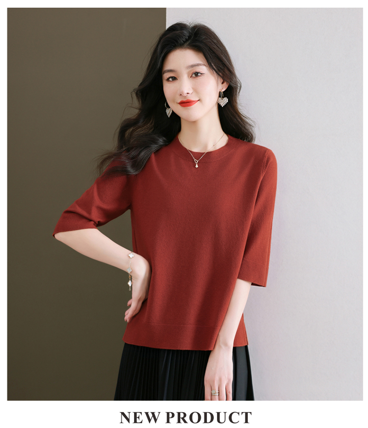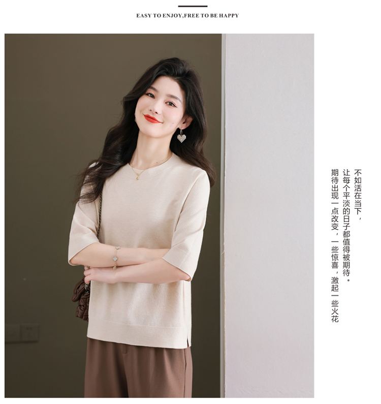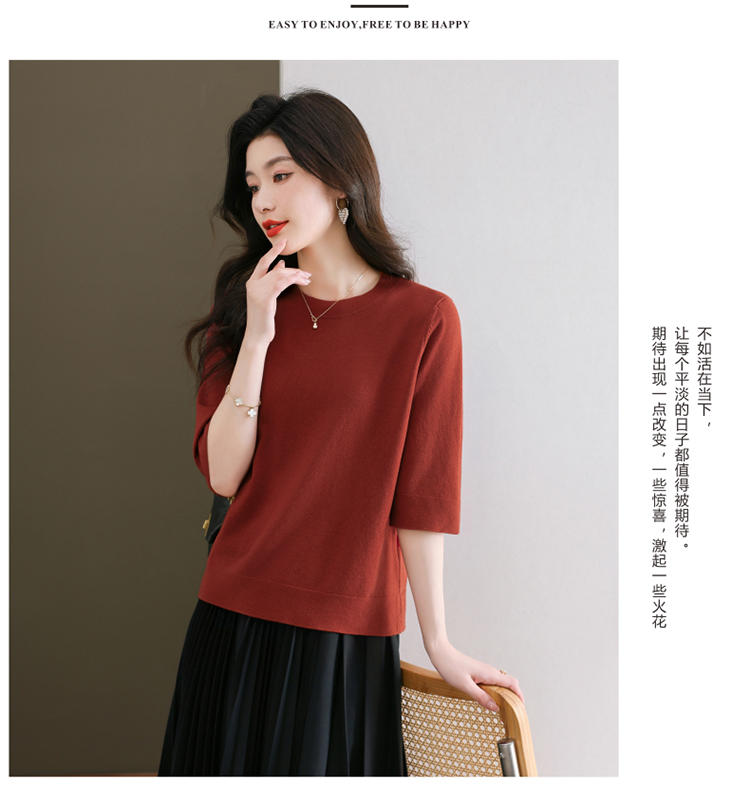中年媽媽純色中袖羊毛針織上衣寬松大碼顯瘦羊毛衫薄款洋氣打底衫