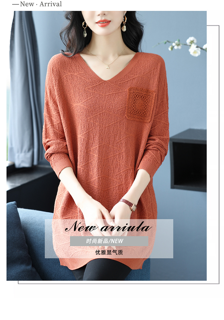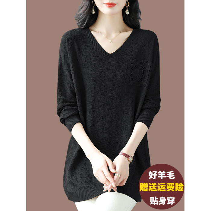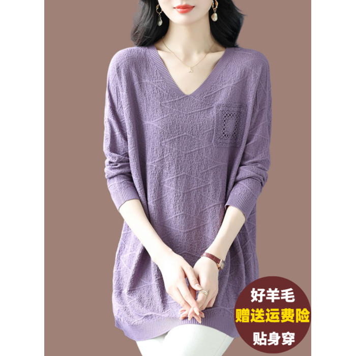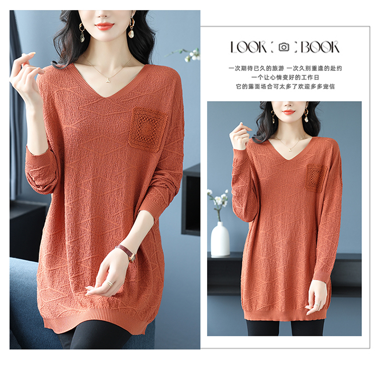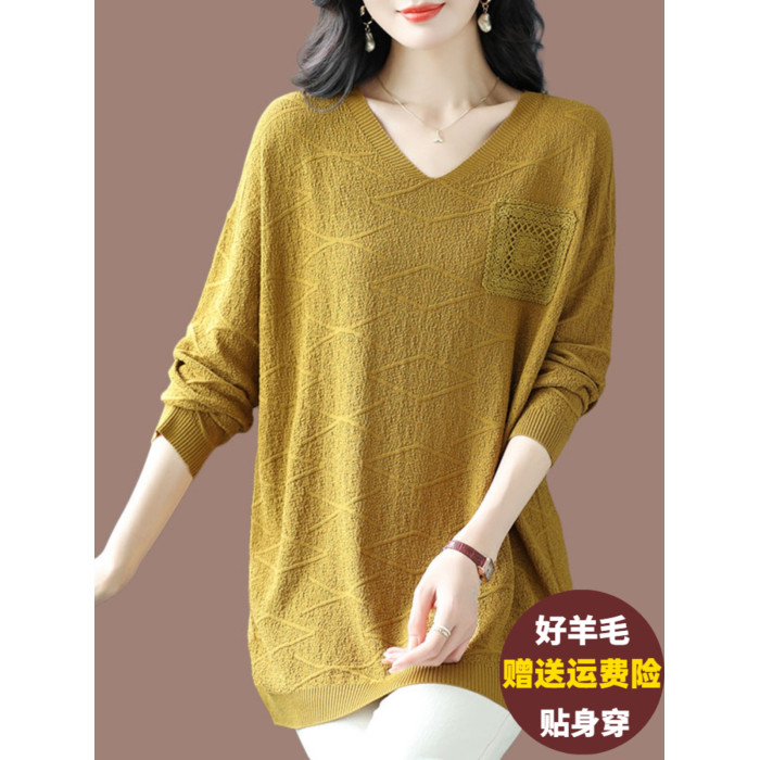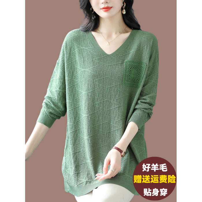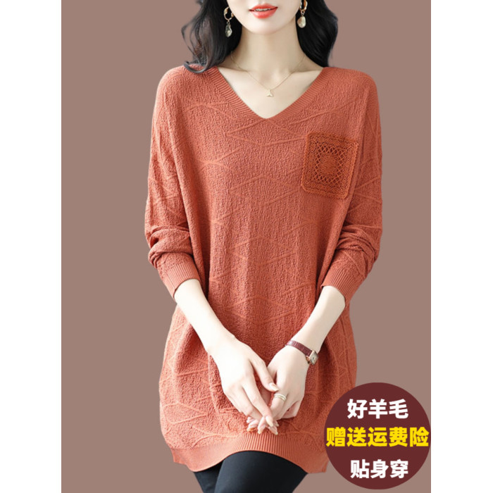 胖mm特大碼v領針織衫女寬松中長款遮肚薄毛衣洋氣顯瘦羊毛打底衫