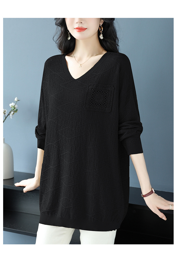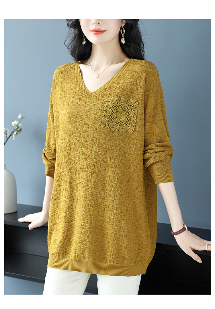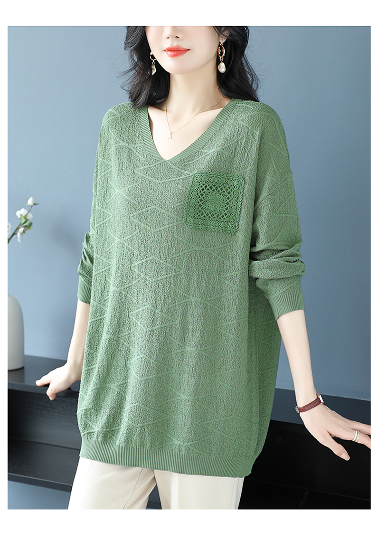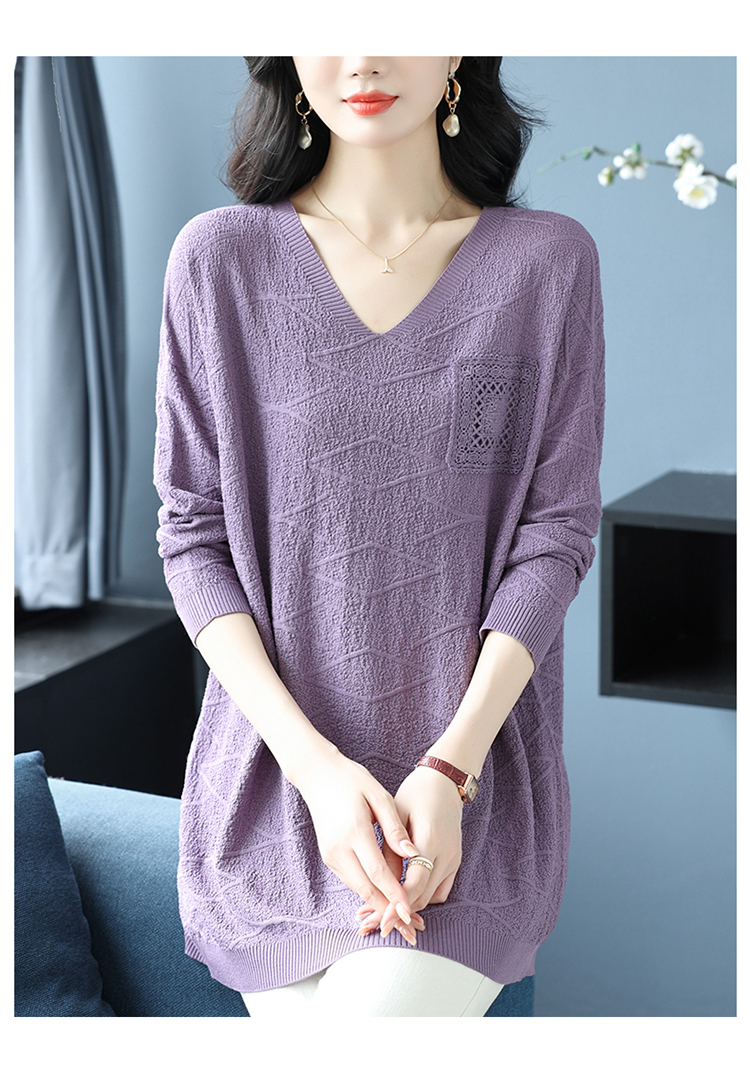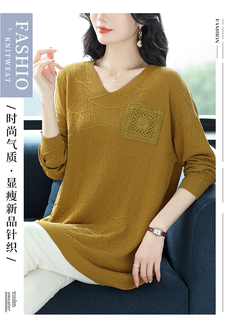 胖mm特大碼v領針織衫女寬松中長款遮肚薄毛衣洋氣顯瘦羊毛打底衫