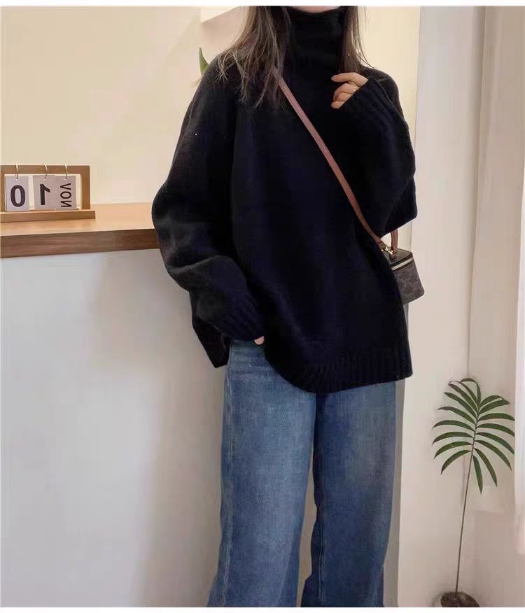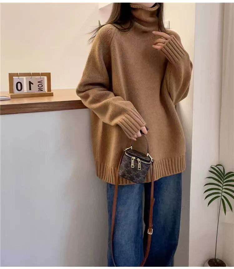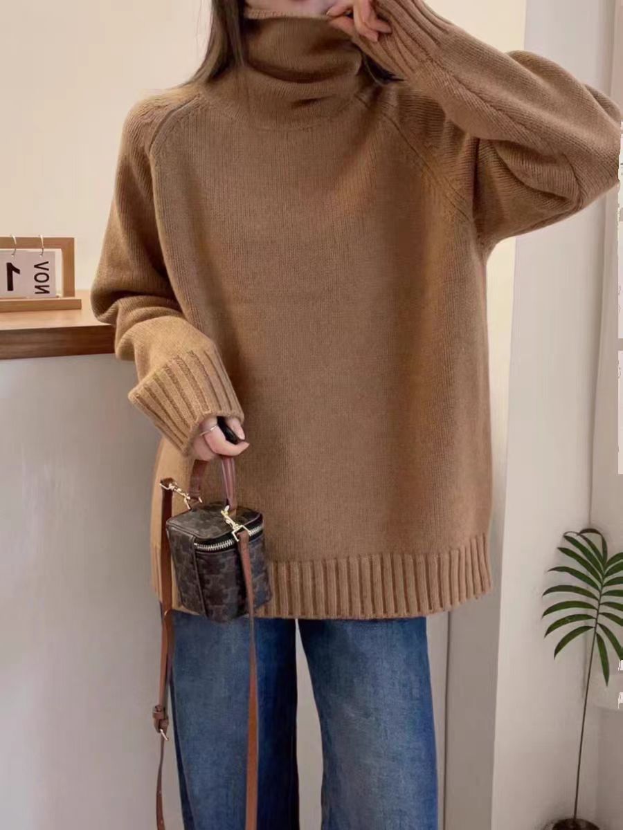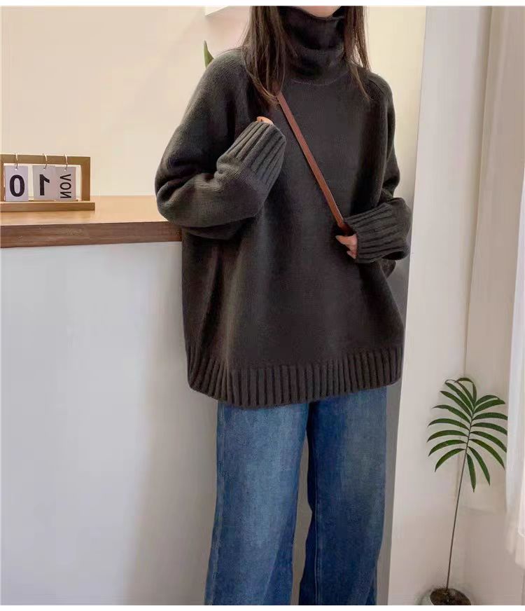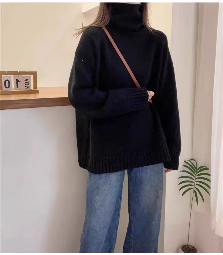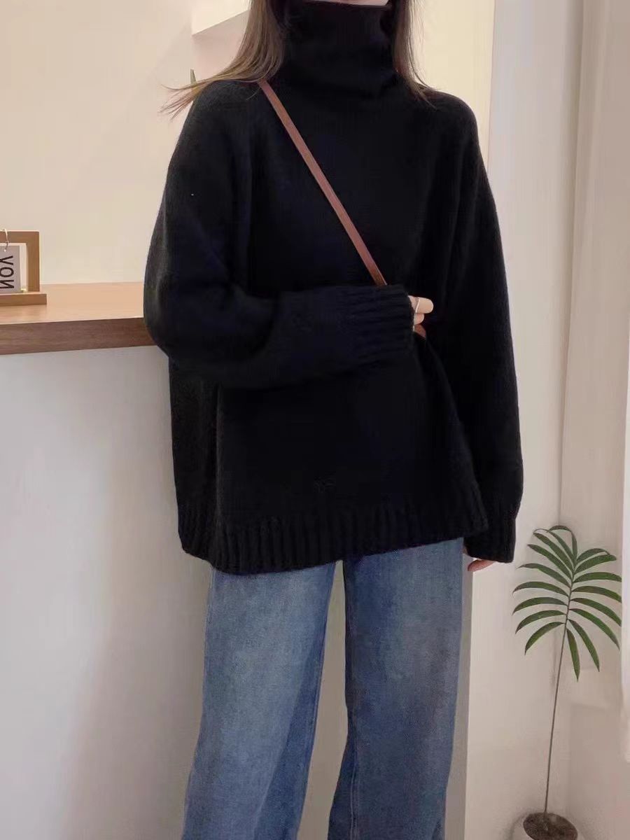 堆堆領寬松慵懶長袖加厚保暖羊絨毛衣女秋冬新款羊毛針織打底衫潮