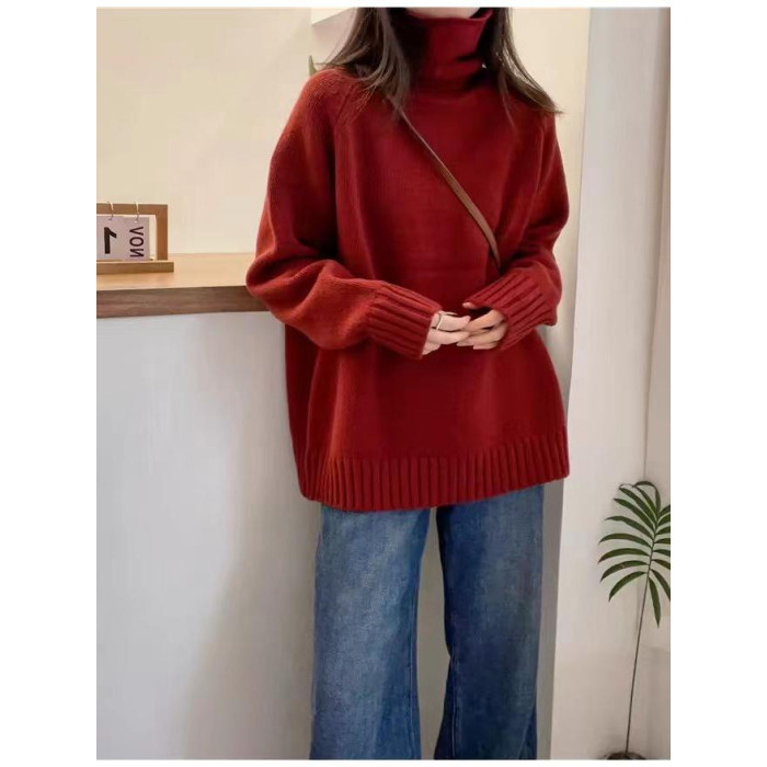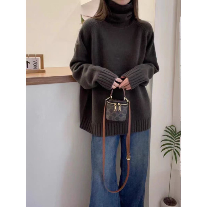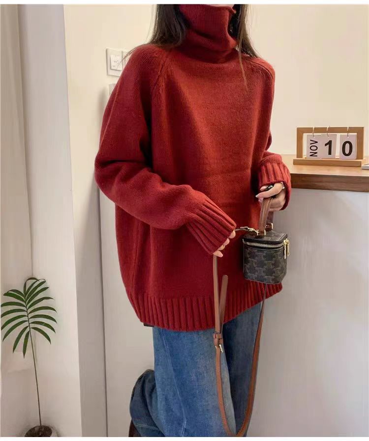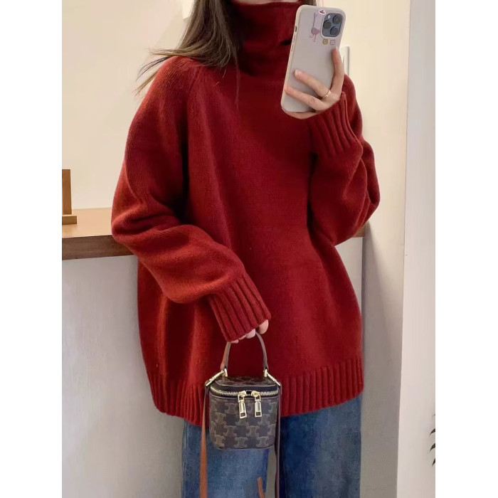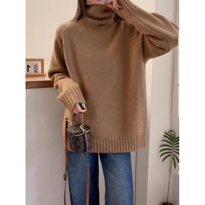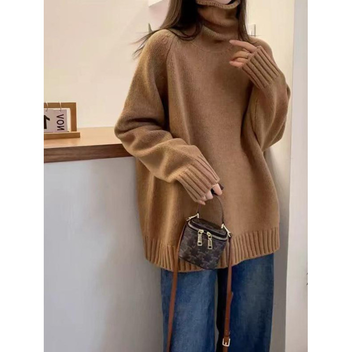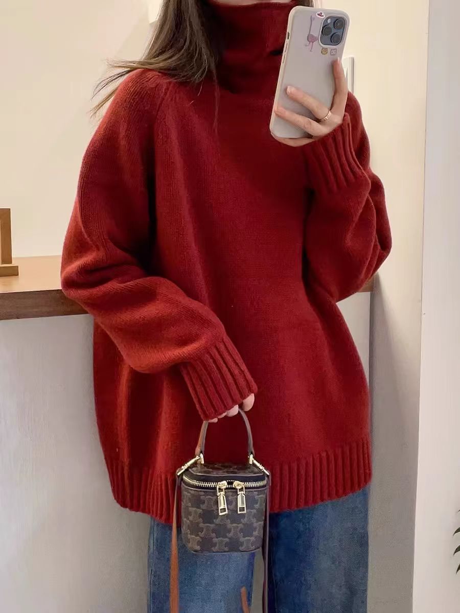 堆堆領寬松慵懶長袖加厚保暖羊絨毛衣女秋冬新款羊毛針織打底衫潮