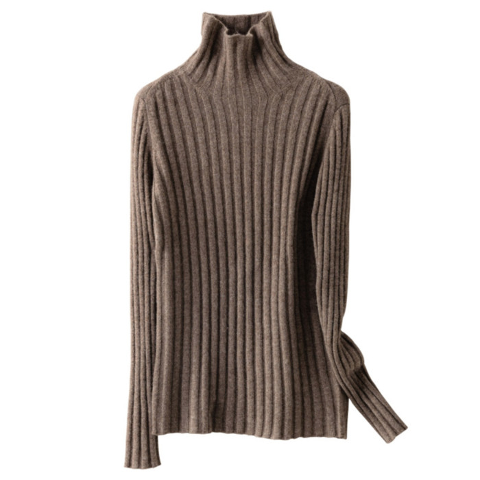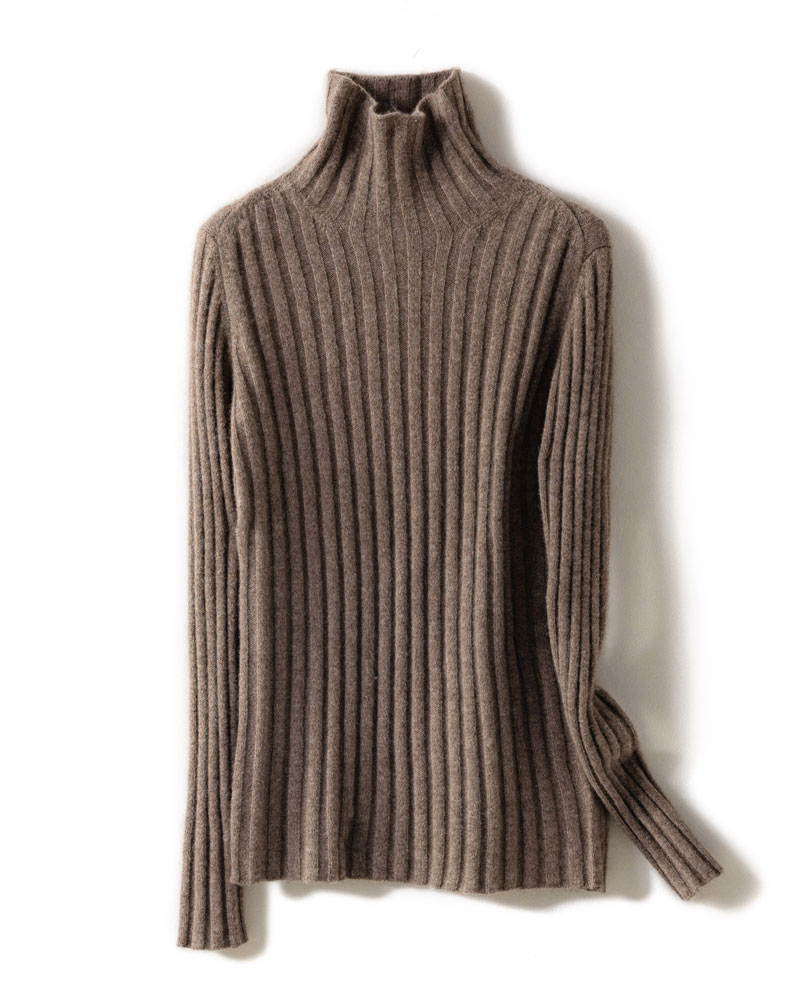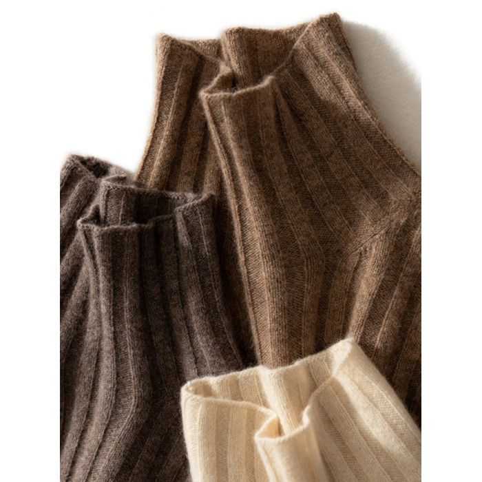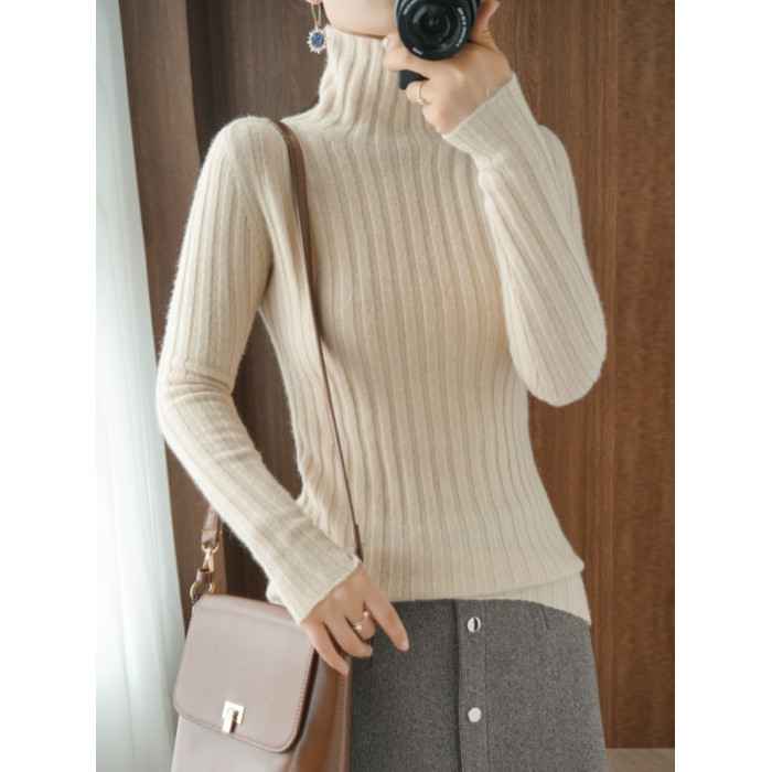 新款高領羊絨衫女短款套頭毛衣純色羊毛針織打底衫秋冬