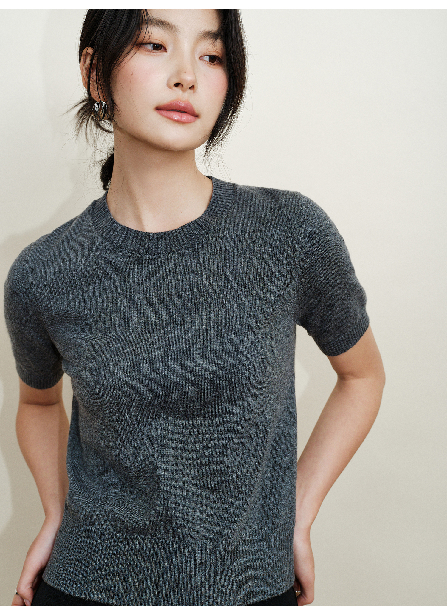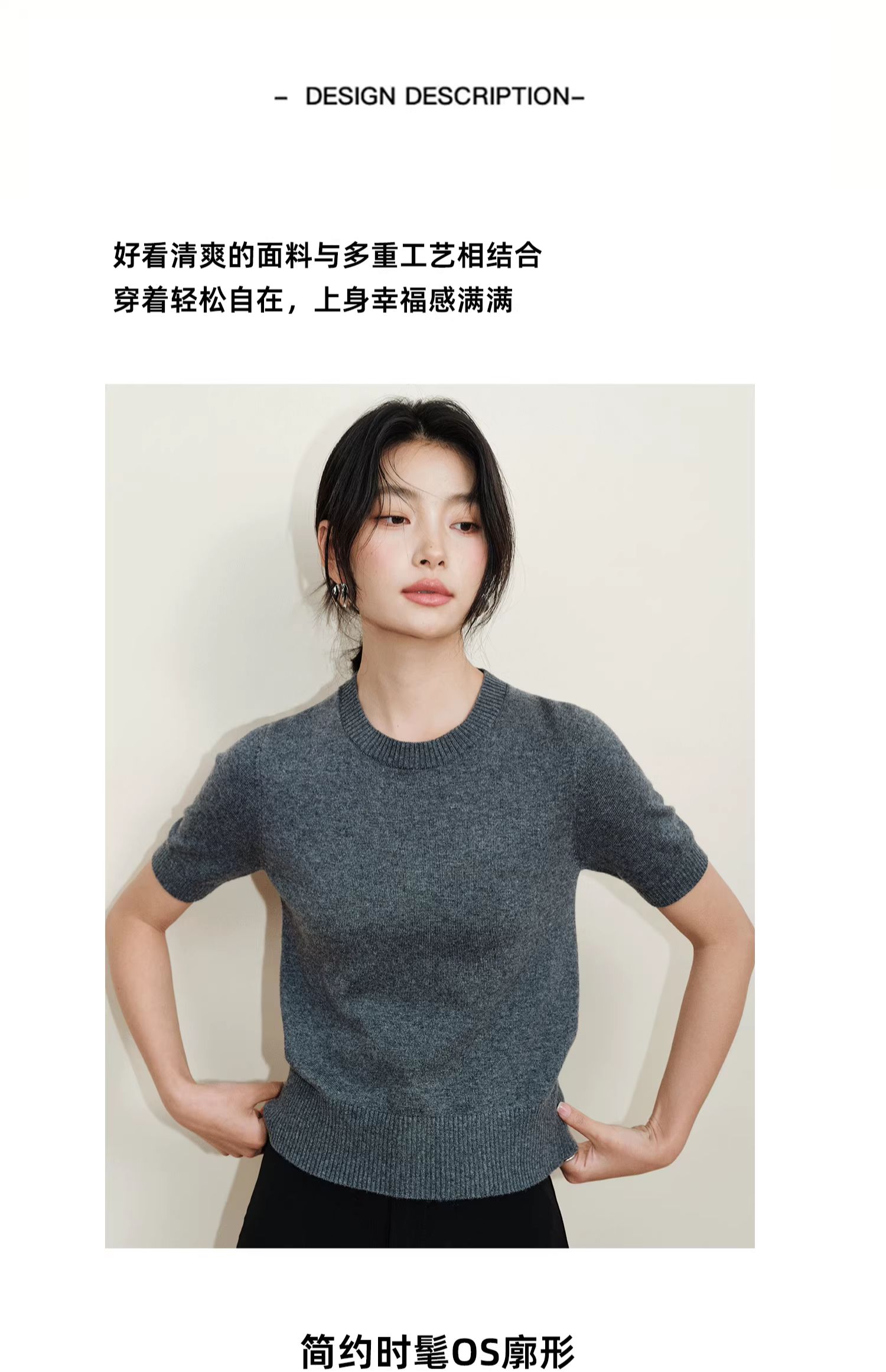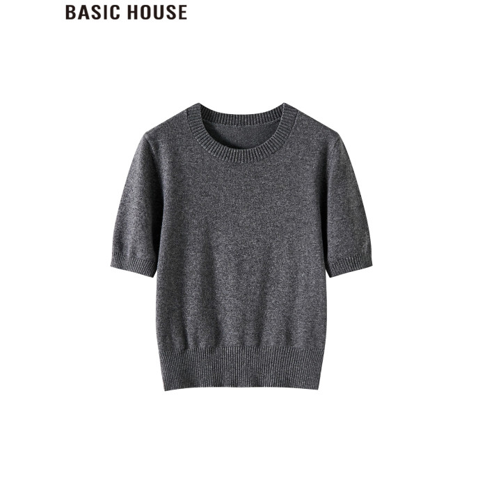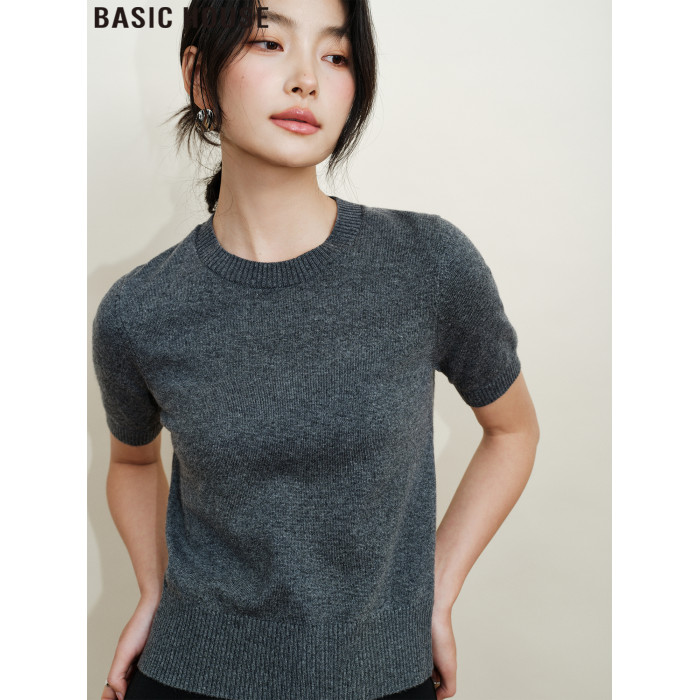 Basic House/百家好百搭軟糯圓領短袖針織衫短款內搭打底衫女秋季
