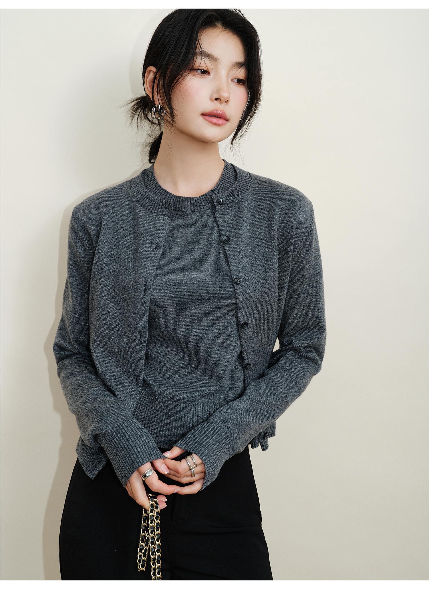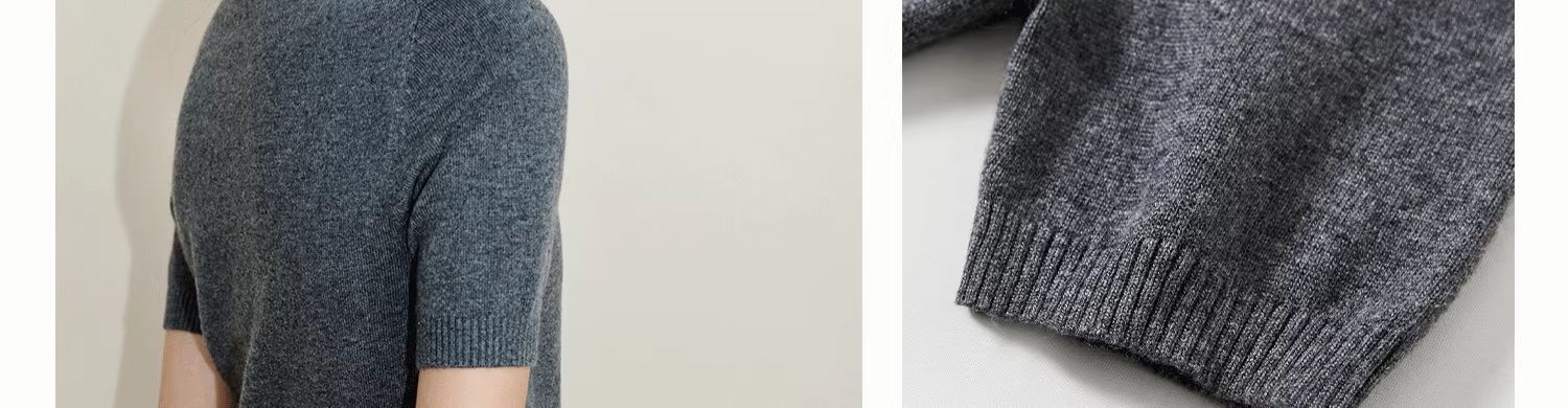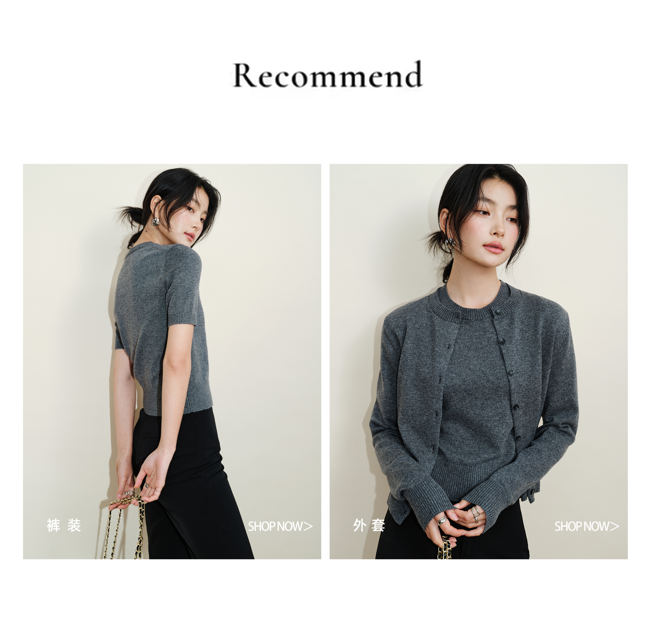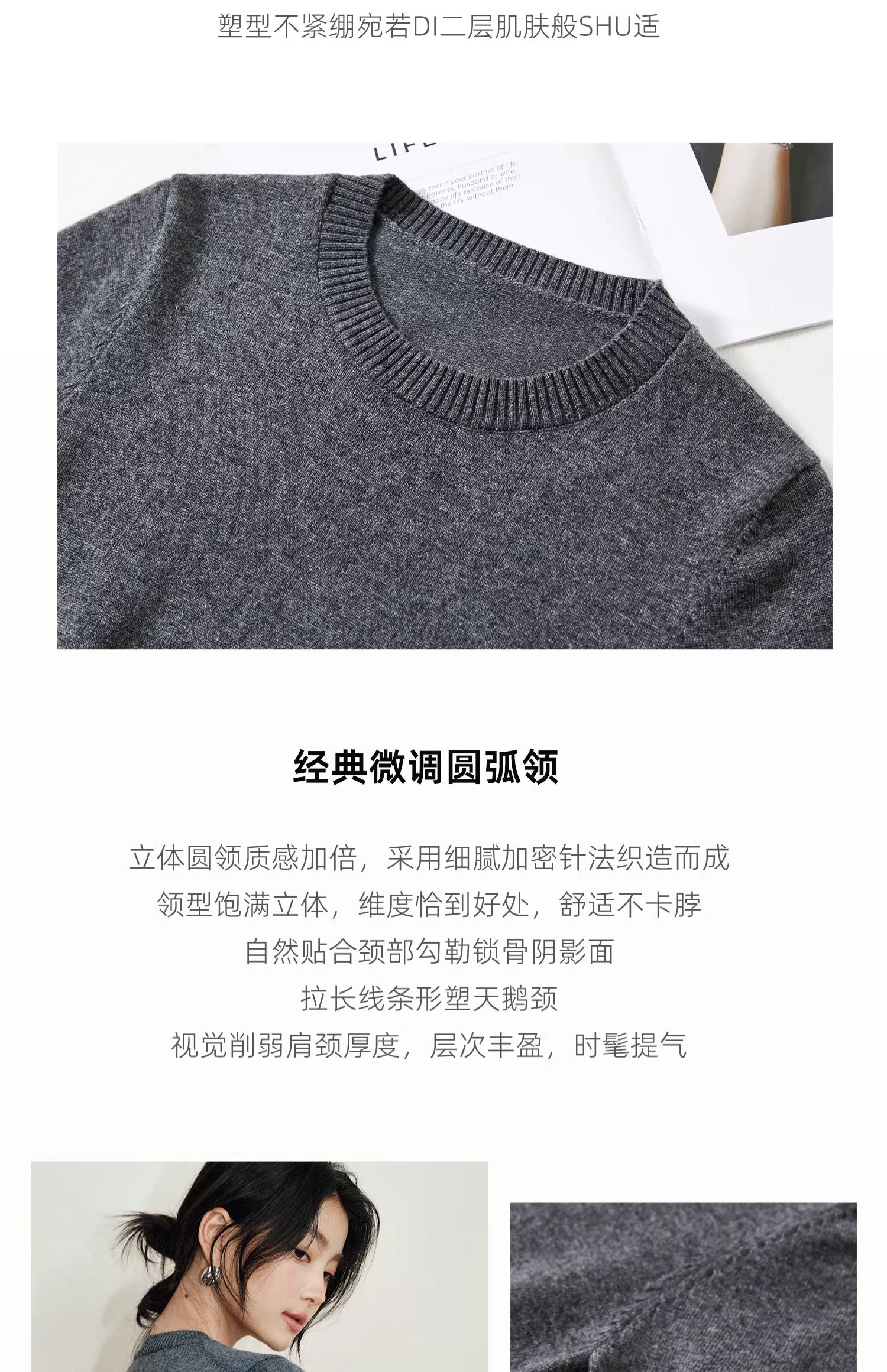Basic House/百家好百搭軟糯圓領短袖針織衫短款內搭打底衫女秋季