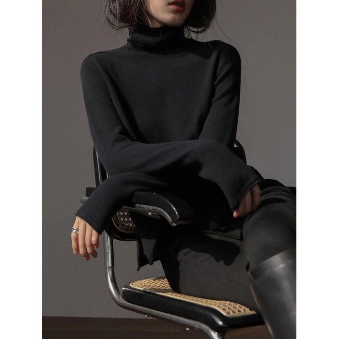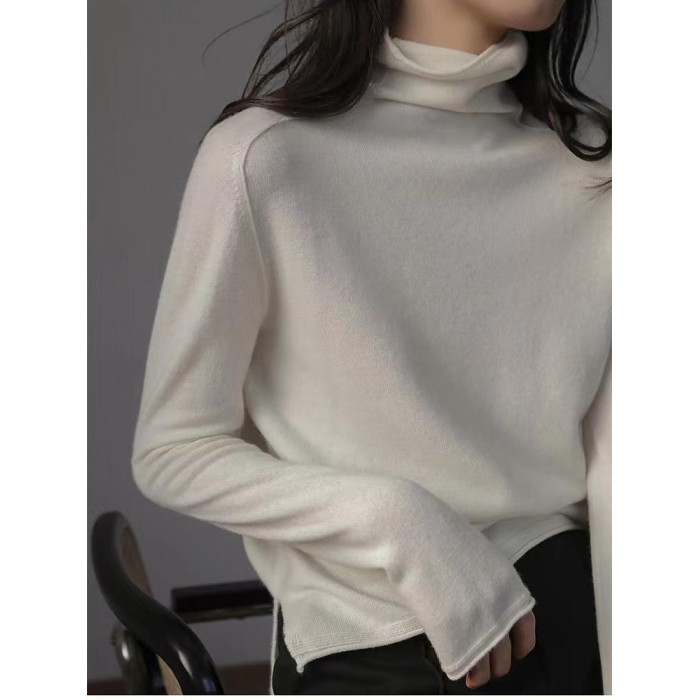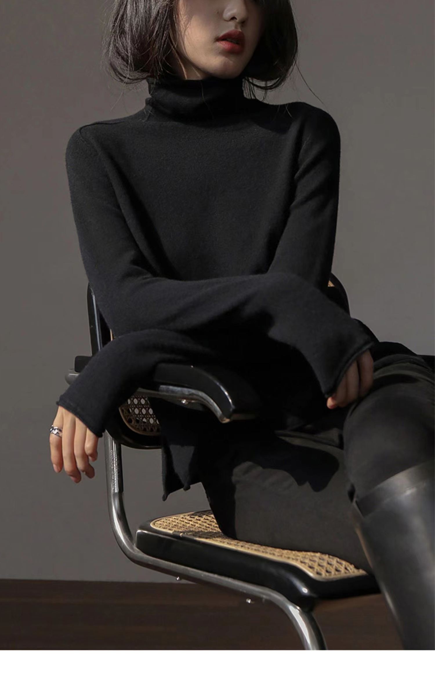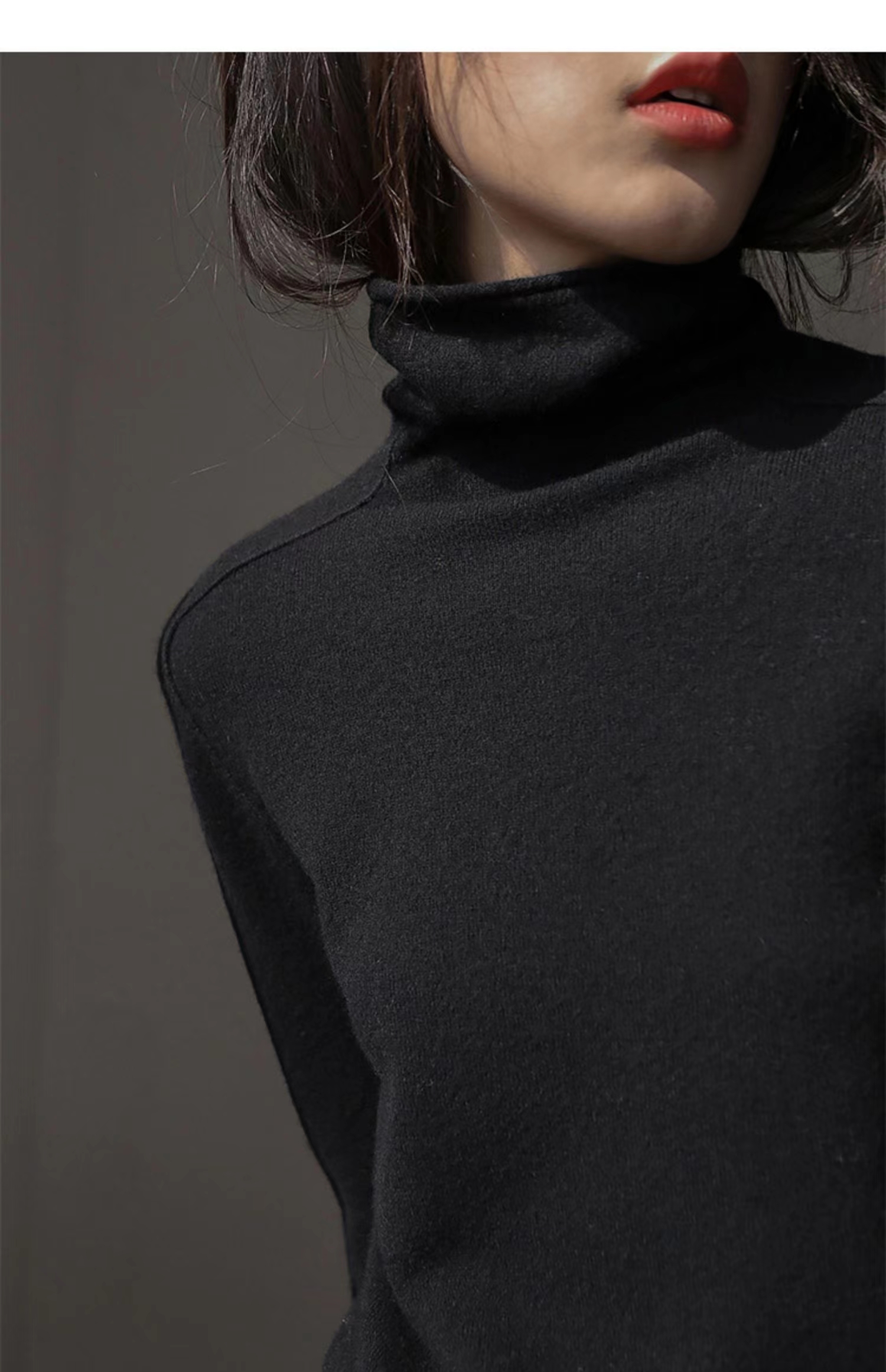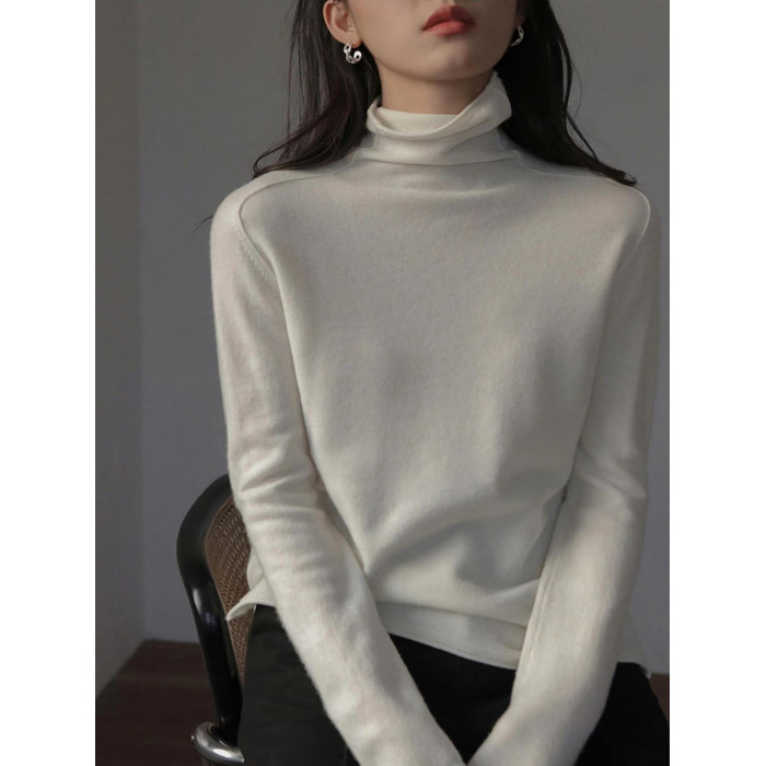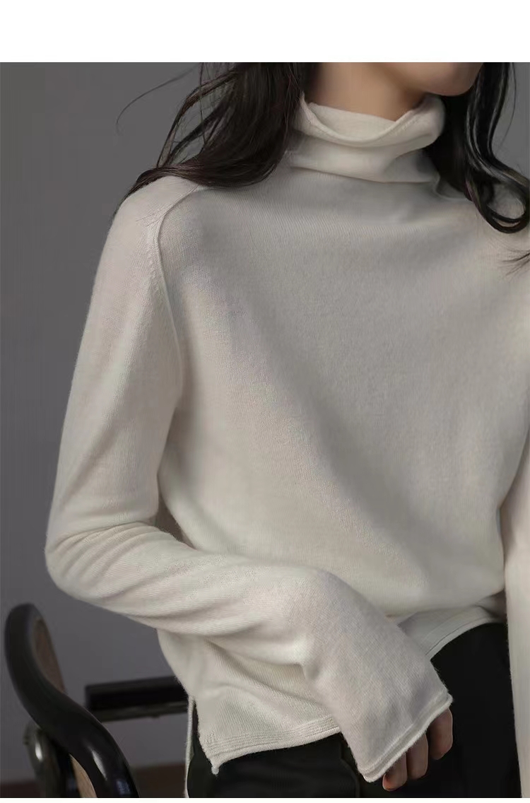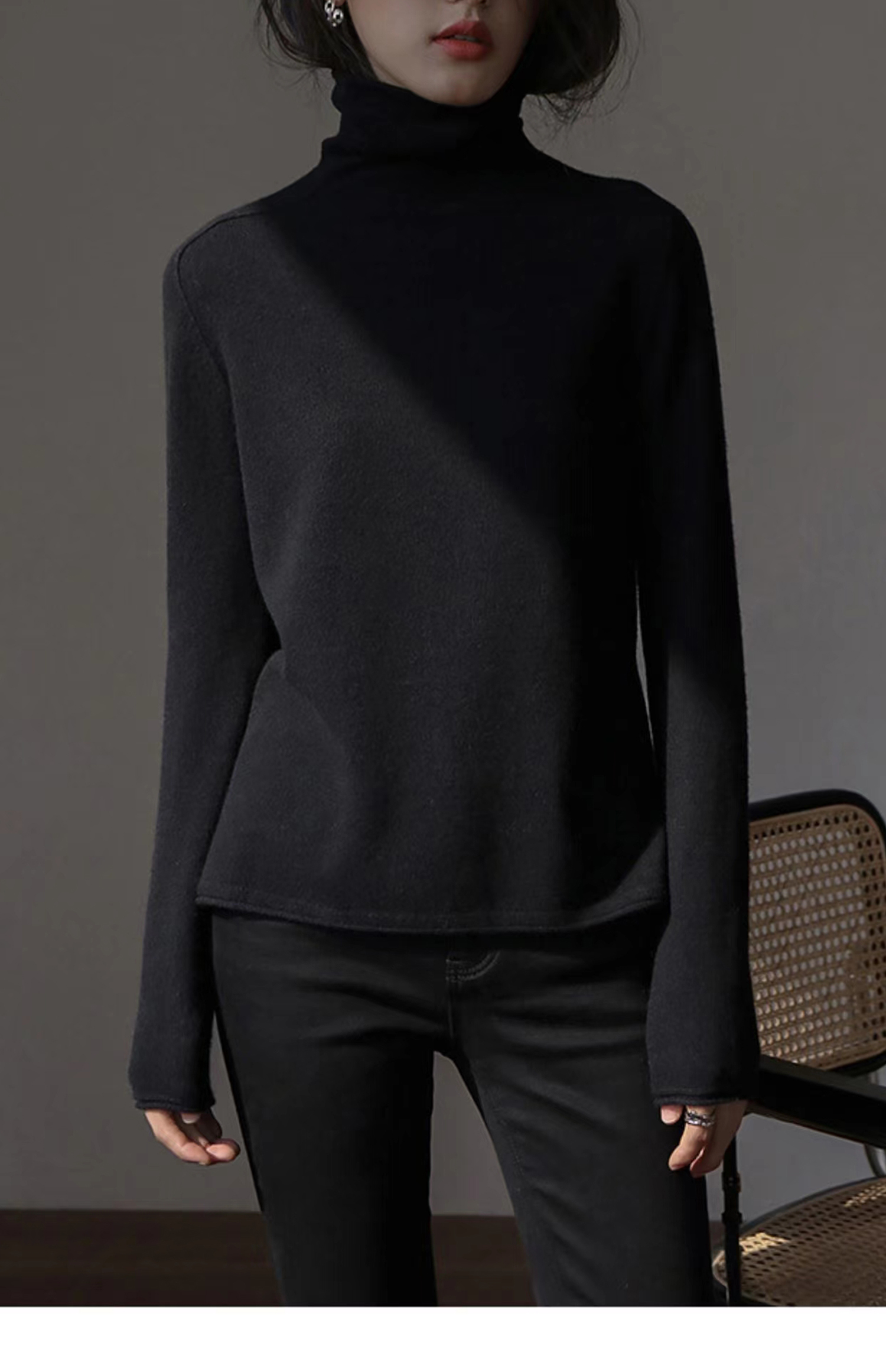 內搭慵懶百搭純色羊毛針織打底衫女秋冬新款長袖堆堆領羊絨毛衣潮