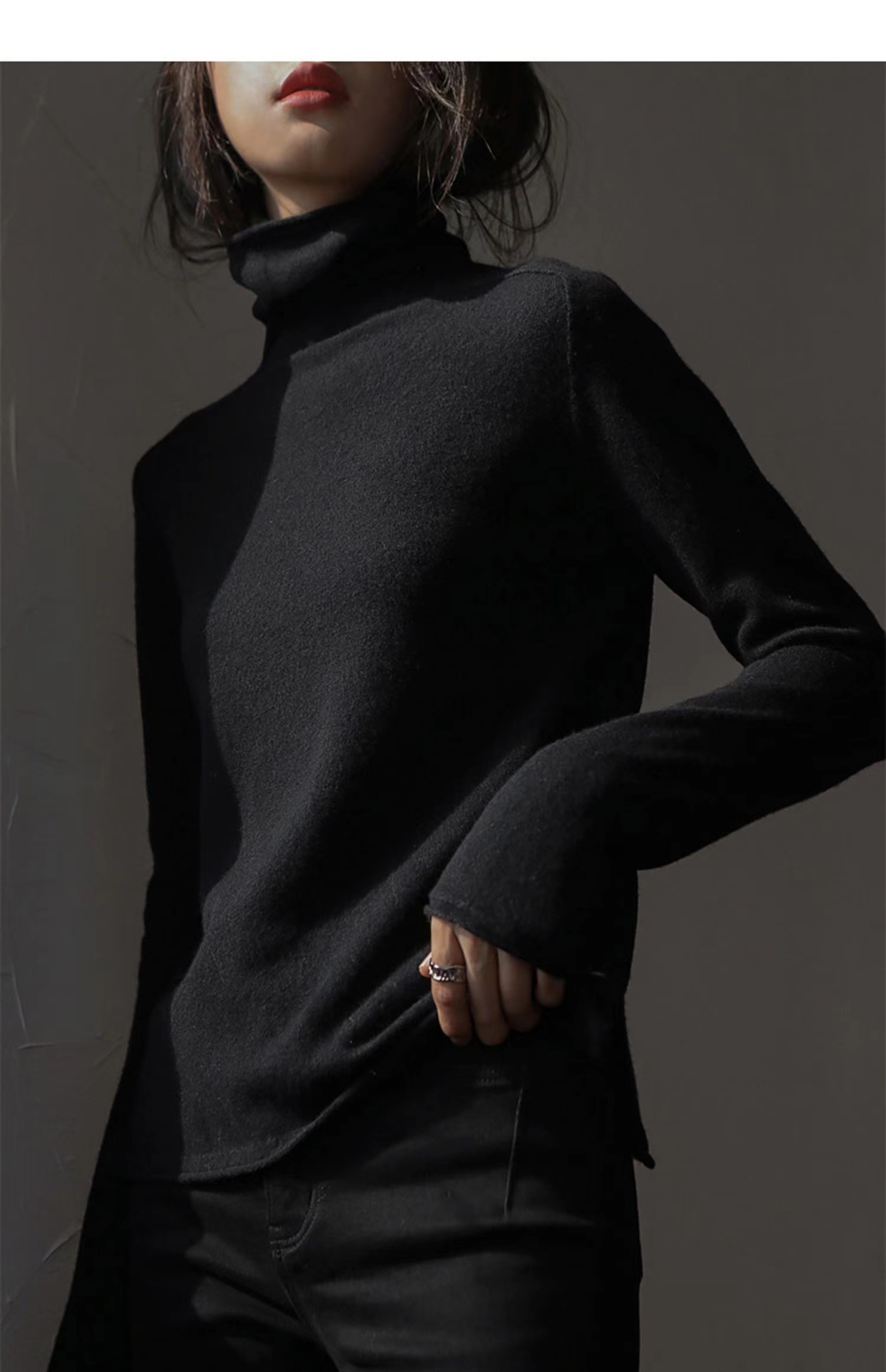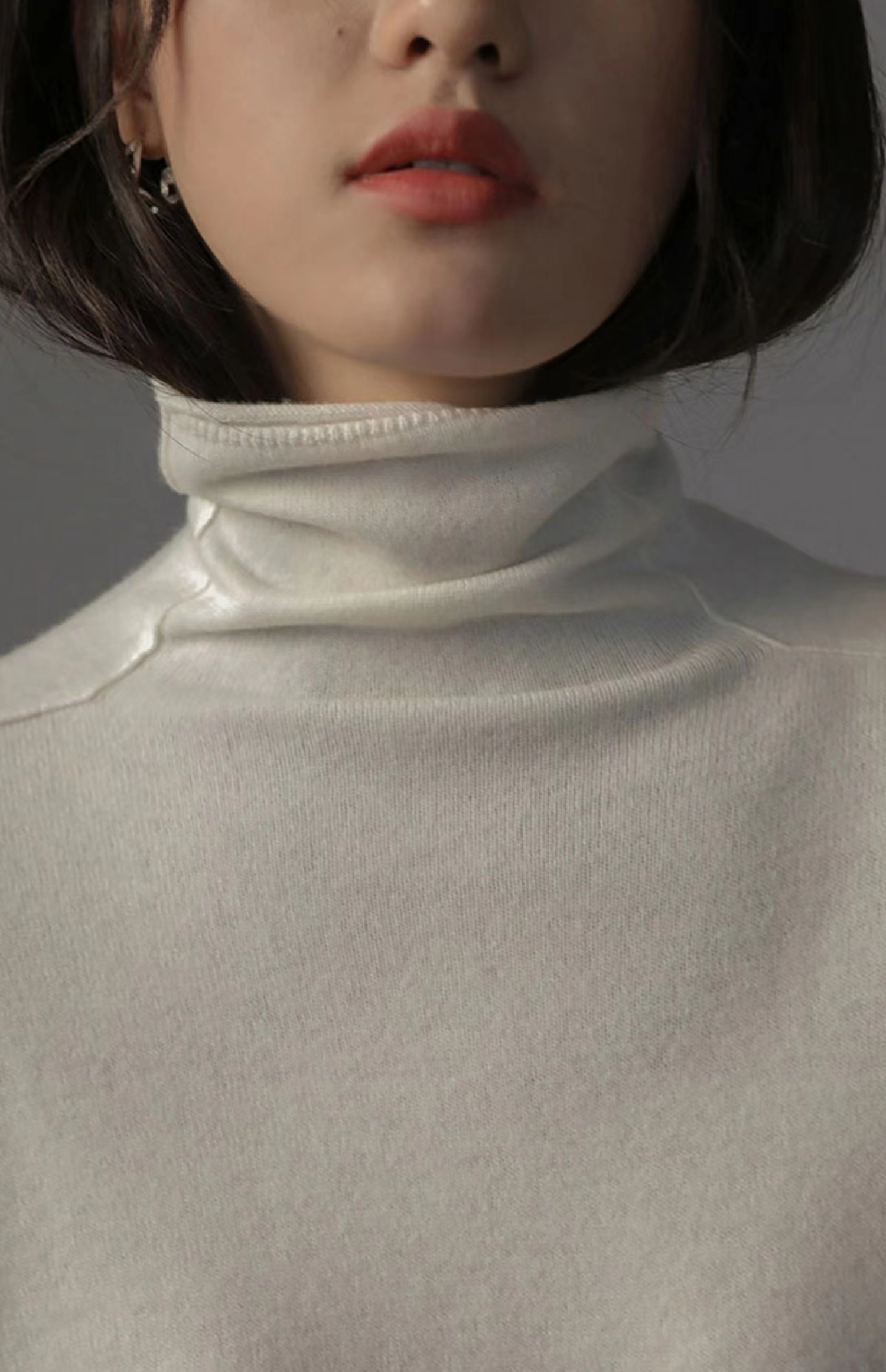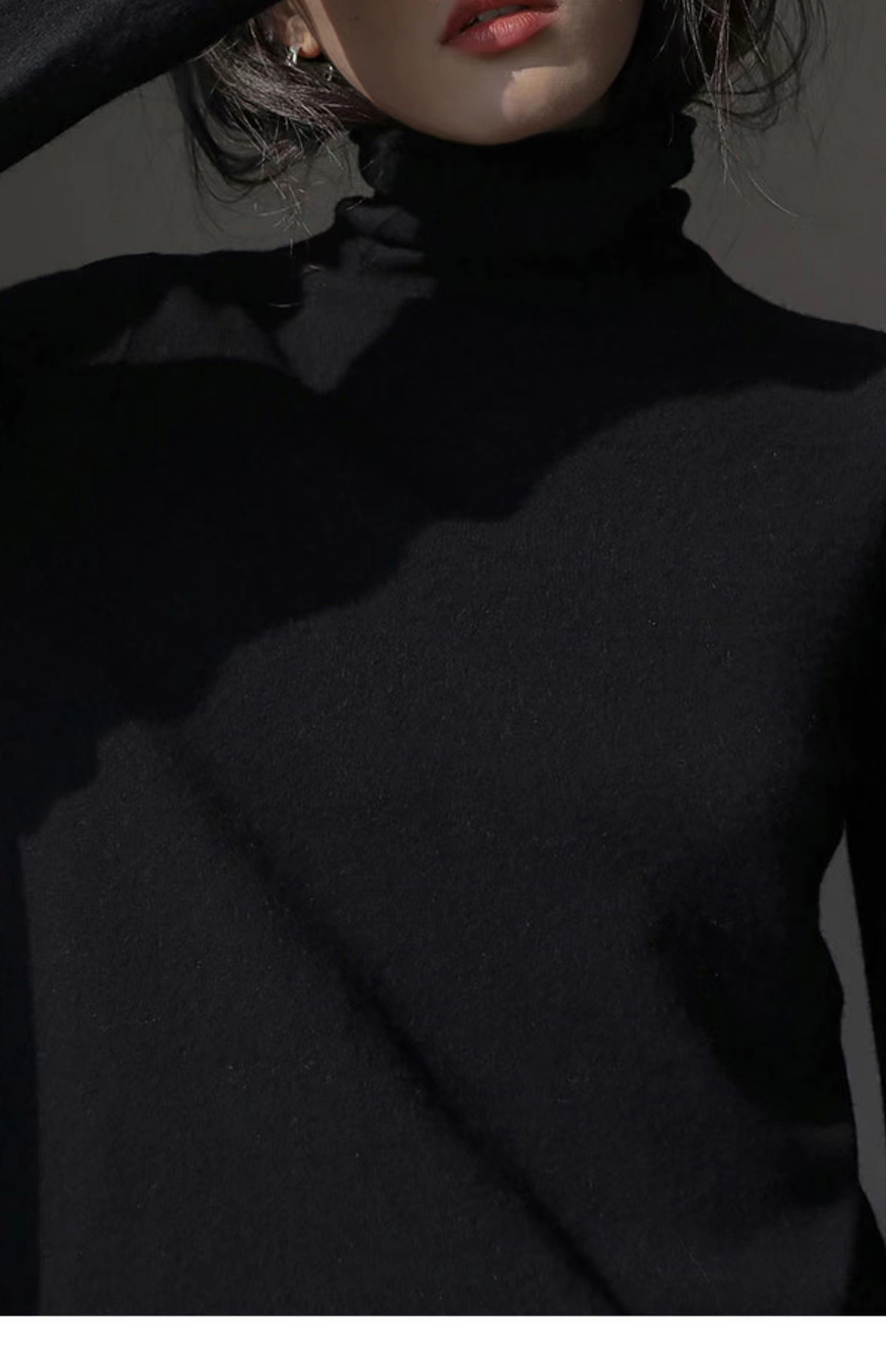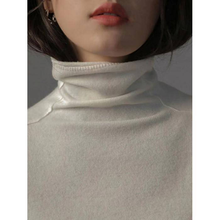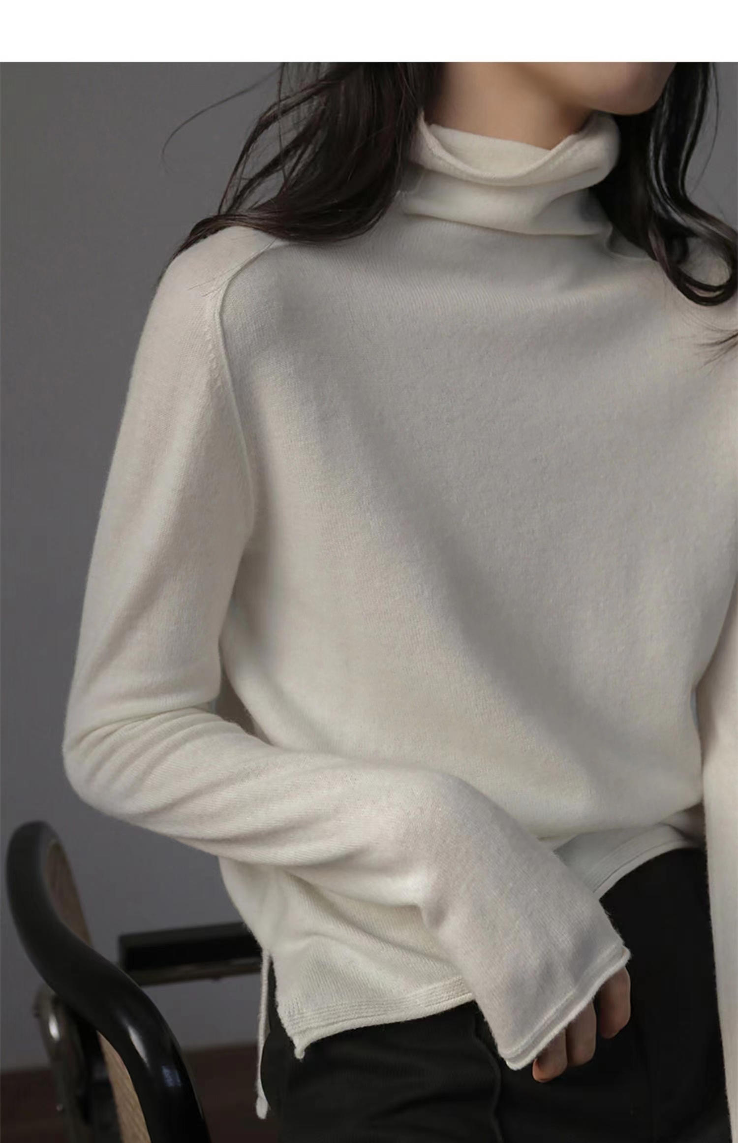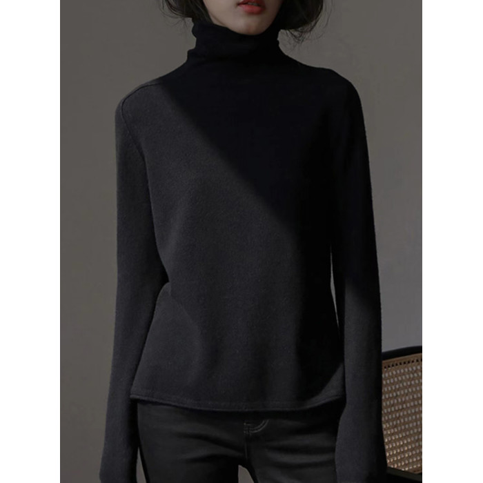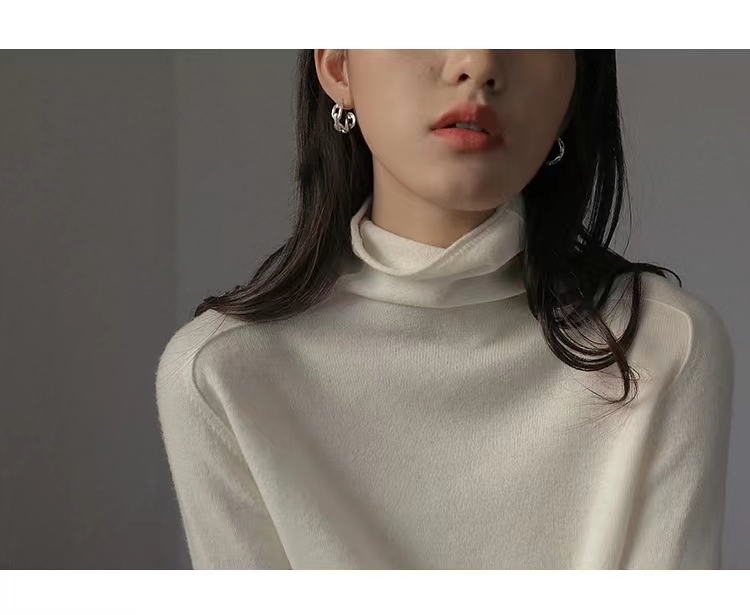 內搭慵懶百搭純色羊毛針織打底衫女秋冬新款長袖堆堆領羊絨毛衣潮