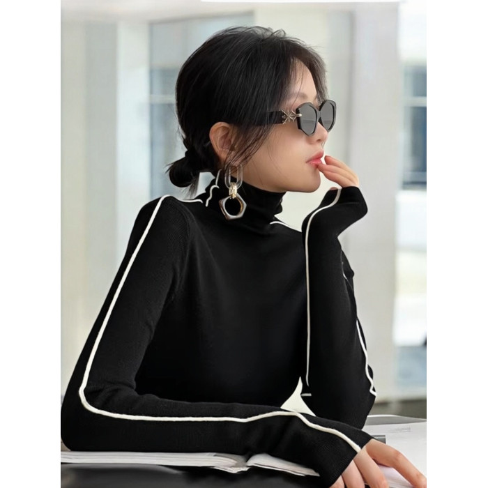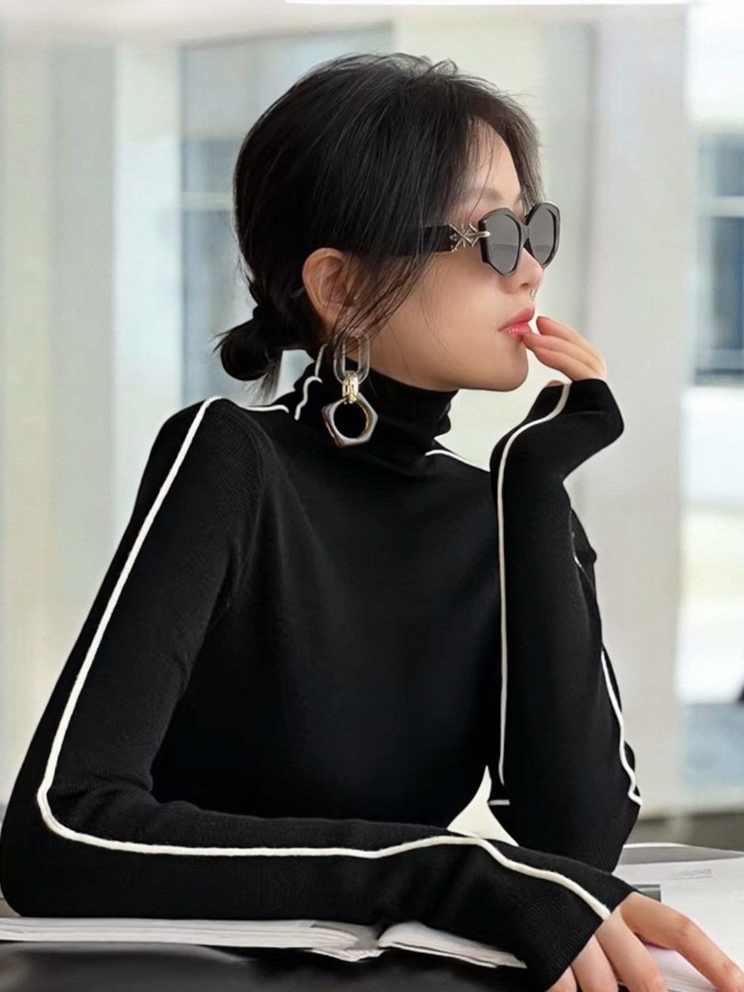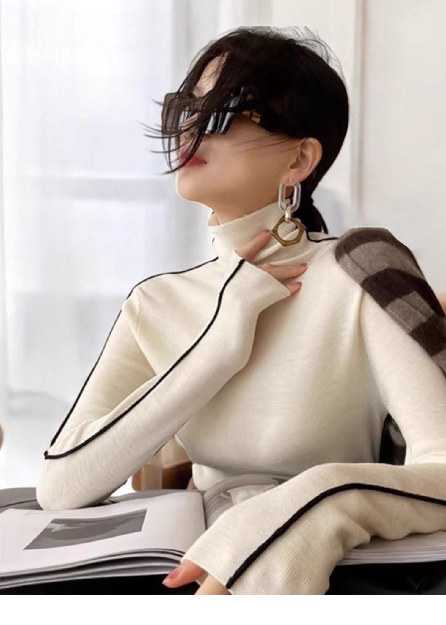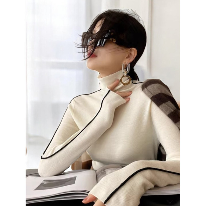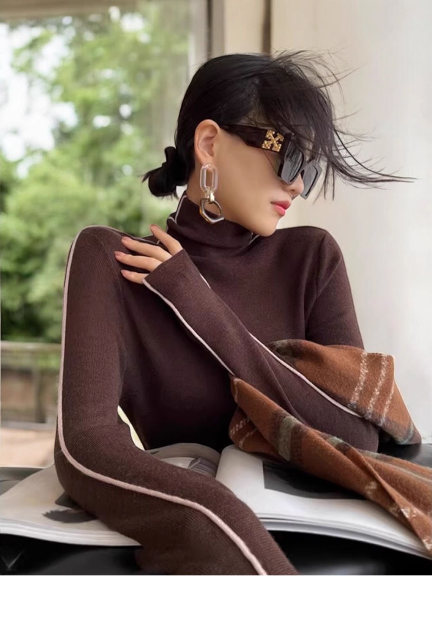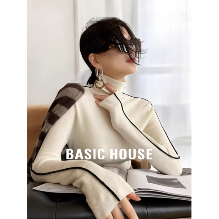 Basic House/百家好法式軟糯高領打底衫內搭配大衣修身毛衣女早秋