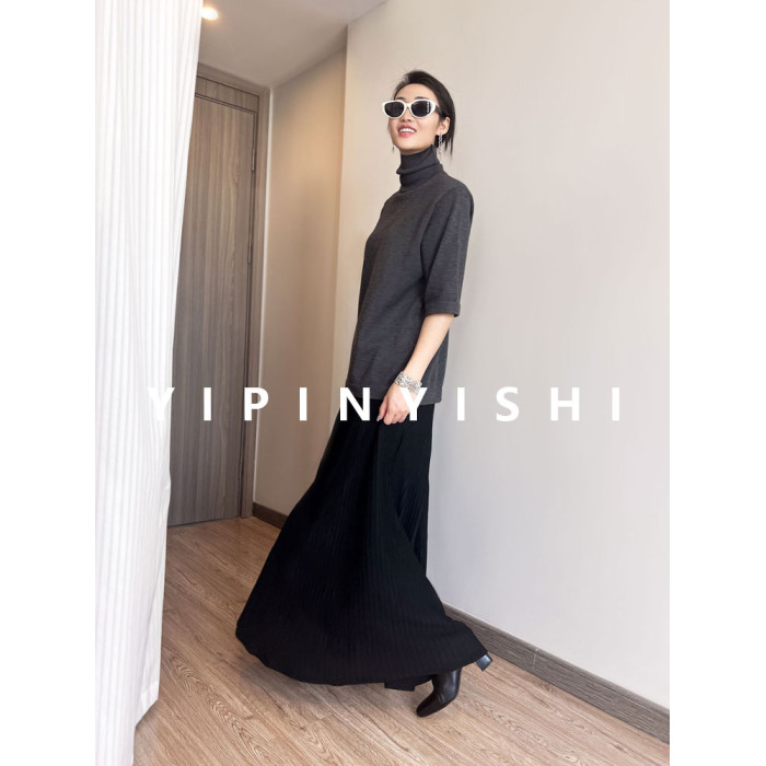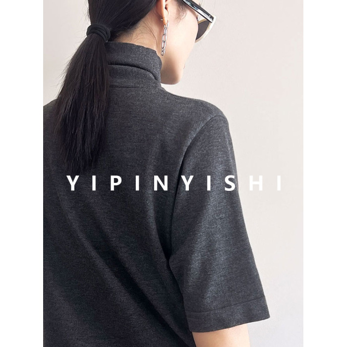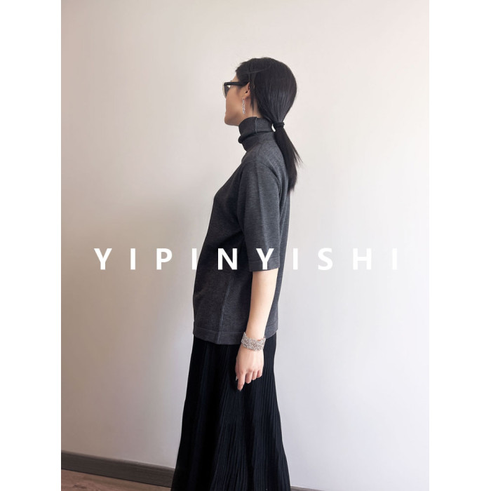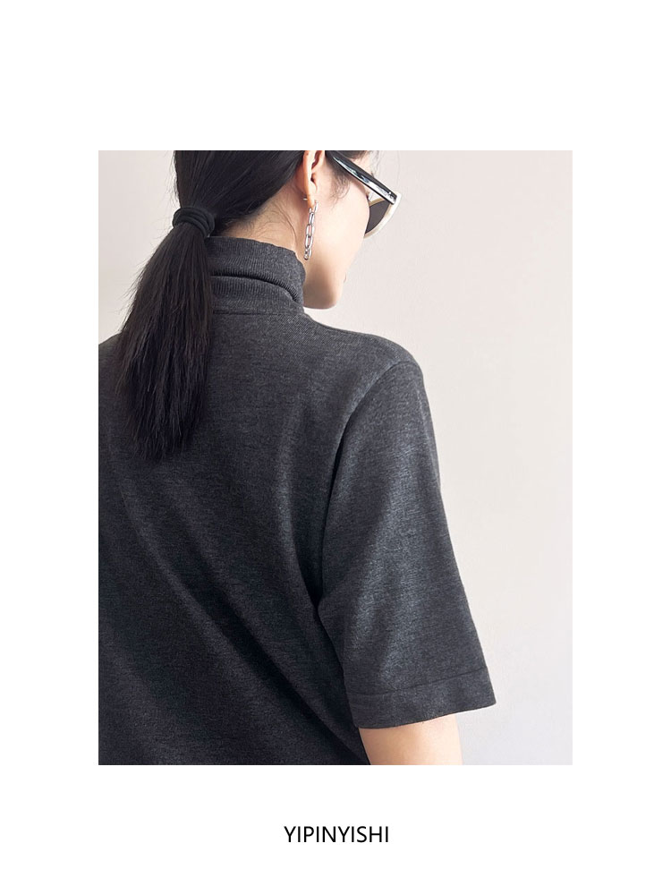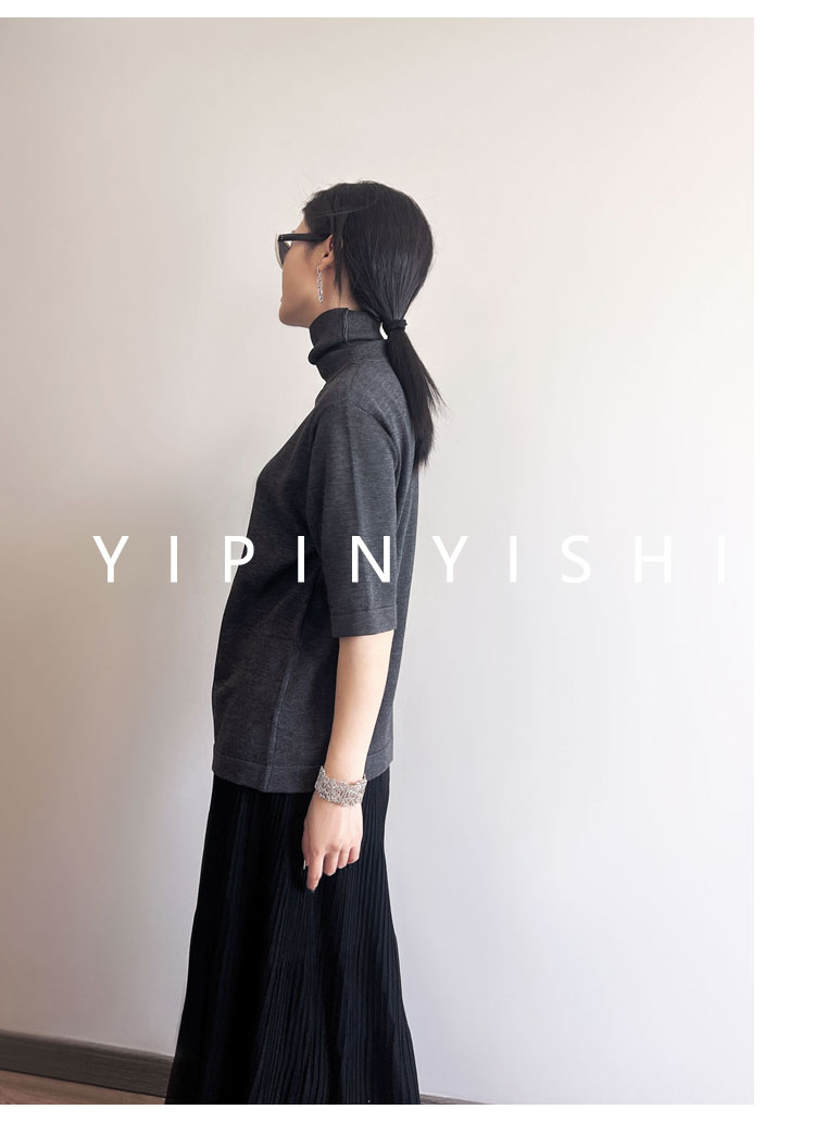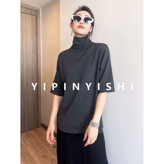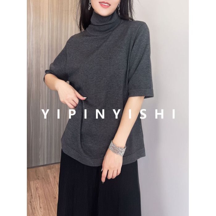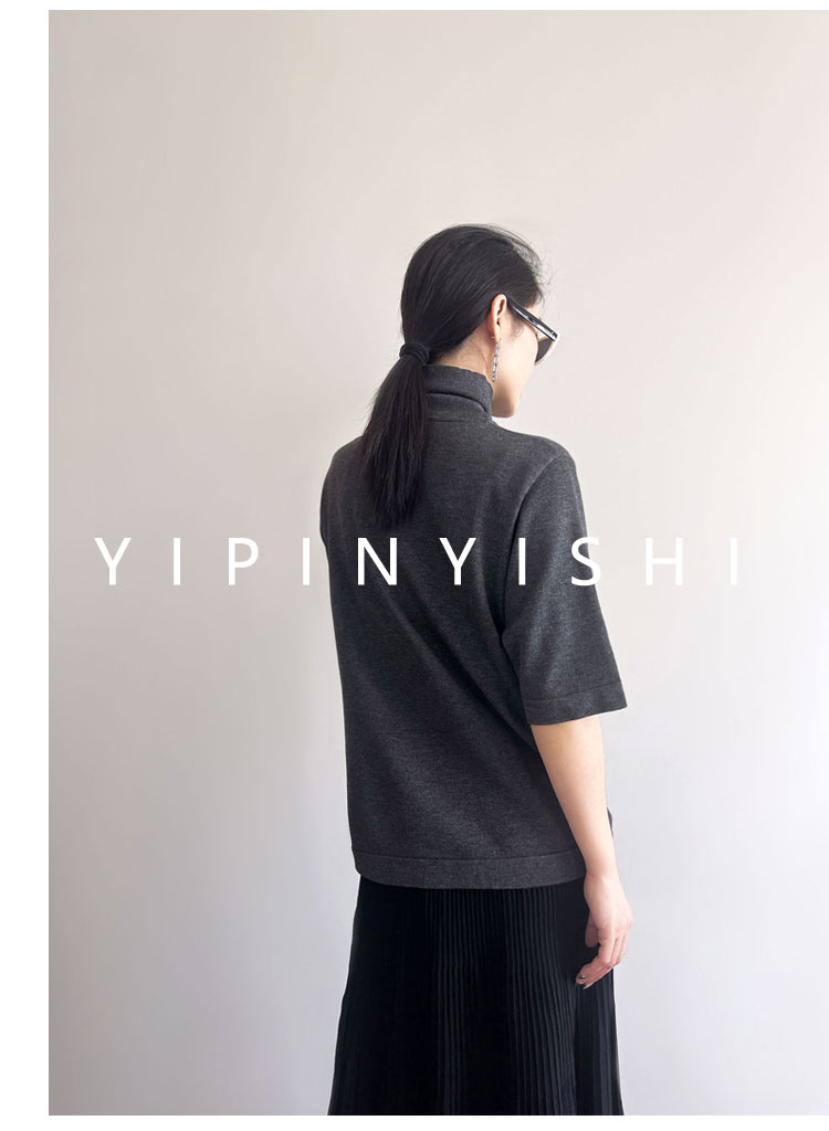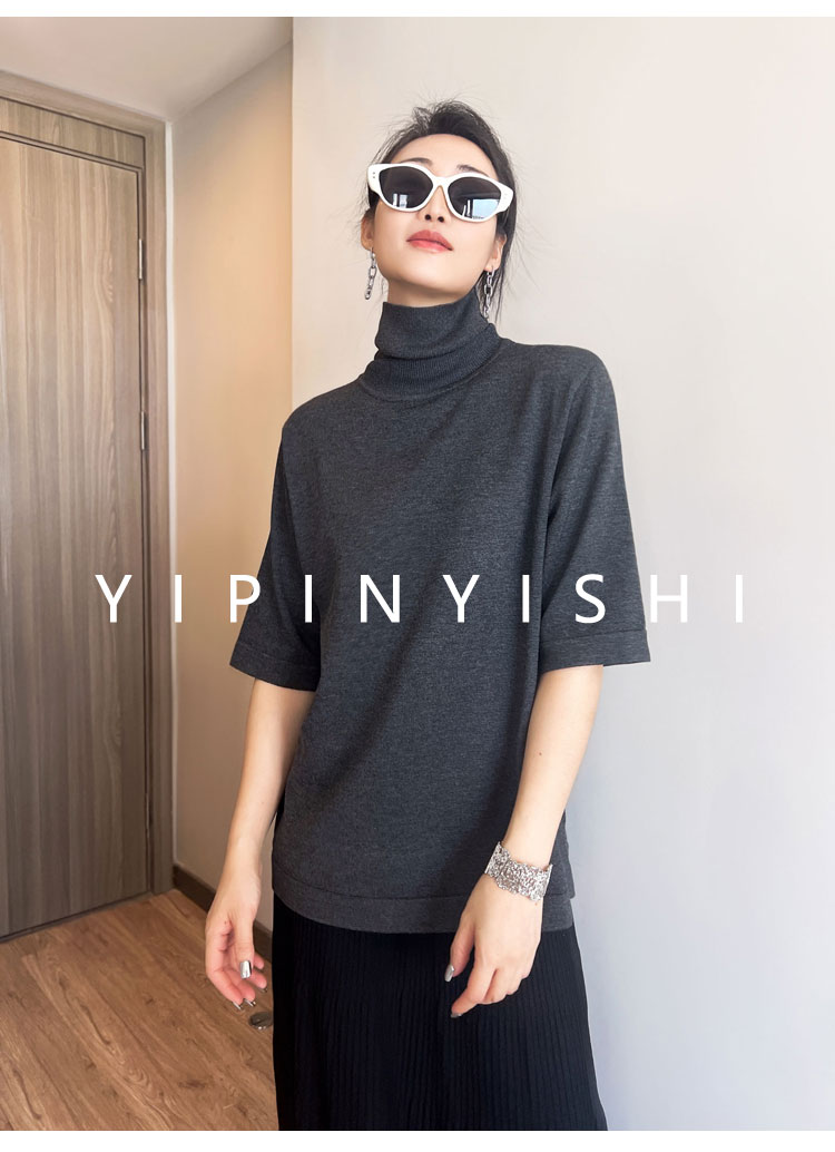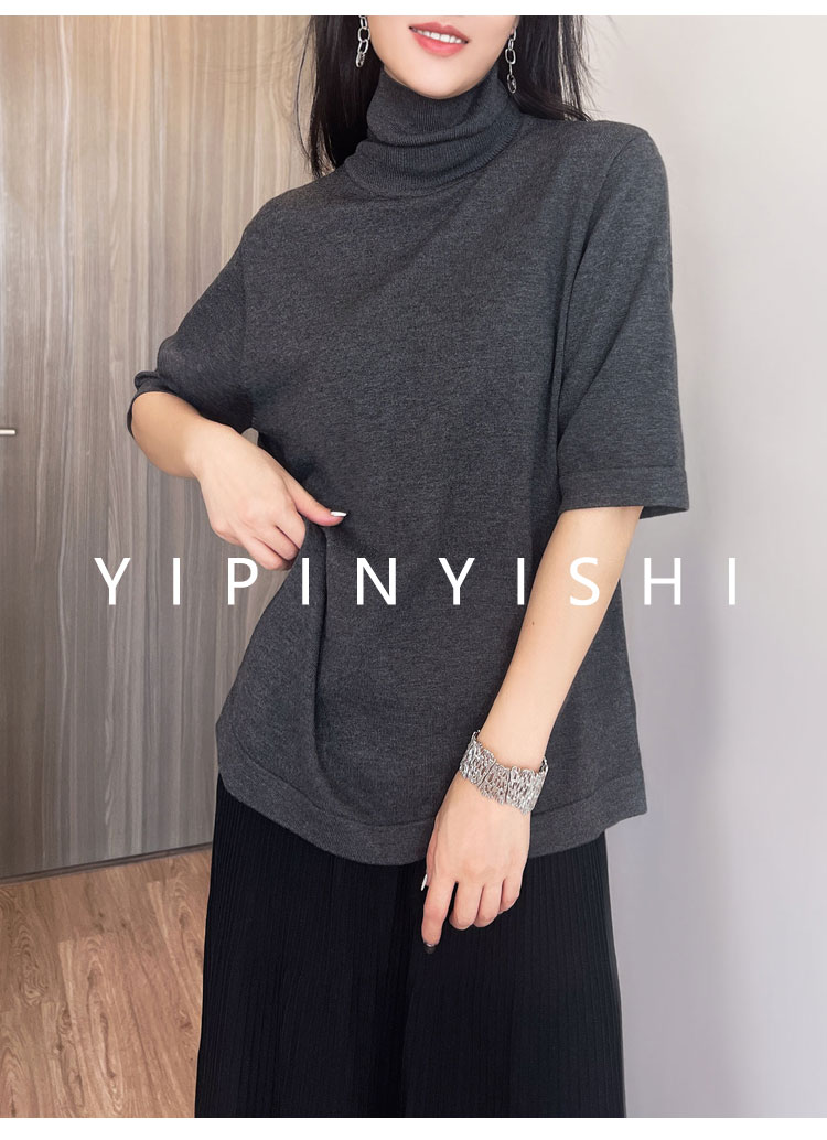 抗起球秋冬季高領五分袖針織打底衫純色韓版寬松大碼顯瘦女士上衣