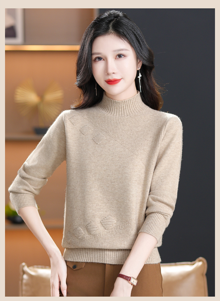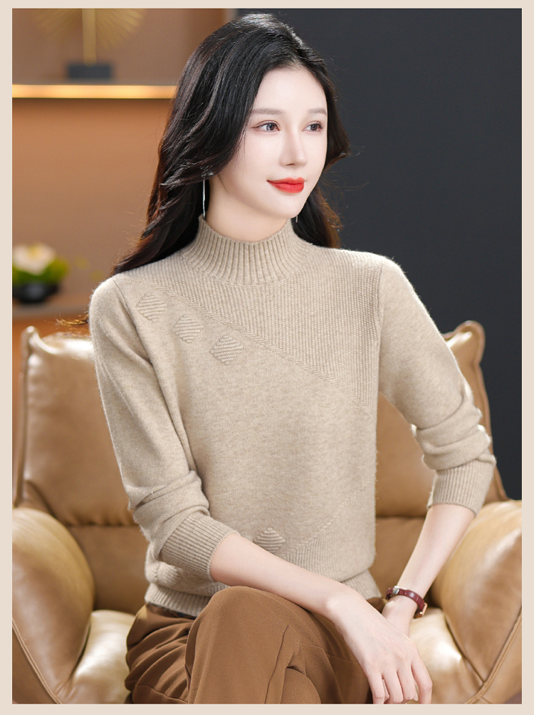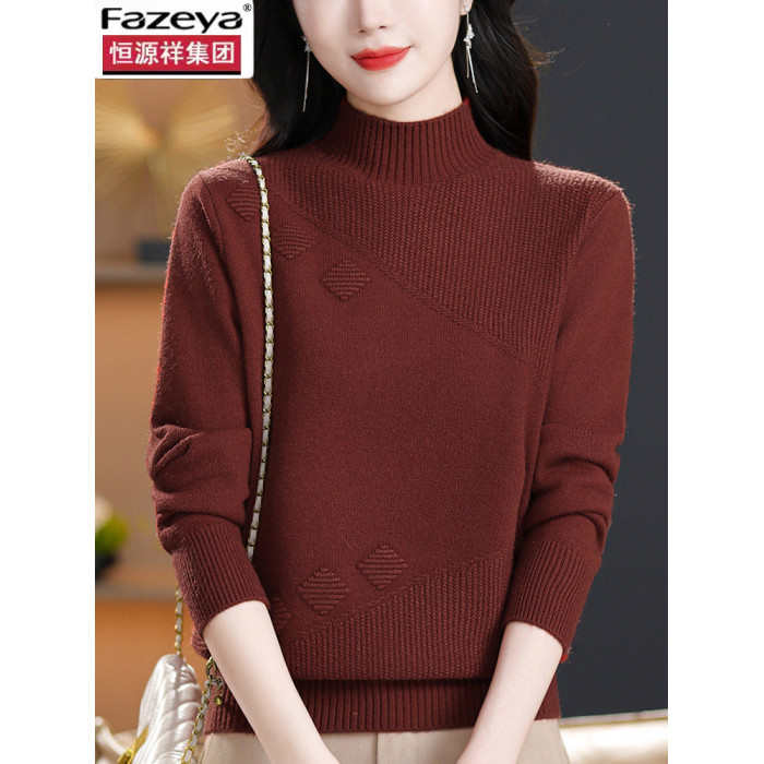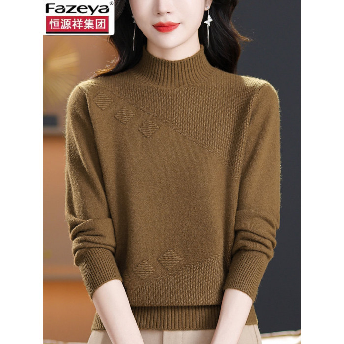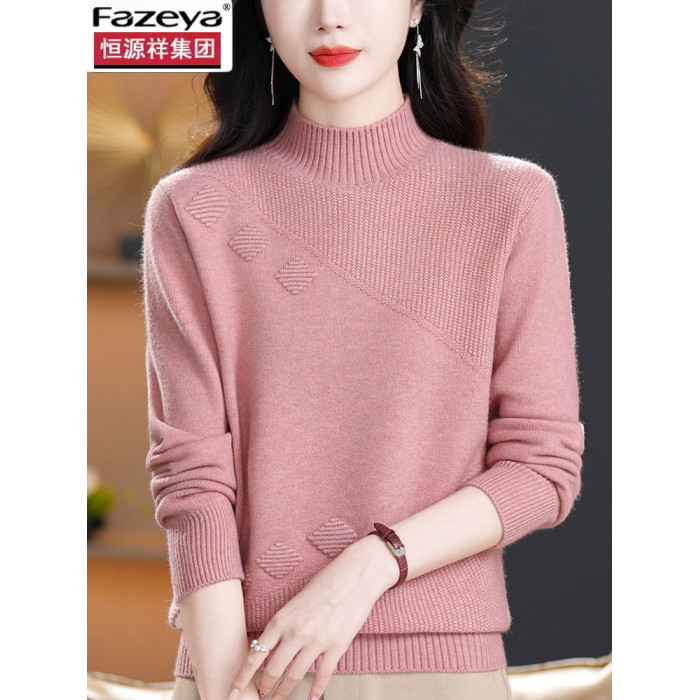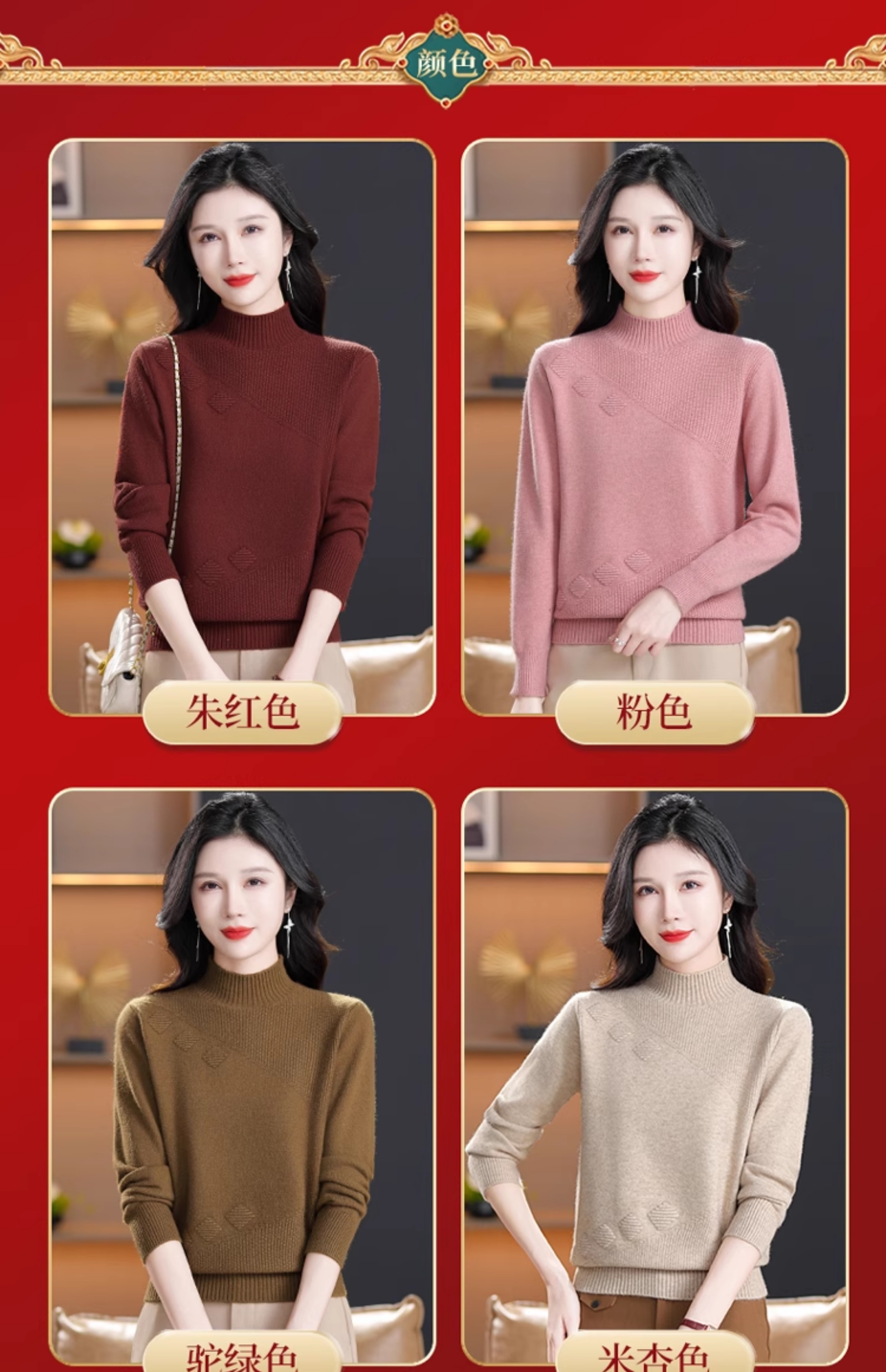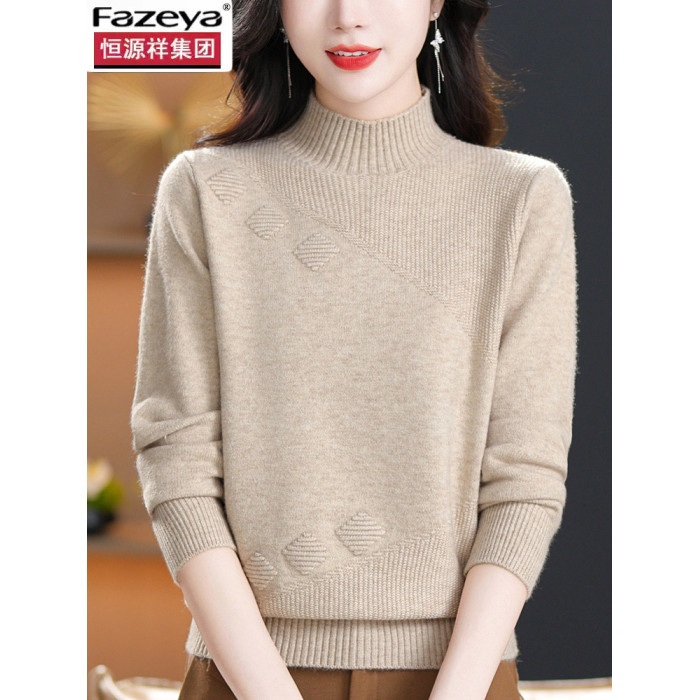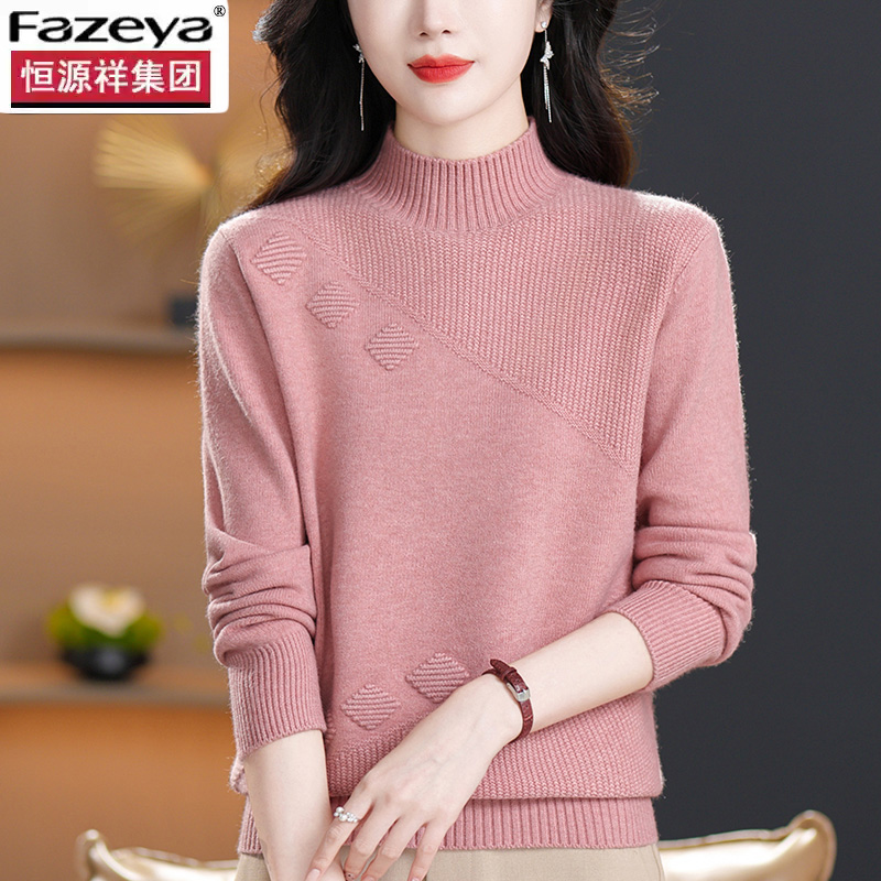 恒源祥彩羊毛衣女款2025新款冬季羊毛衫半高領加厚內搭上衣打底衫