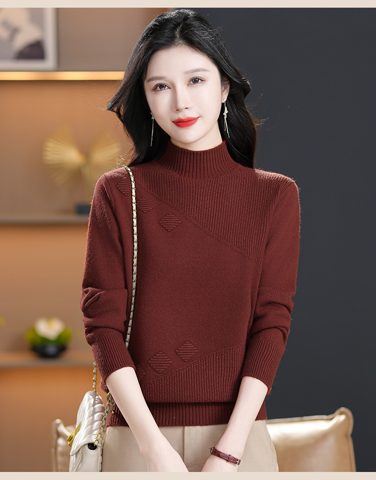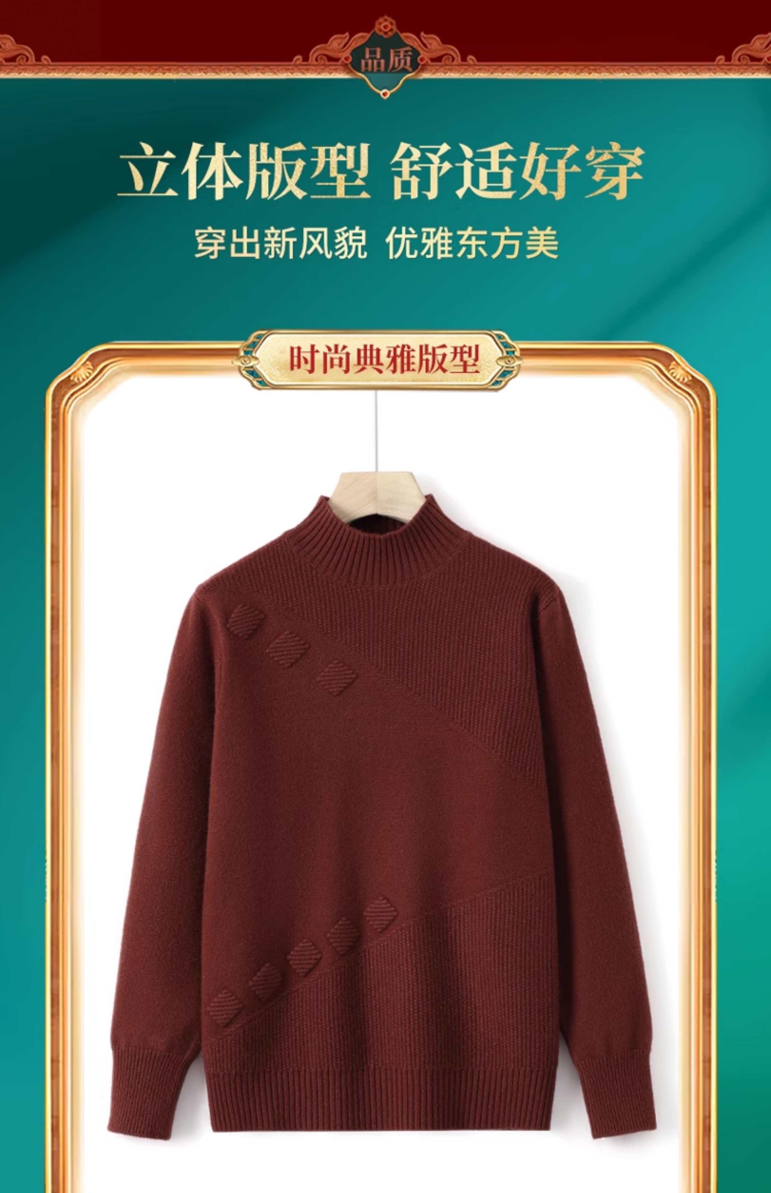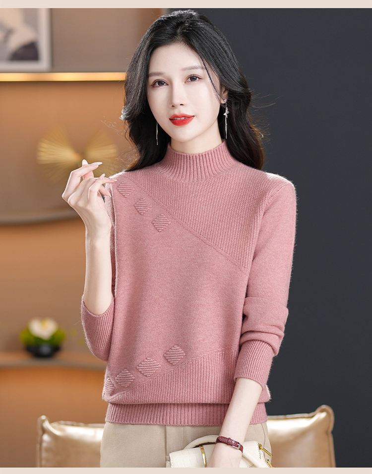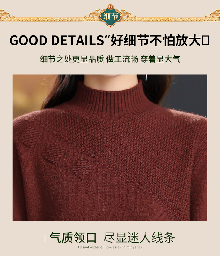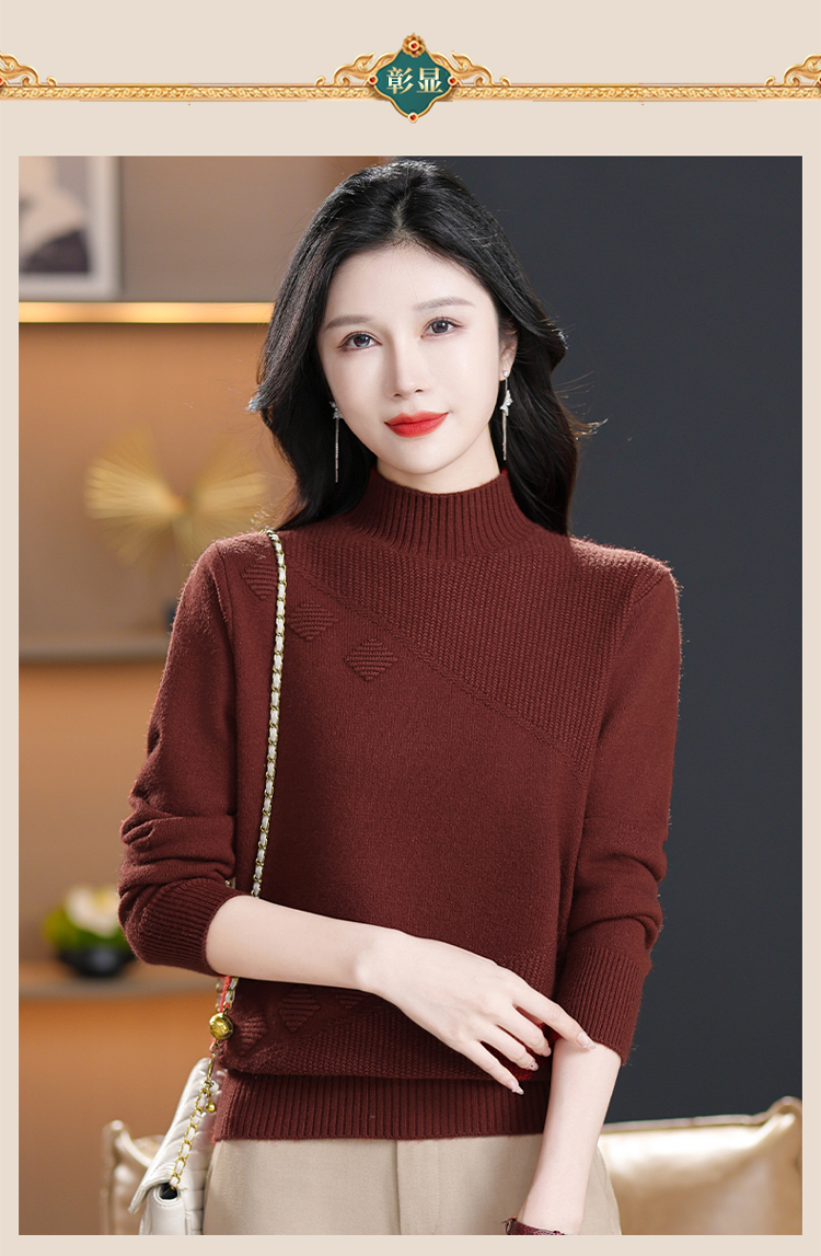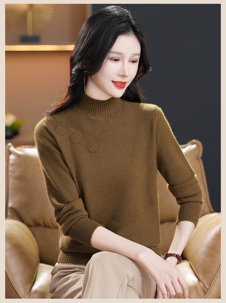 恒源祥彩羊毛衣女款2025新款冬季羊毛衫半高領加厚內搭上衣打底衫
