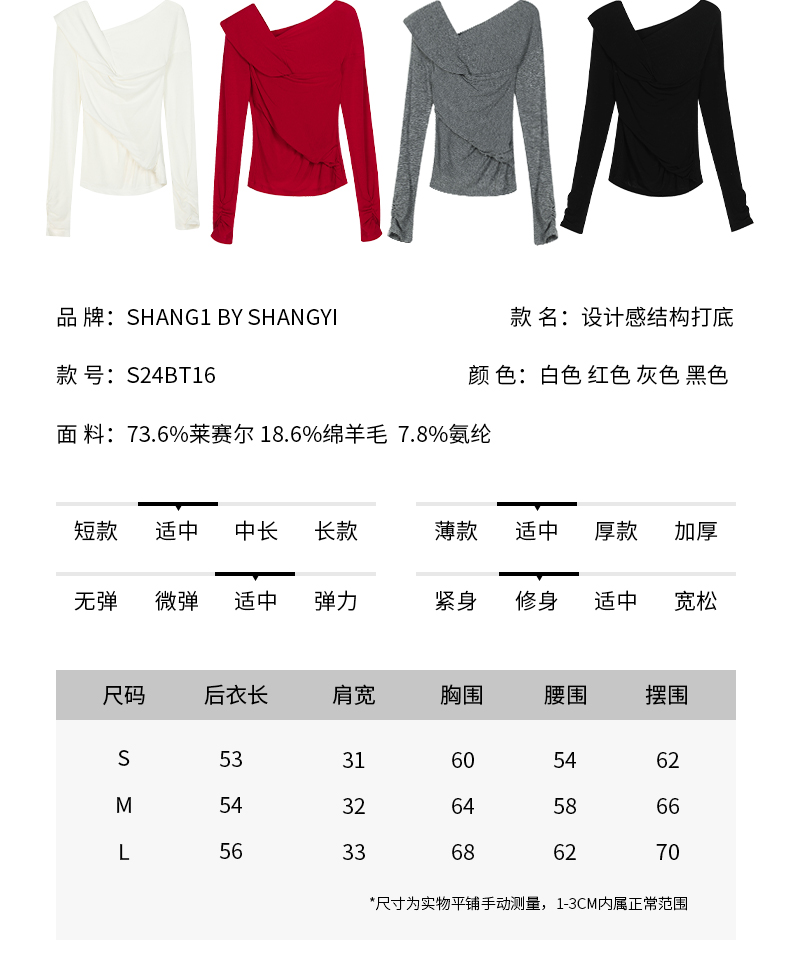 SHANG1 BY SHANGYI長袖打底衫女可外穿早秋新款綿羊毛設計感內搭