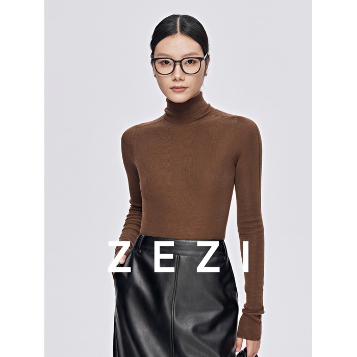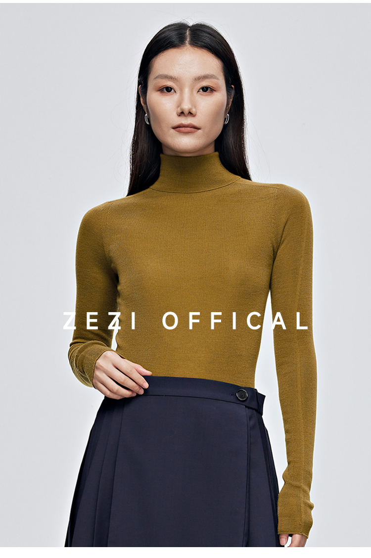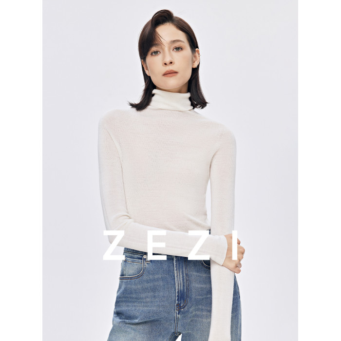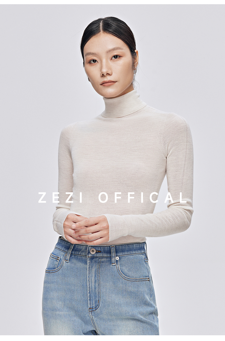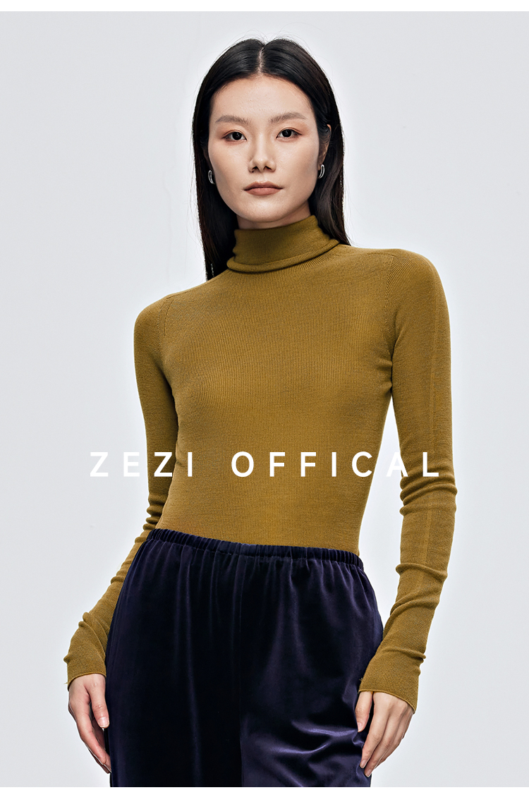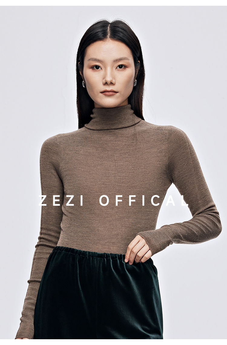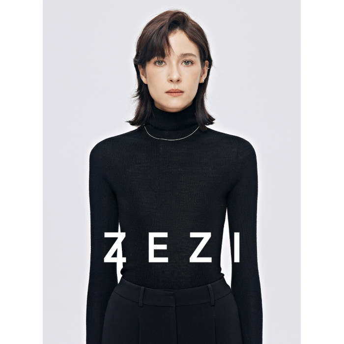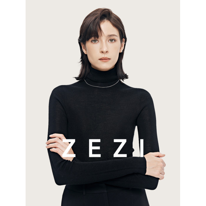 zezi高領打底衫毛衣女春秋新款100羊毛新品針織衫女黑色簡約套頭