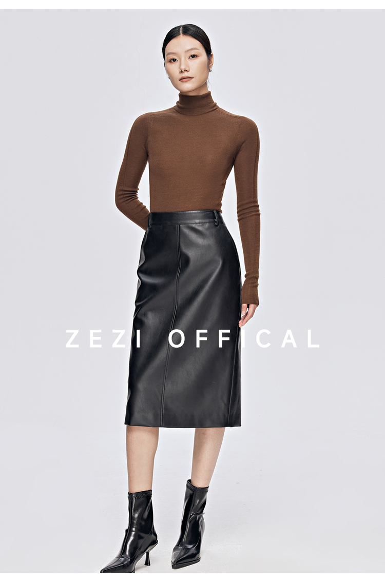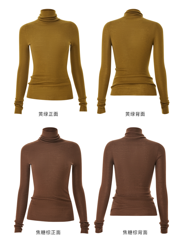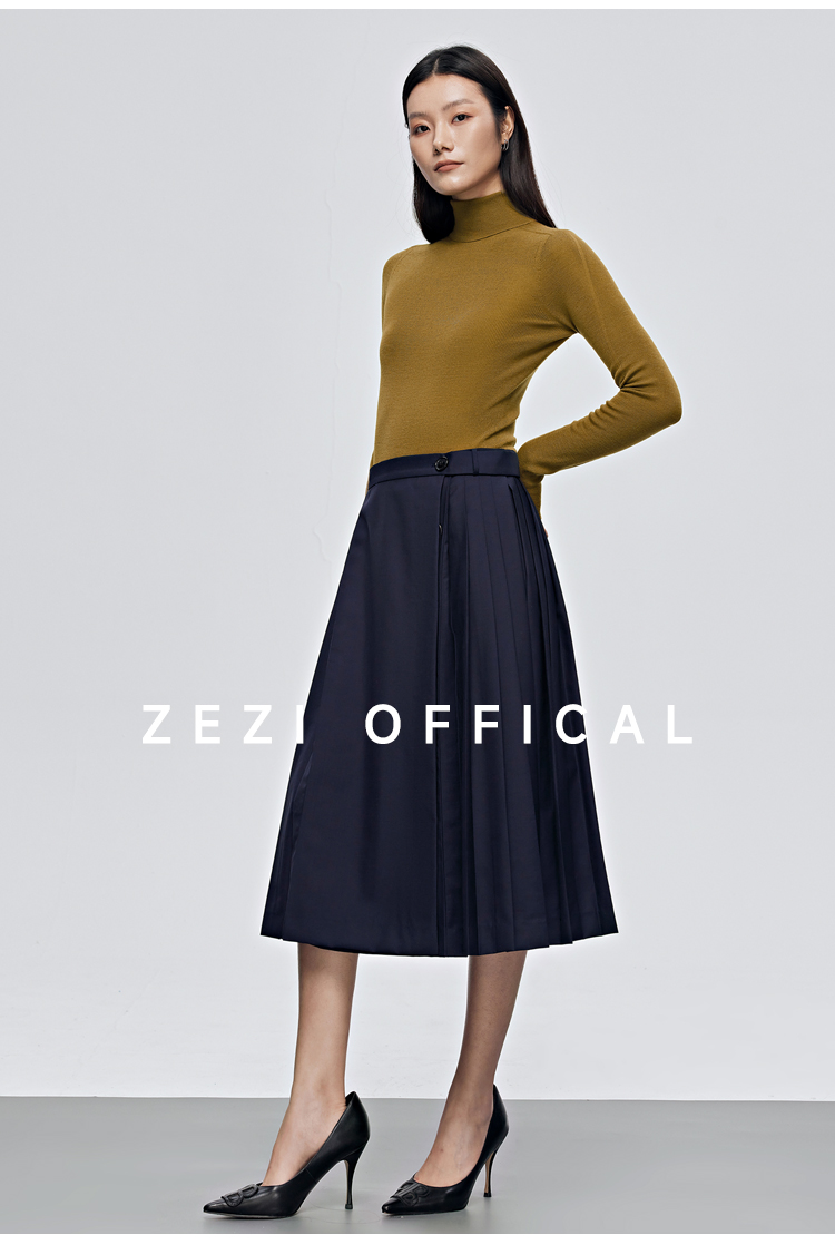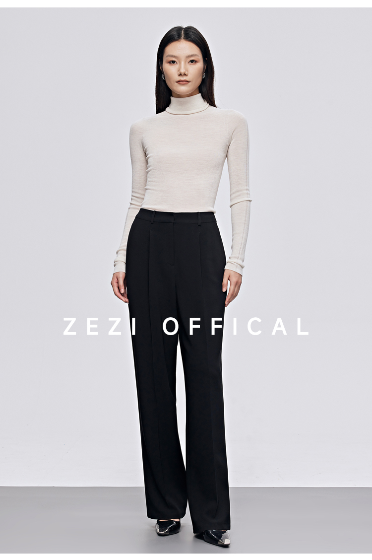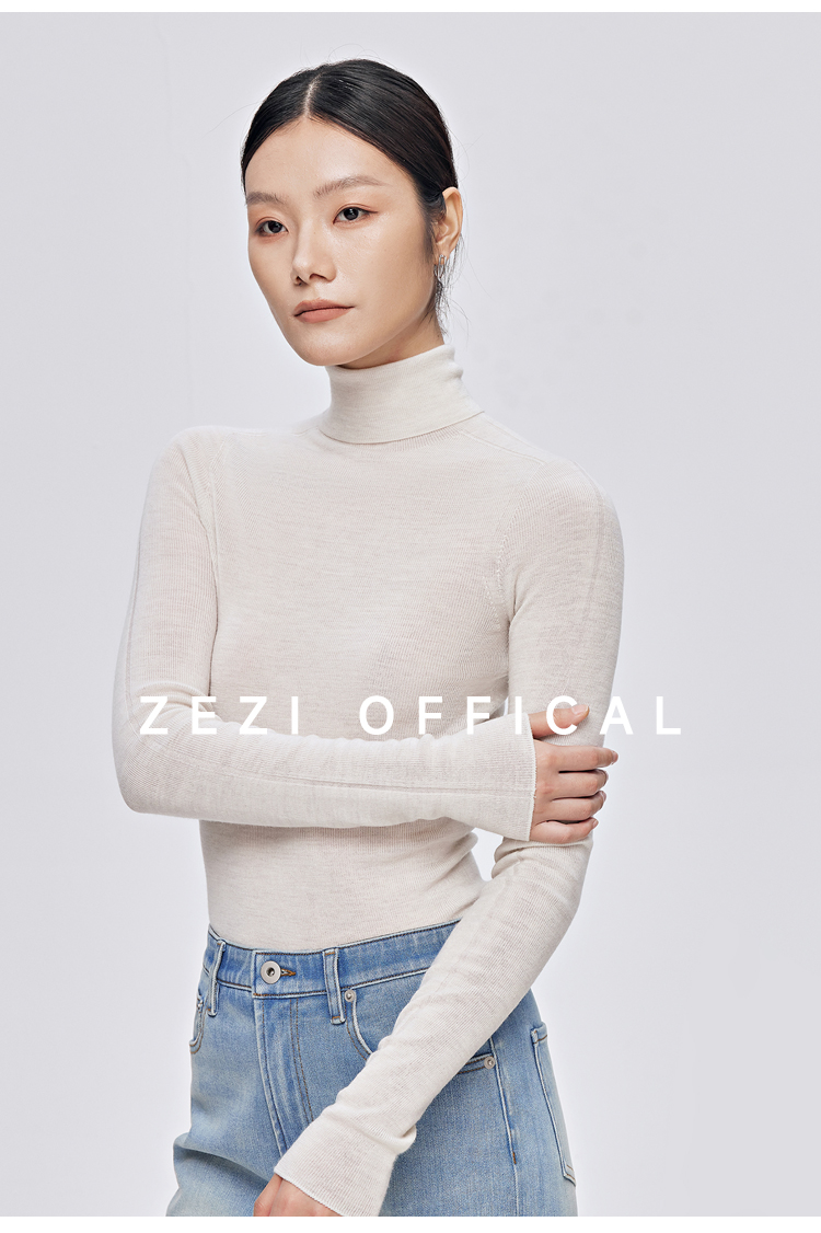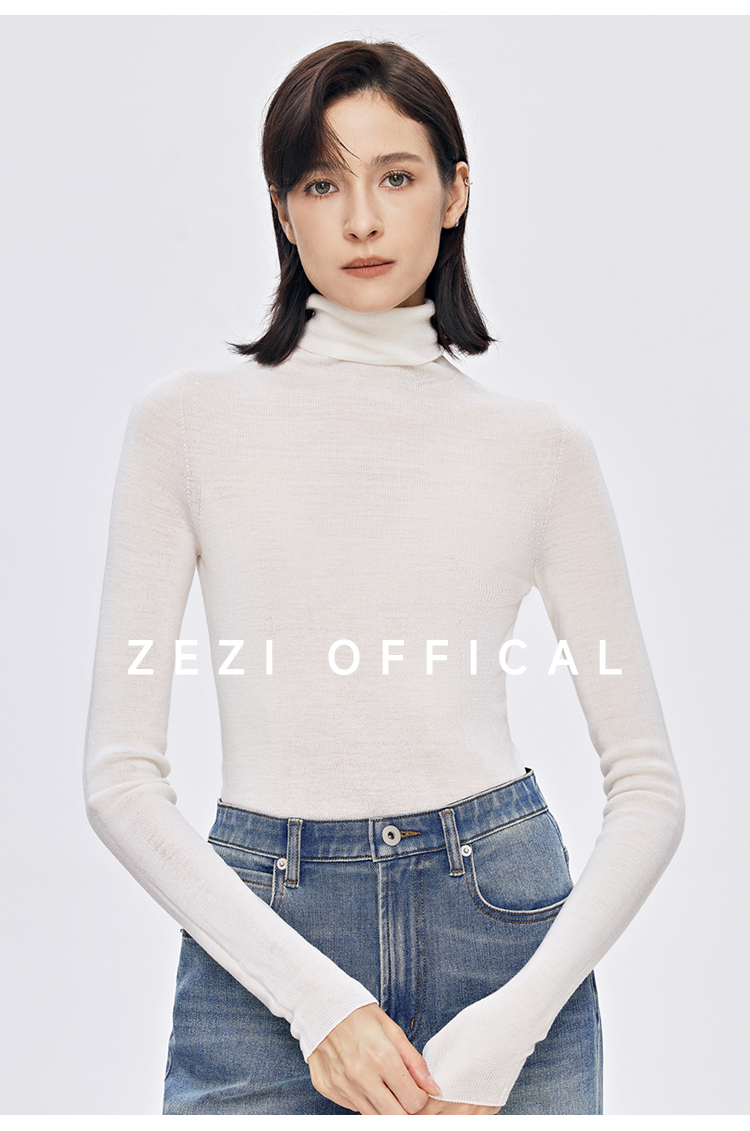 zezi高領打底衫毛衣女春秋新款100羊毛新品針織衫女黑色簡約套頭