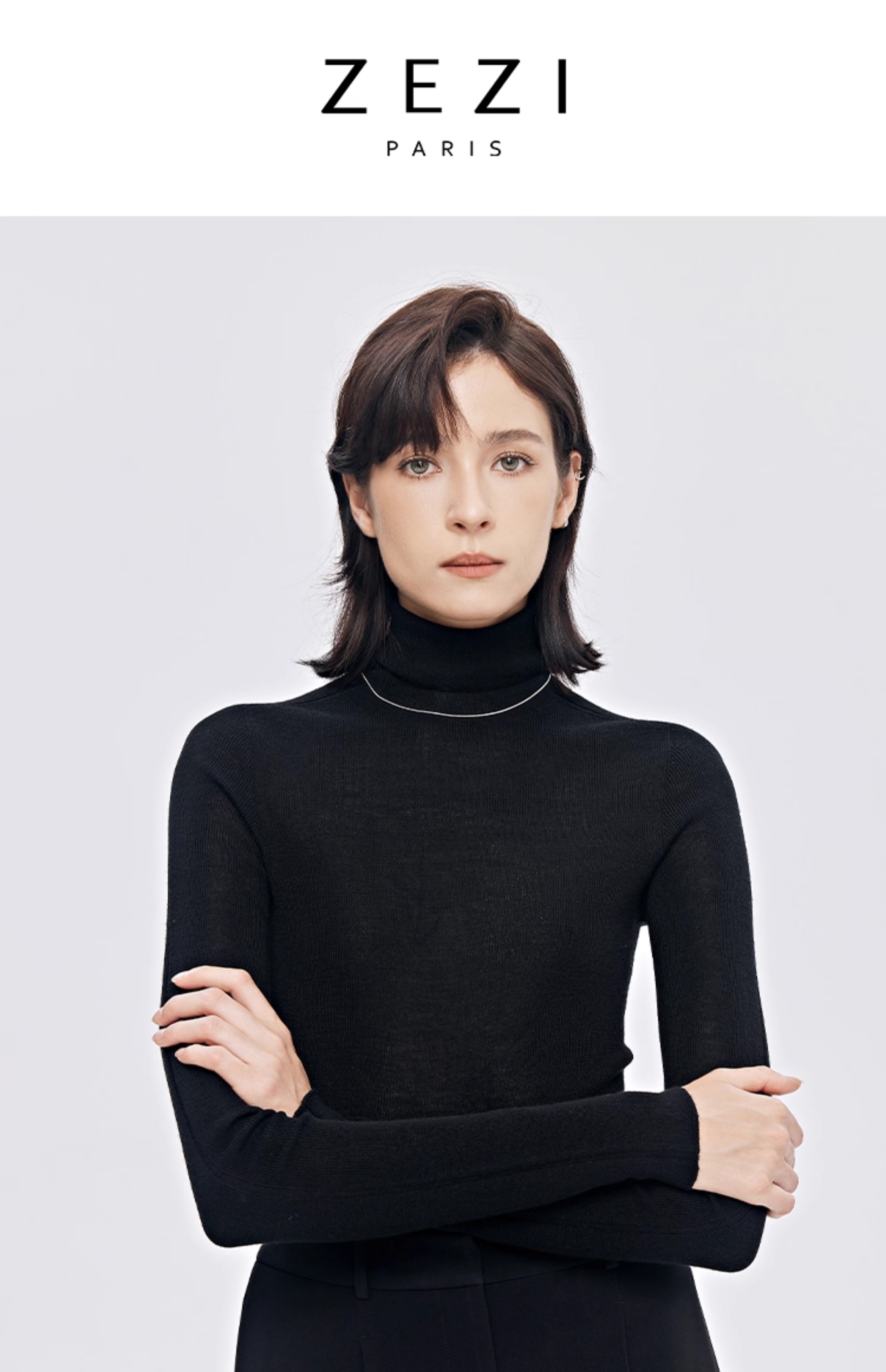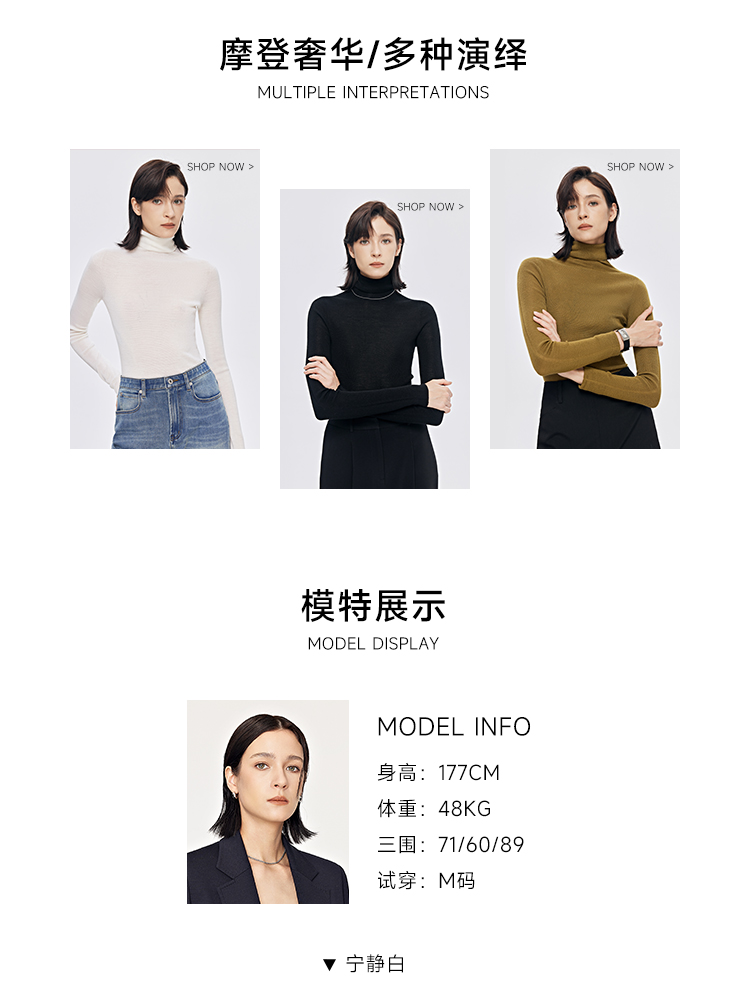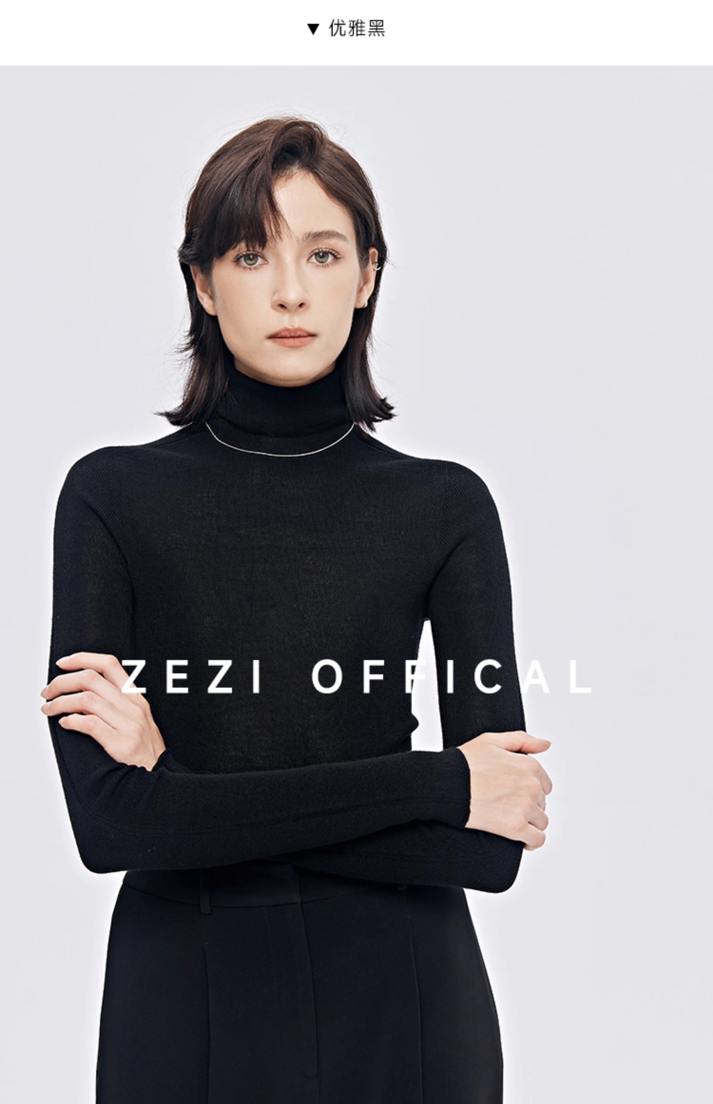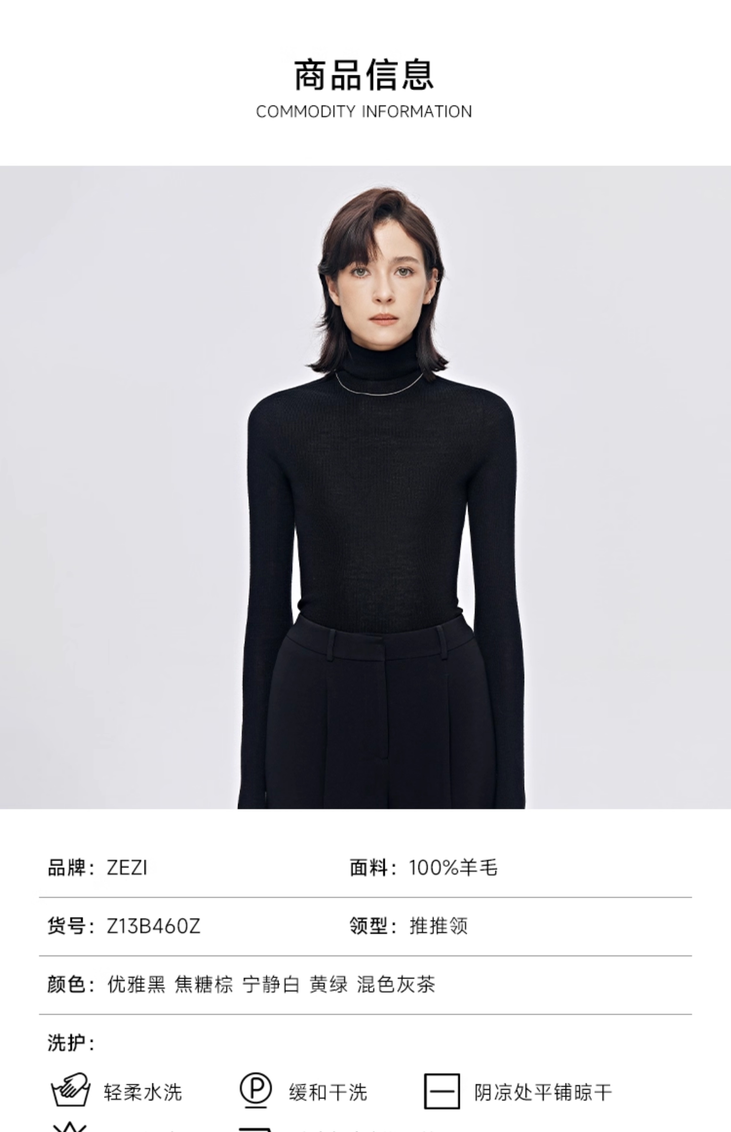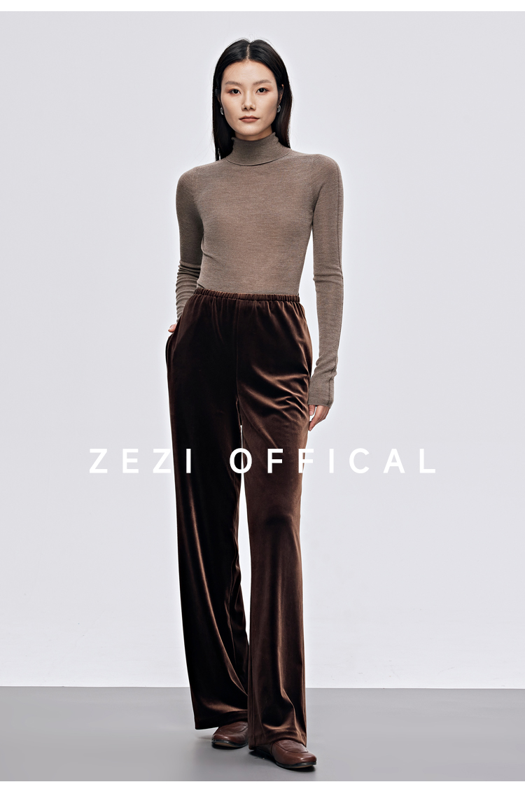 zezi高領打底衫毛衣女春秋新款100羊毛新品針織衫女黑色簡約套頭