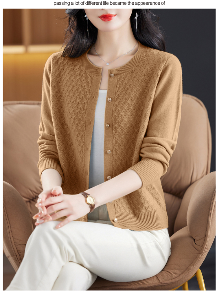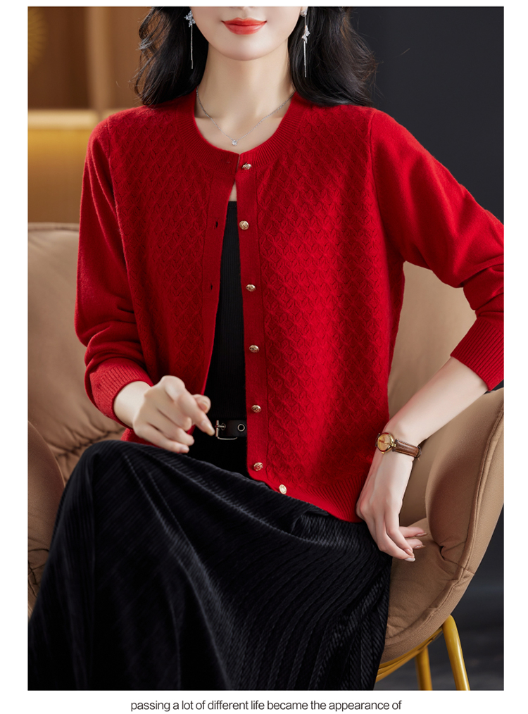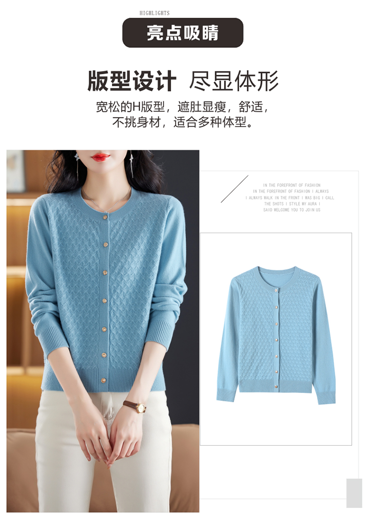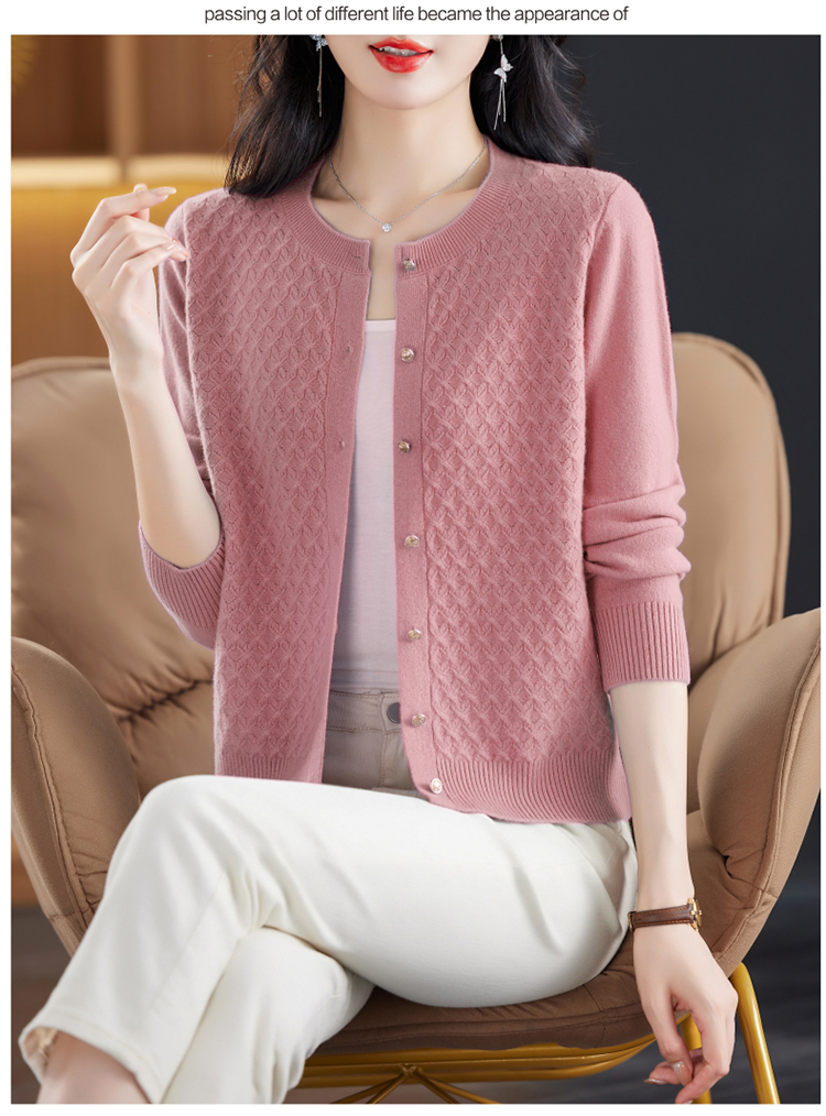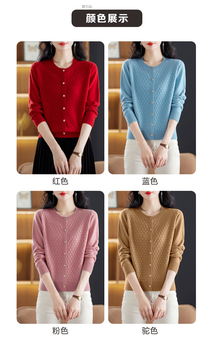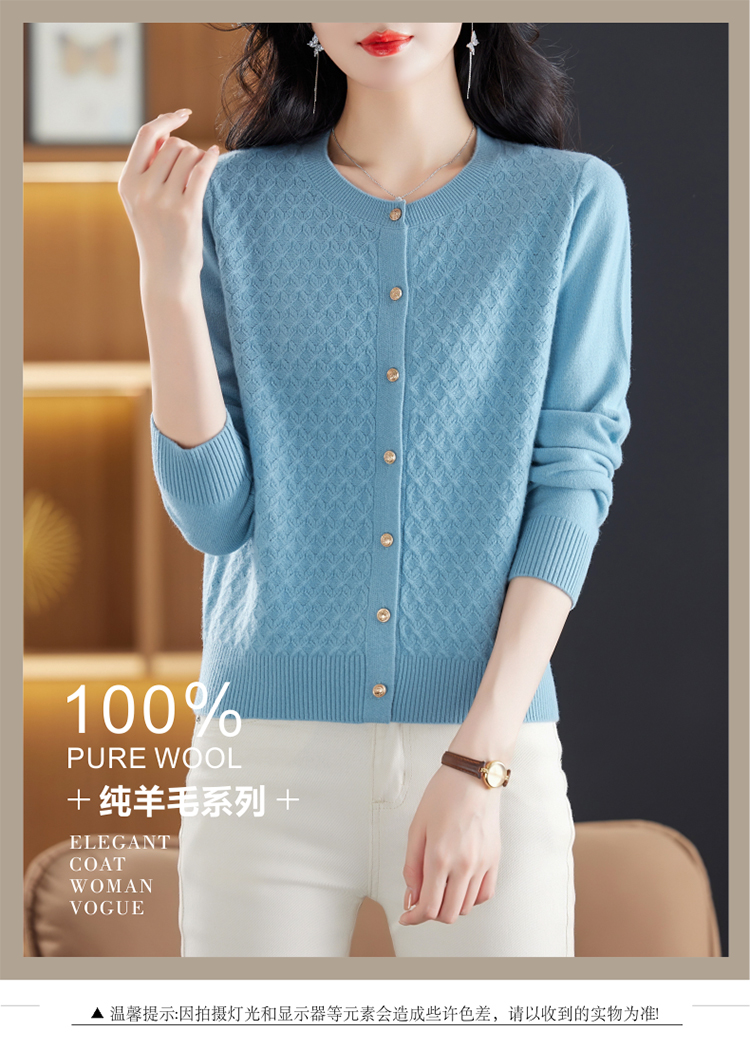 恒源祥100%純羊毛針織開衫女秋冬新款品牌時尚大碼打底衫媽媽毛衣