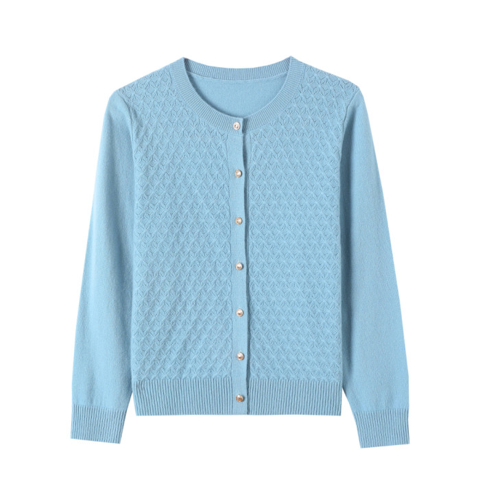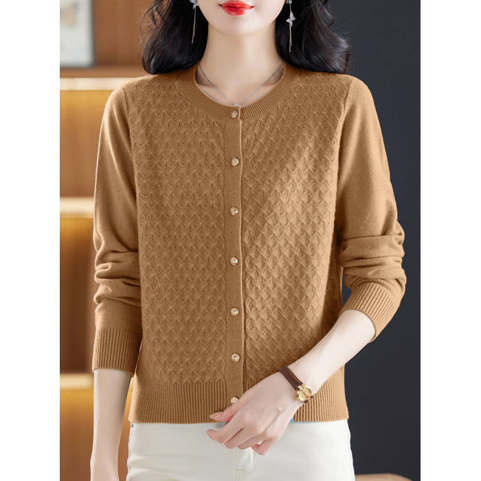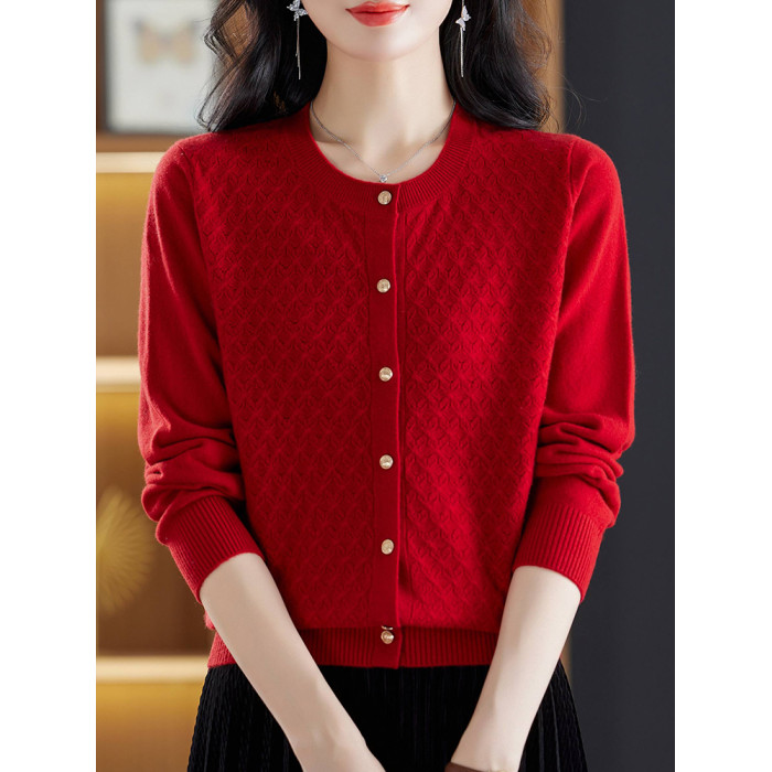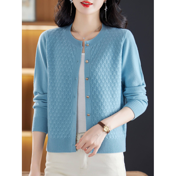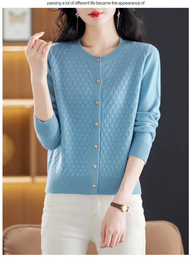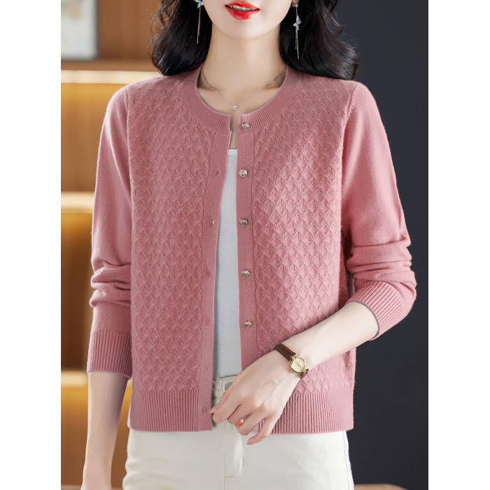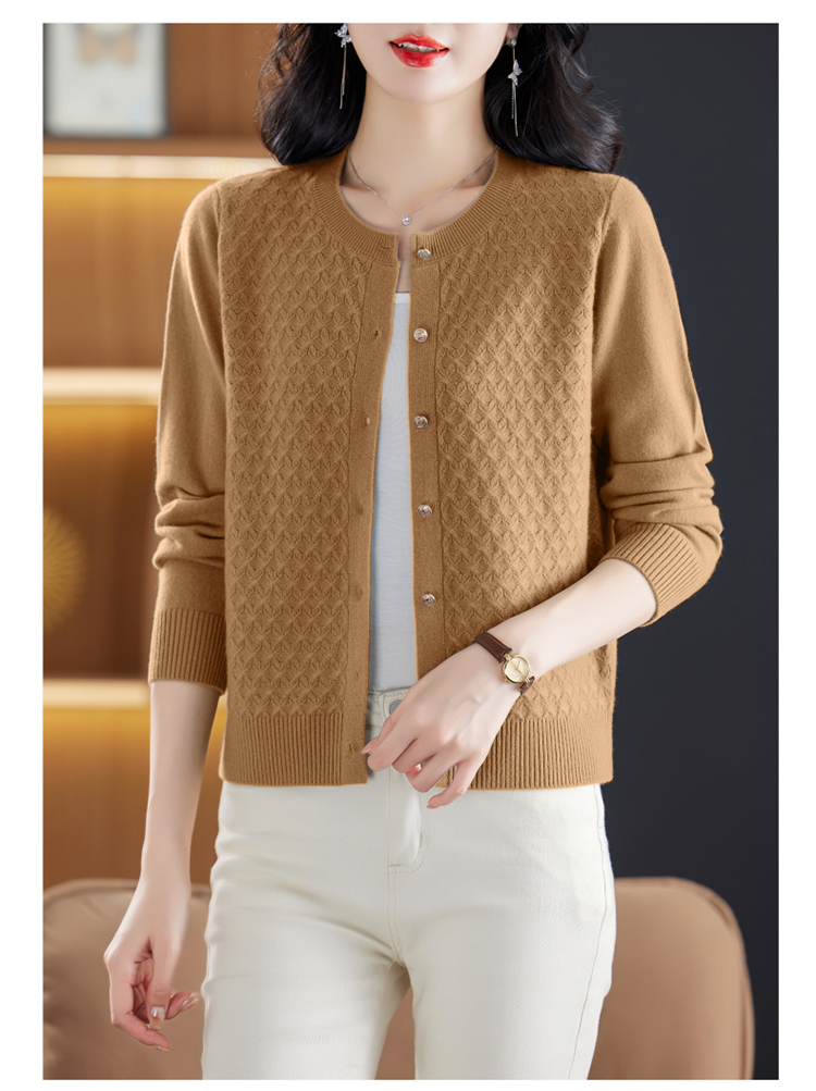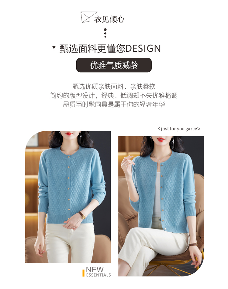 恒源祥100%純羊毛針織開衫女秋冬新款品牌時尚大碼打底衫媽媽毛衣