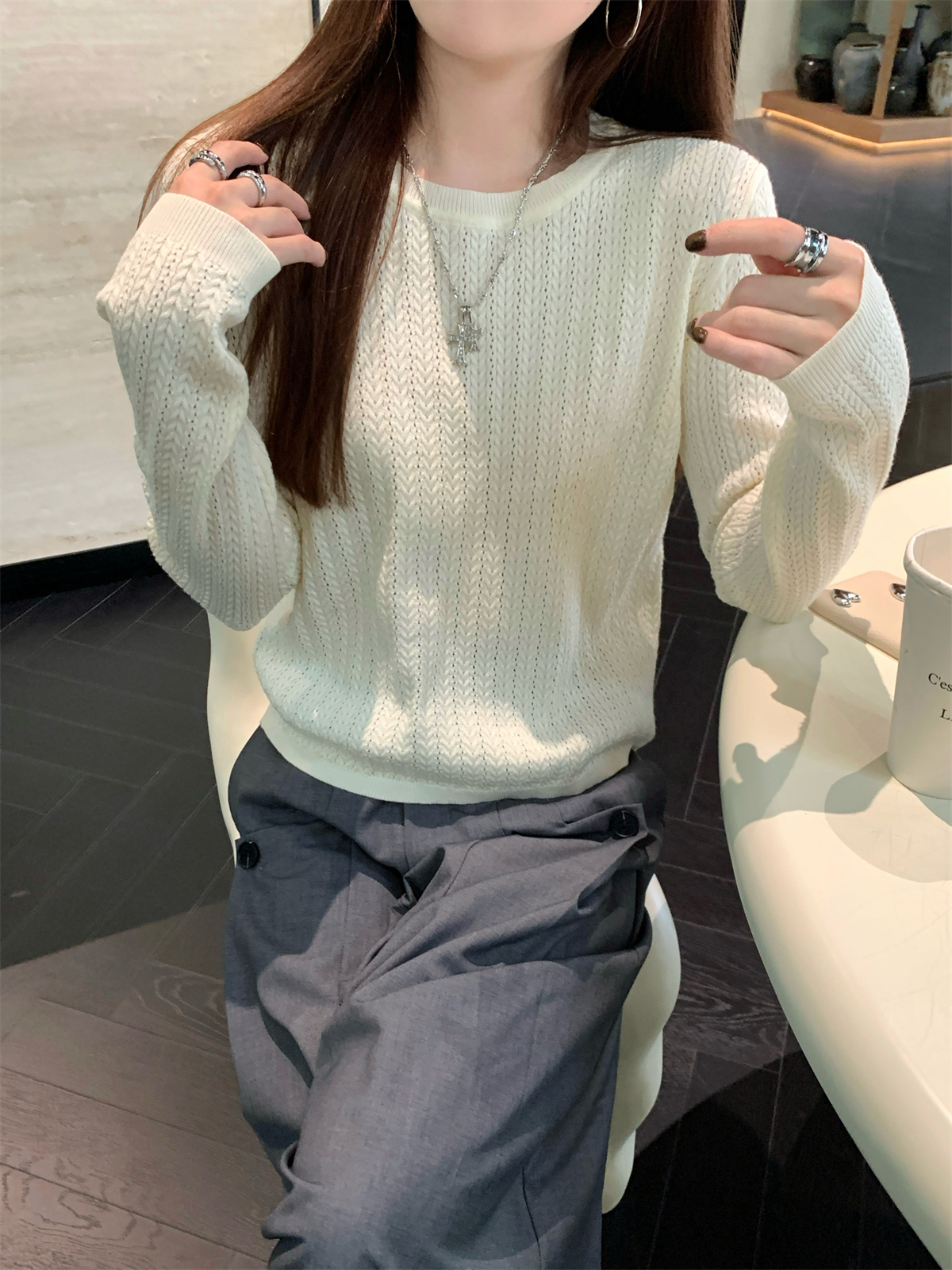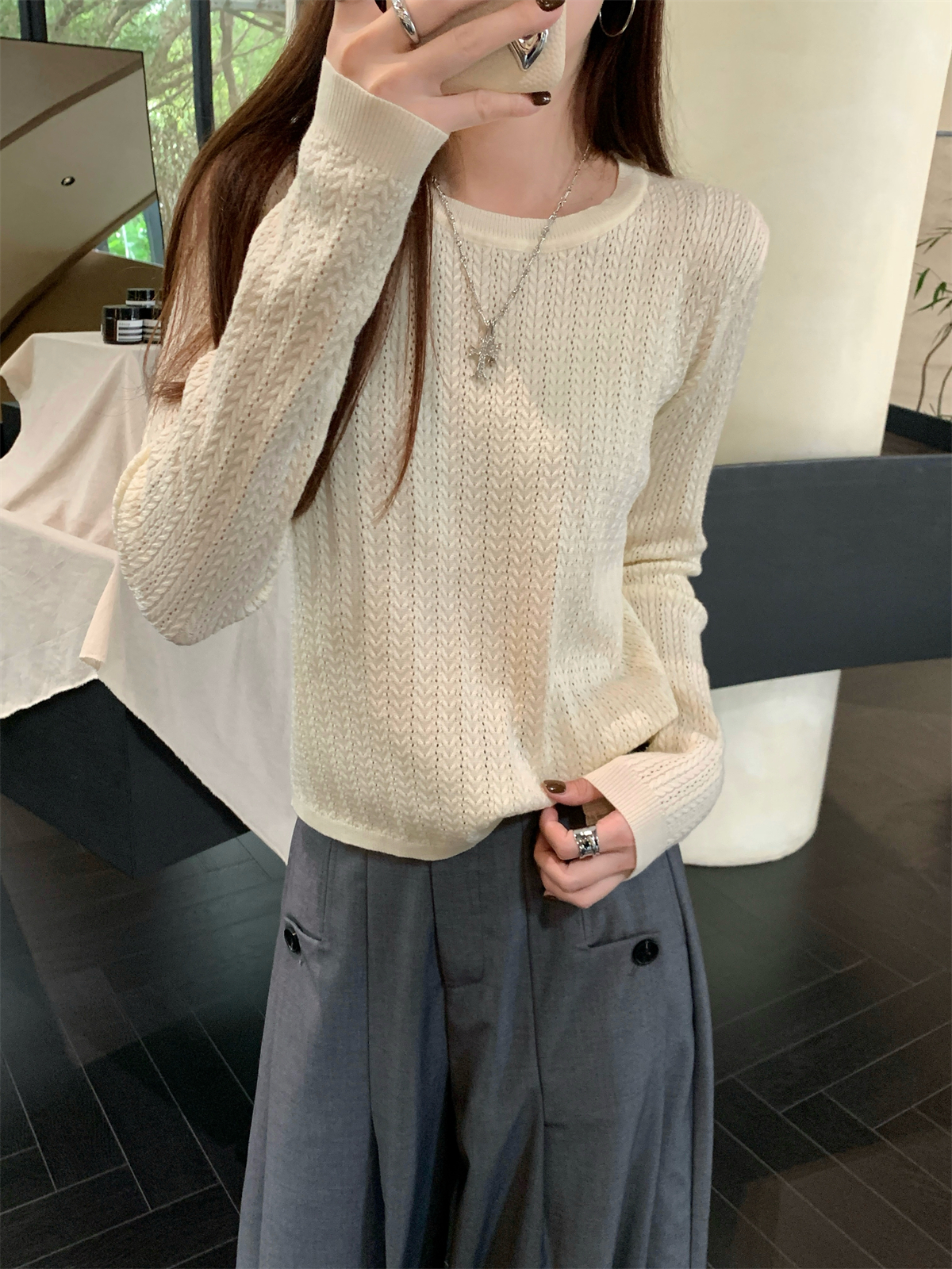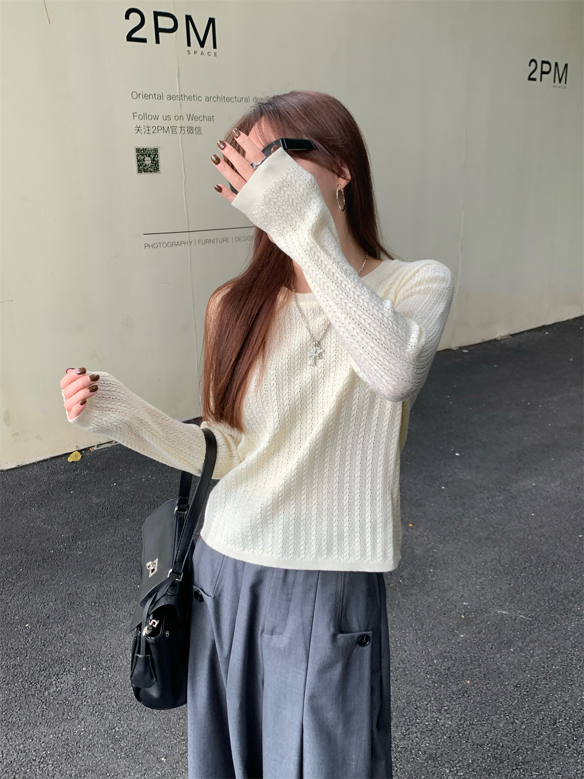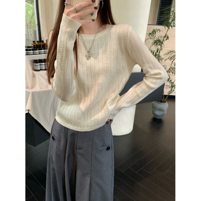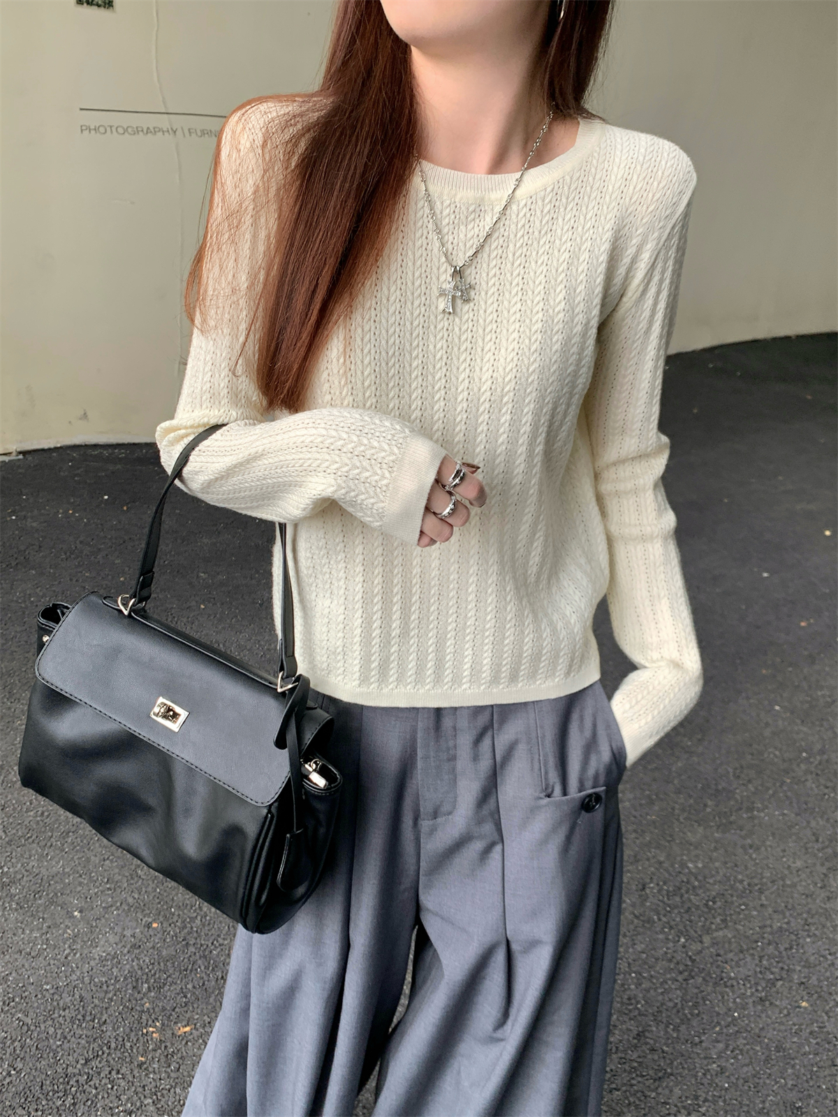 2024新款入秋韓系圓領打底衫女內搭毛衣高級感秋冬長袖針織衫上衣