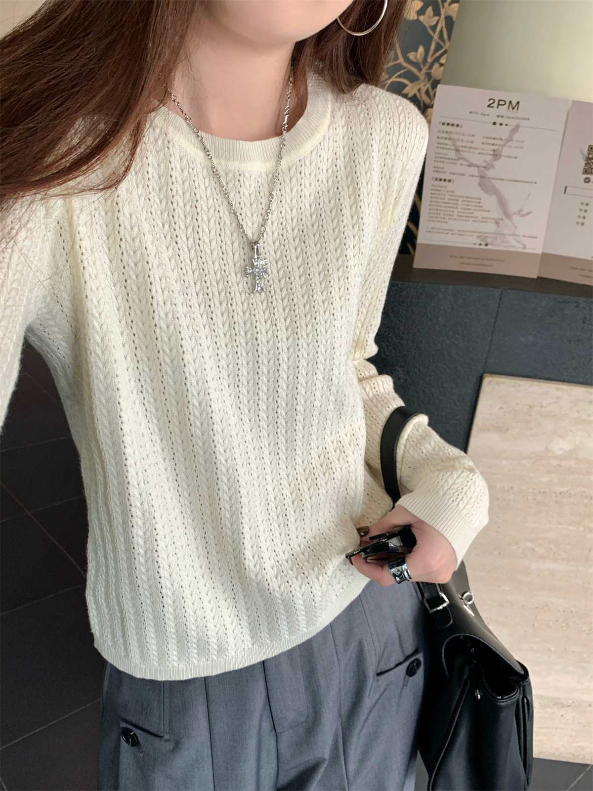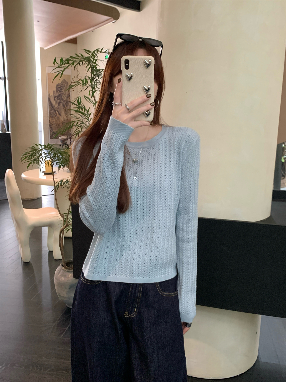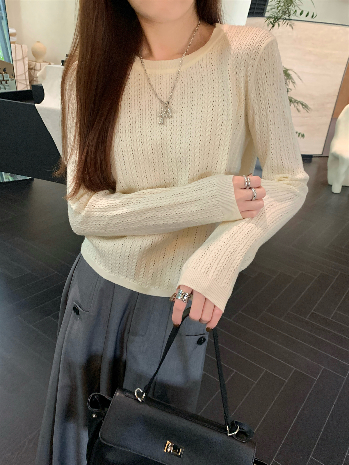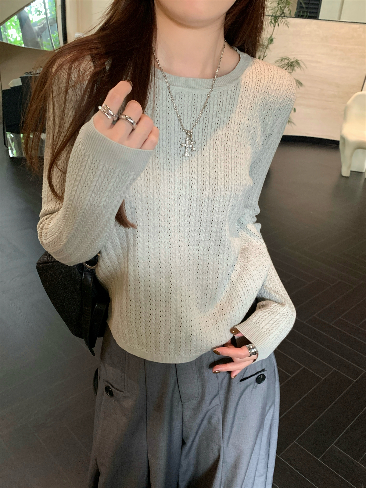 2024新款入秋韓系圓領打底衫女內搭毛衣高級感秋冬長袖針織衫上衣